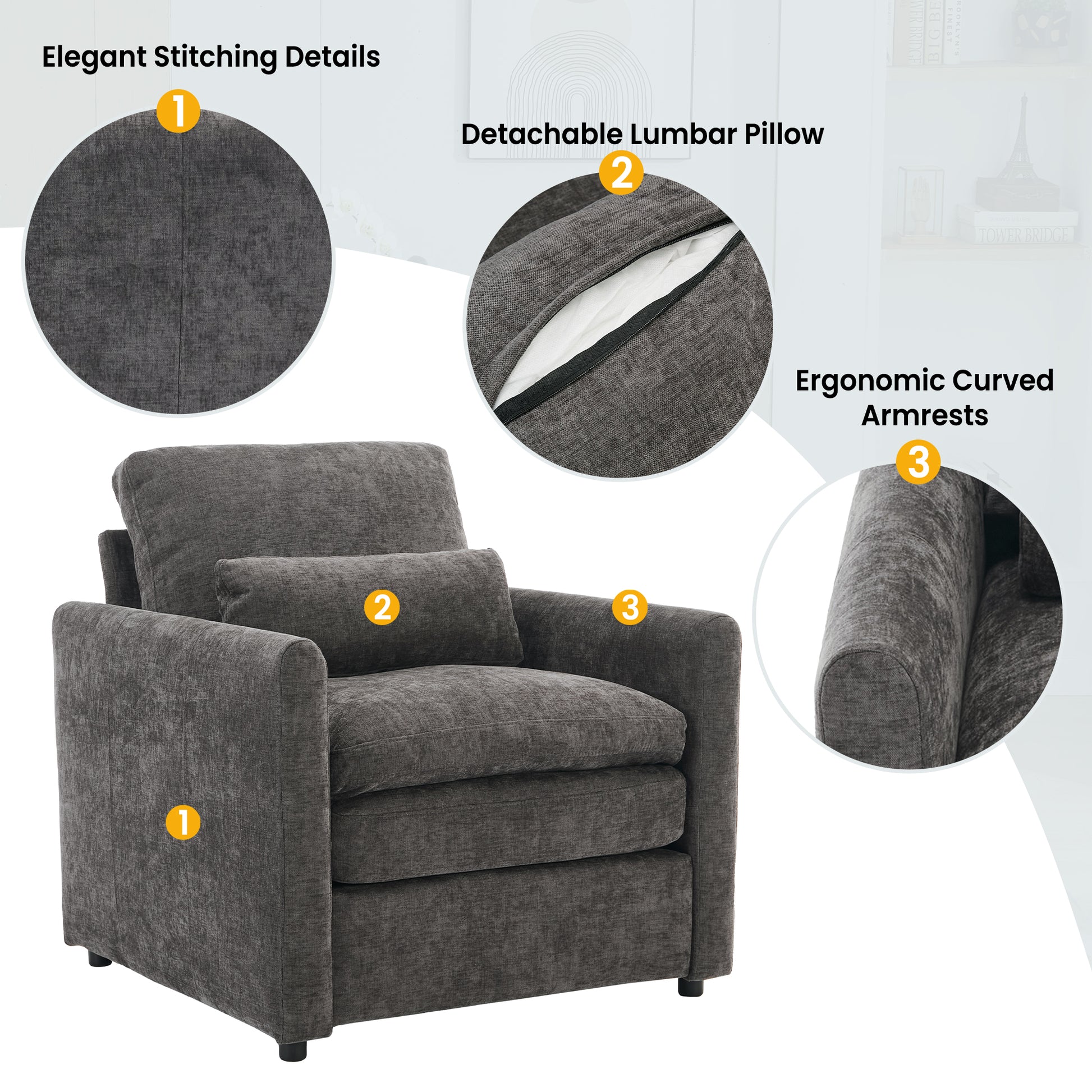 31.9 inch Cozy Upholstered Armchair Oversized Comfy Cloud Sofa Double Cushion Single Sofa Plush Cushion Armchair for Living Room Grey