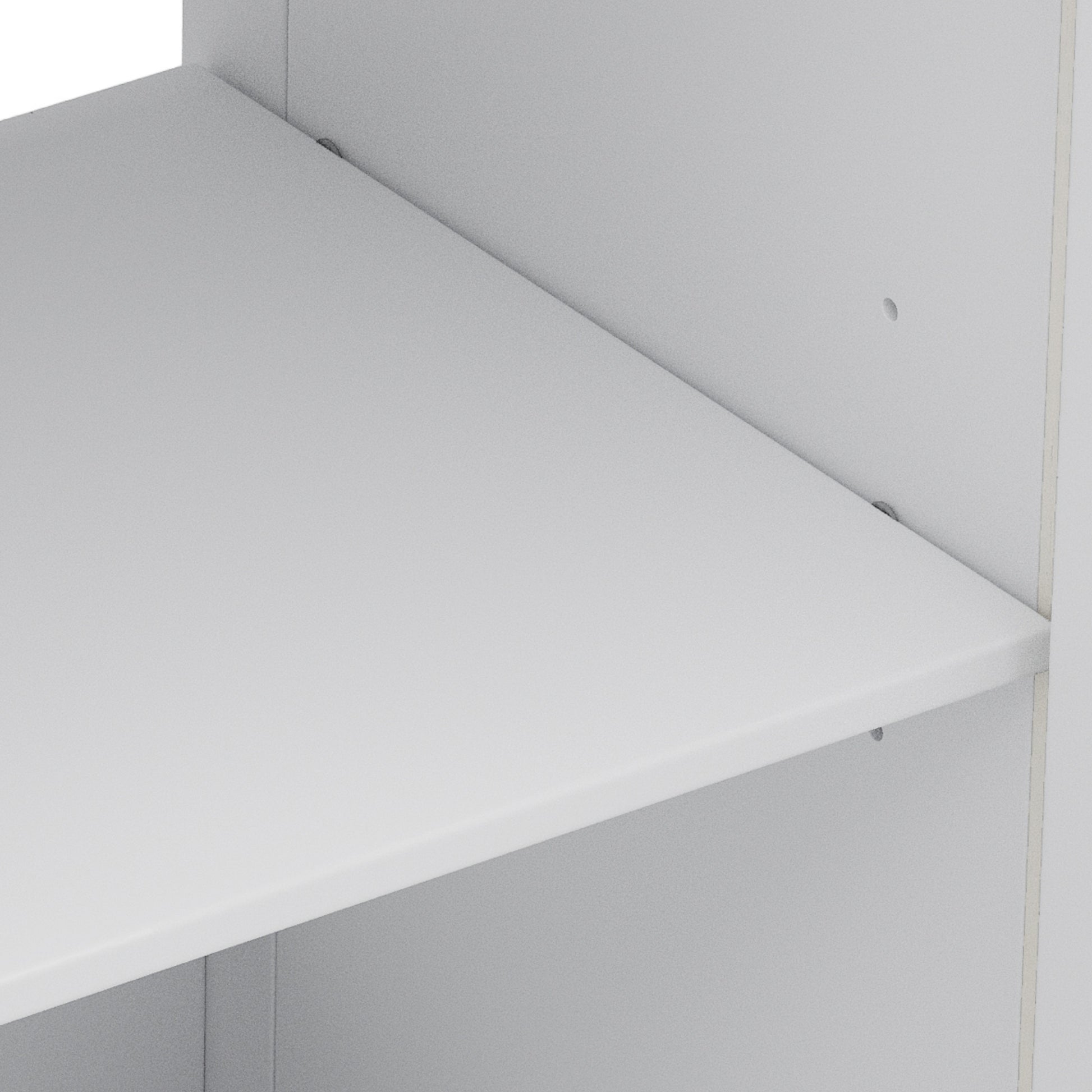 Soft close doors open to adjustable shelves offering flexible storage for towels and toiletries