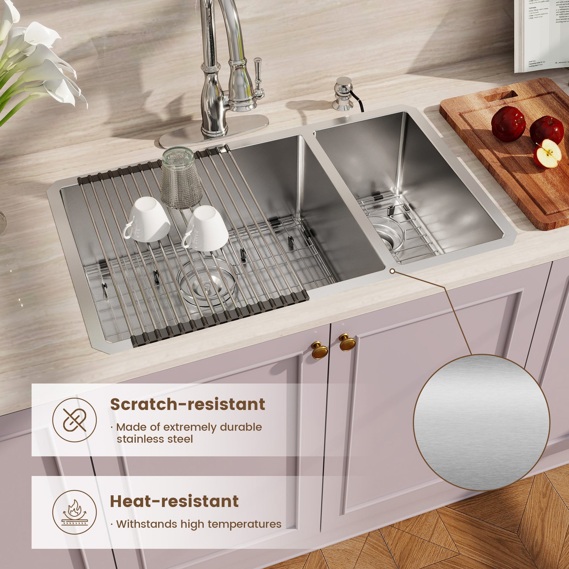 - Seamless installation: the undermount installation realizes the seamless connection from the kitchen counter to the sink, which can easily sweep the countertop waste such as water and food residue into the sink and keep the kitchen counter clean