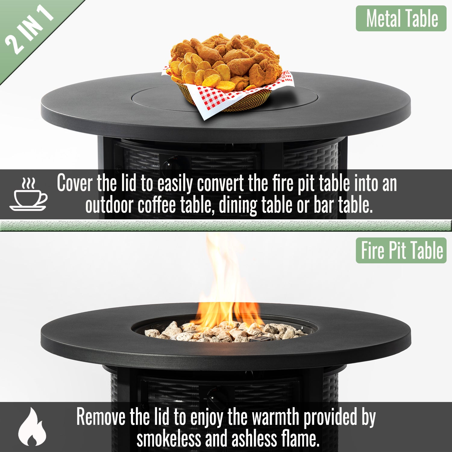 This 32" propane fire pit table delivers 50,000 BTU of warmth for your patio. Its durable steel design includes a hidden tank storage and easy push-button ignition. Effortless to assemble and use, it quickly transforms from a cozy fire pit to a stylish table, creating the perfect ambiance for any outdoor gathering.