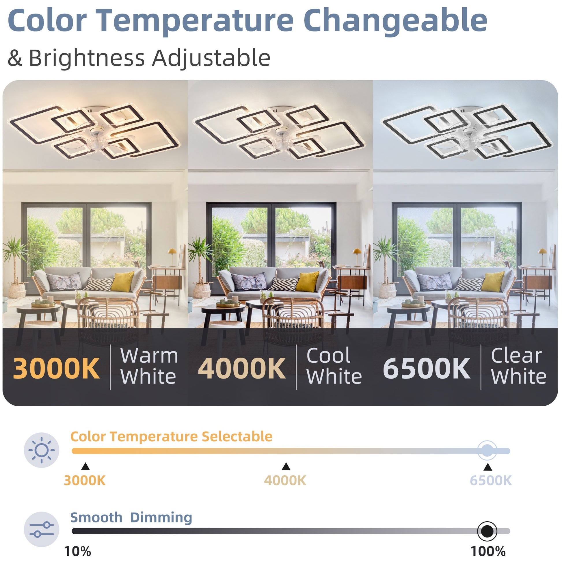 Perfect for living room bedroom dining room kitchen hallway office this 33-inch black ceiling fan with lights has remote/APP control 6 speeds dimmable 3-color light quiet reversible DC motor fitting 10-18㎡ spaces