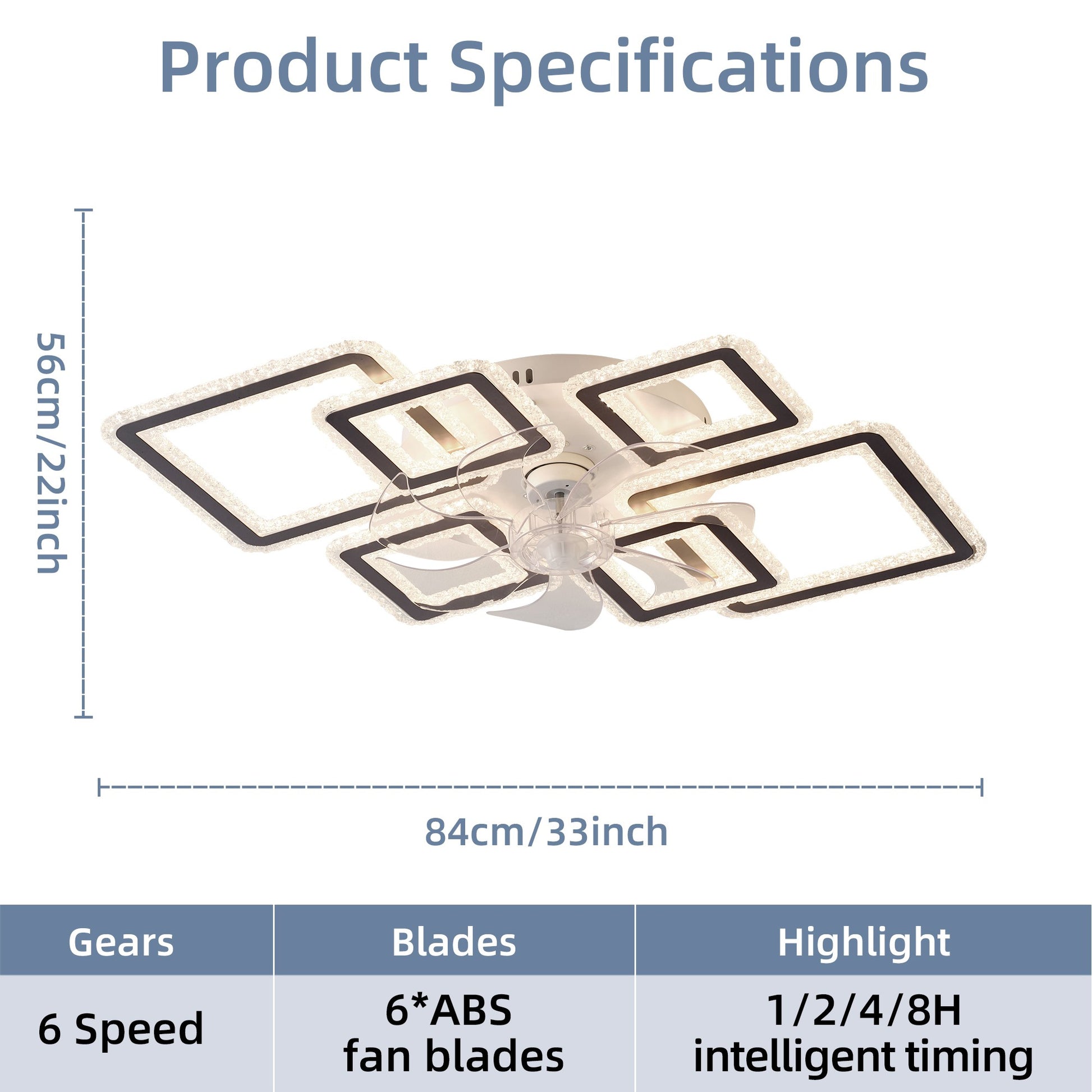 33 Inch Black Ceiling Fan with Lights Remote Control and APP Control Dimmable 7 Blades 6 Speeds of Wind