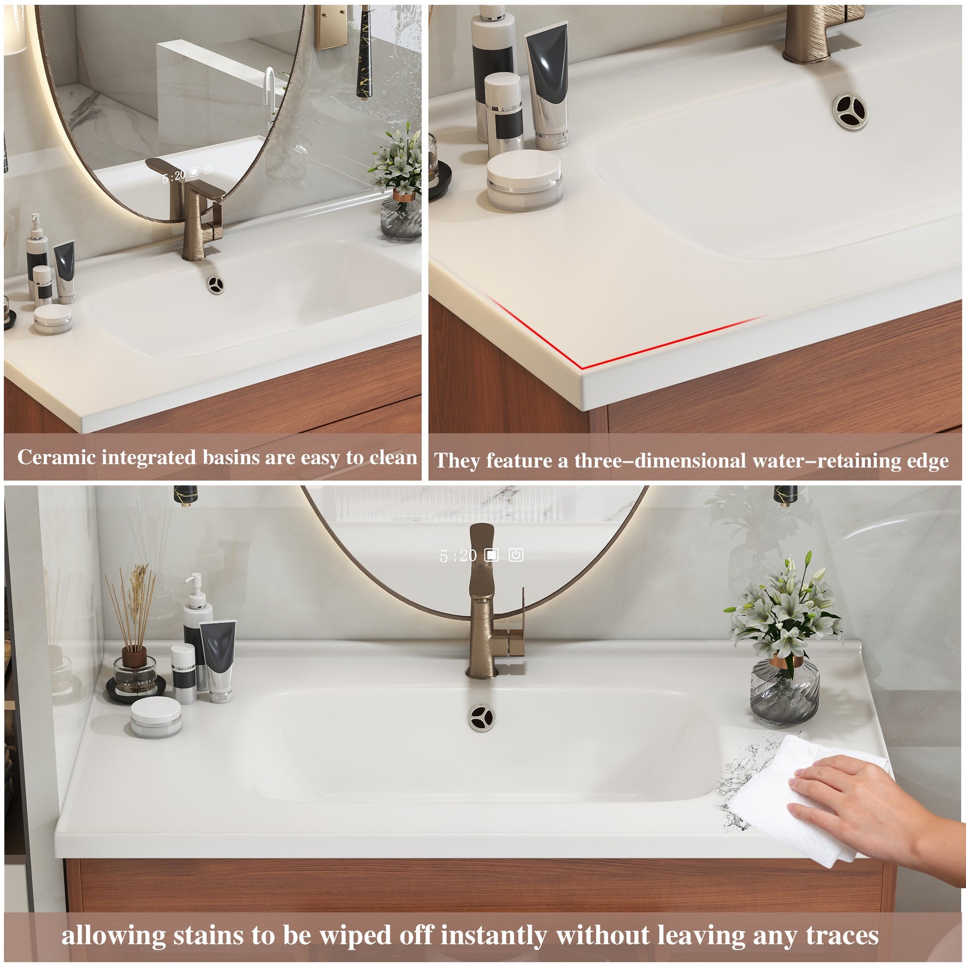 35.4 Inch Mid-century Modern Single Bathroom Vanity with Integrated Ceramic Undermount Sink