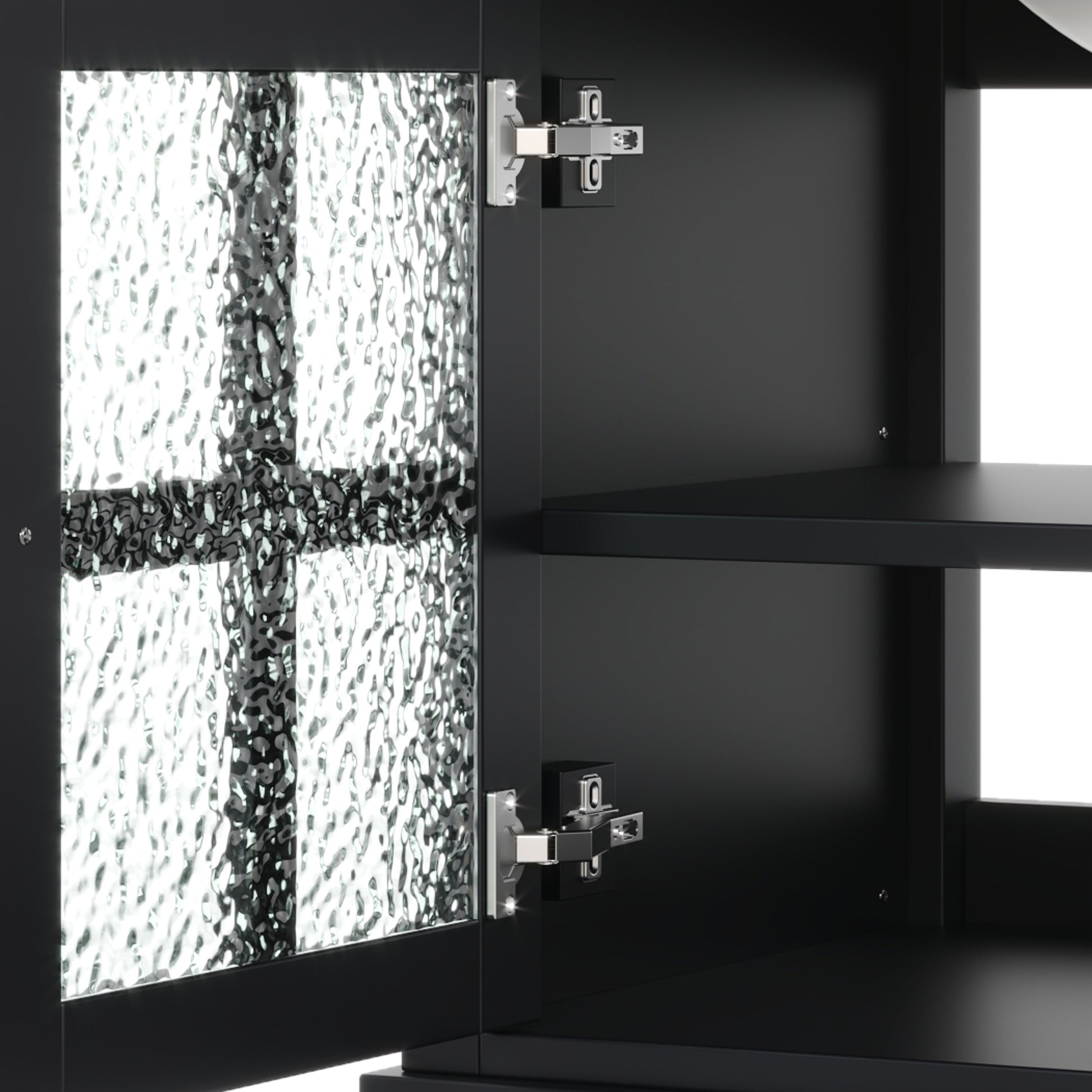 Textured glass doors balance openness and privacy with pre-drilled faucet hole for easy installation