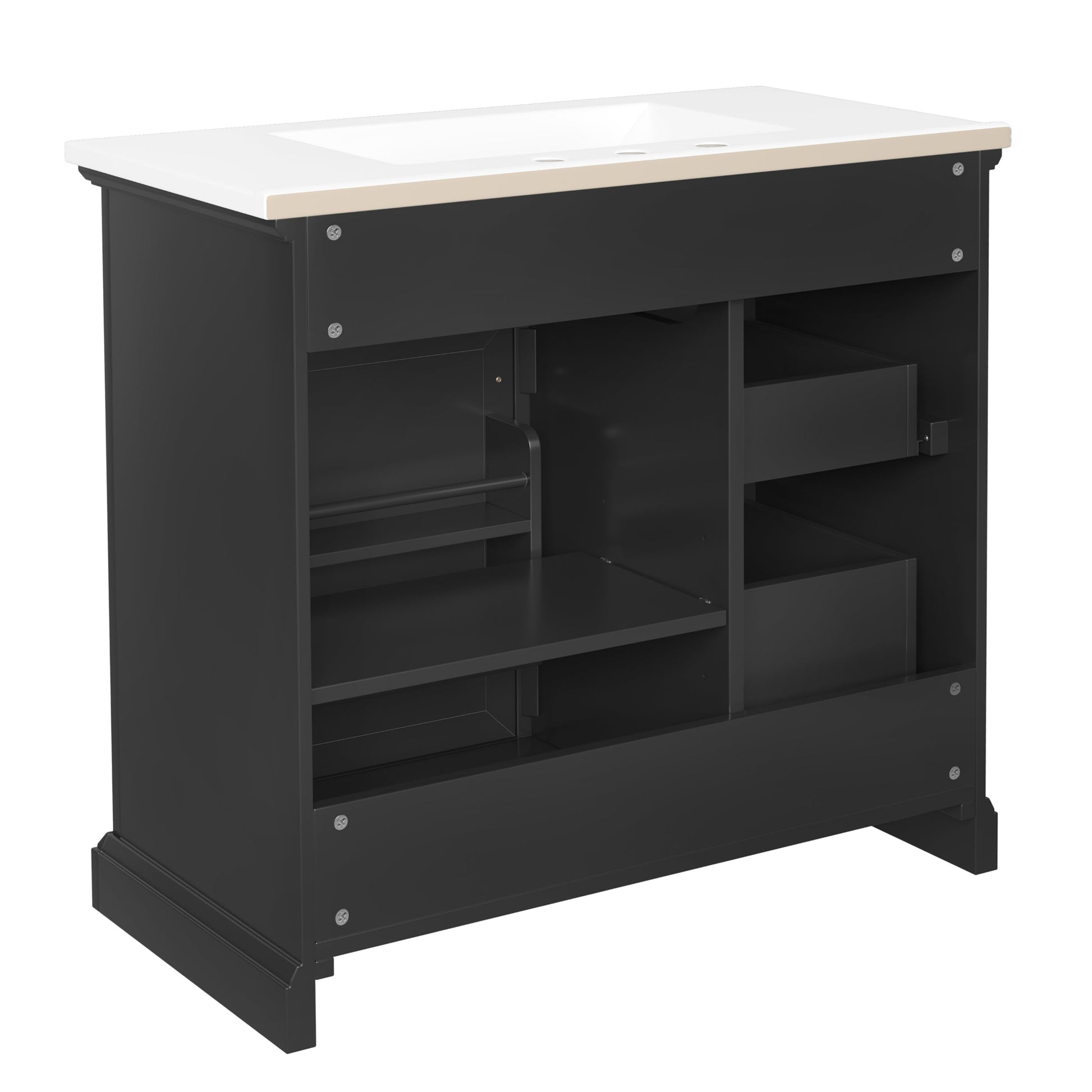 36 Inch Bathroom Vanity with Ceramic Sink Top Four Drawers and One Soft Close Door Freestanding Cabinet Black Finish