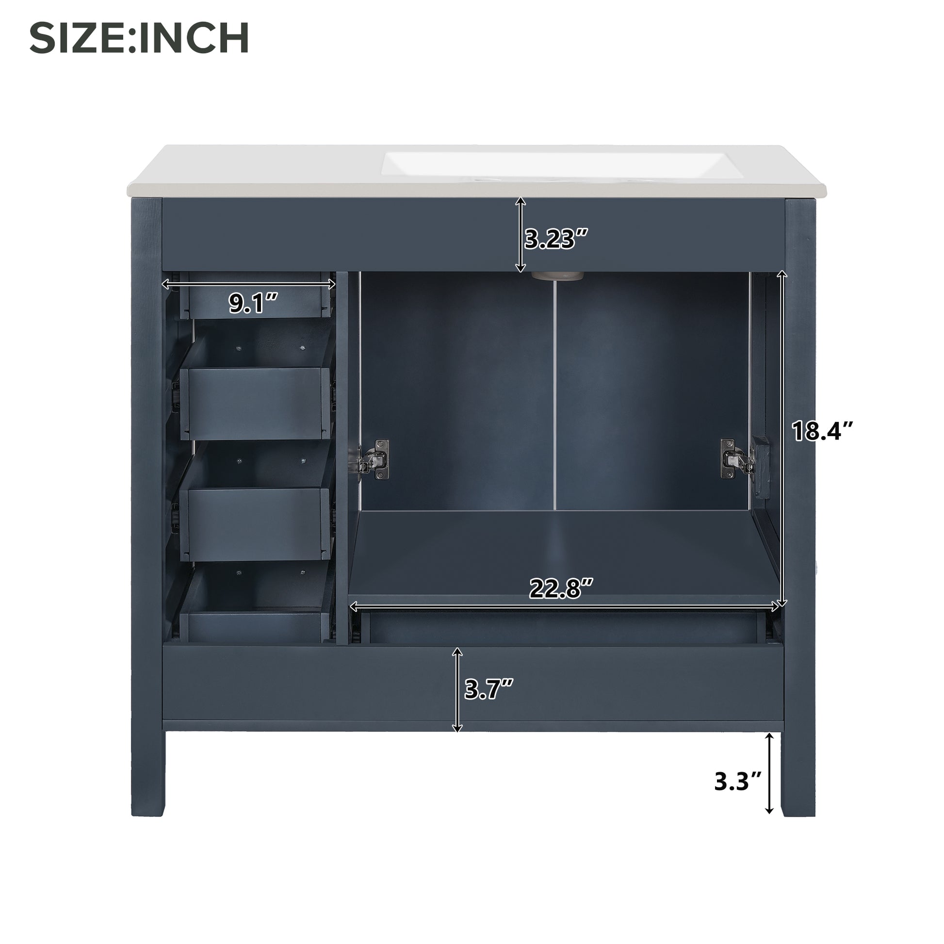 36 Inch Blue Bathroom Vanity with Ceramic Sink, Solid Wood + MDF, 2 Soft Close Doors, 5 Drawers, Modern Storage Cabinet