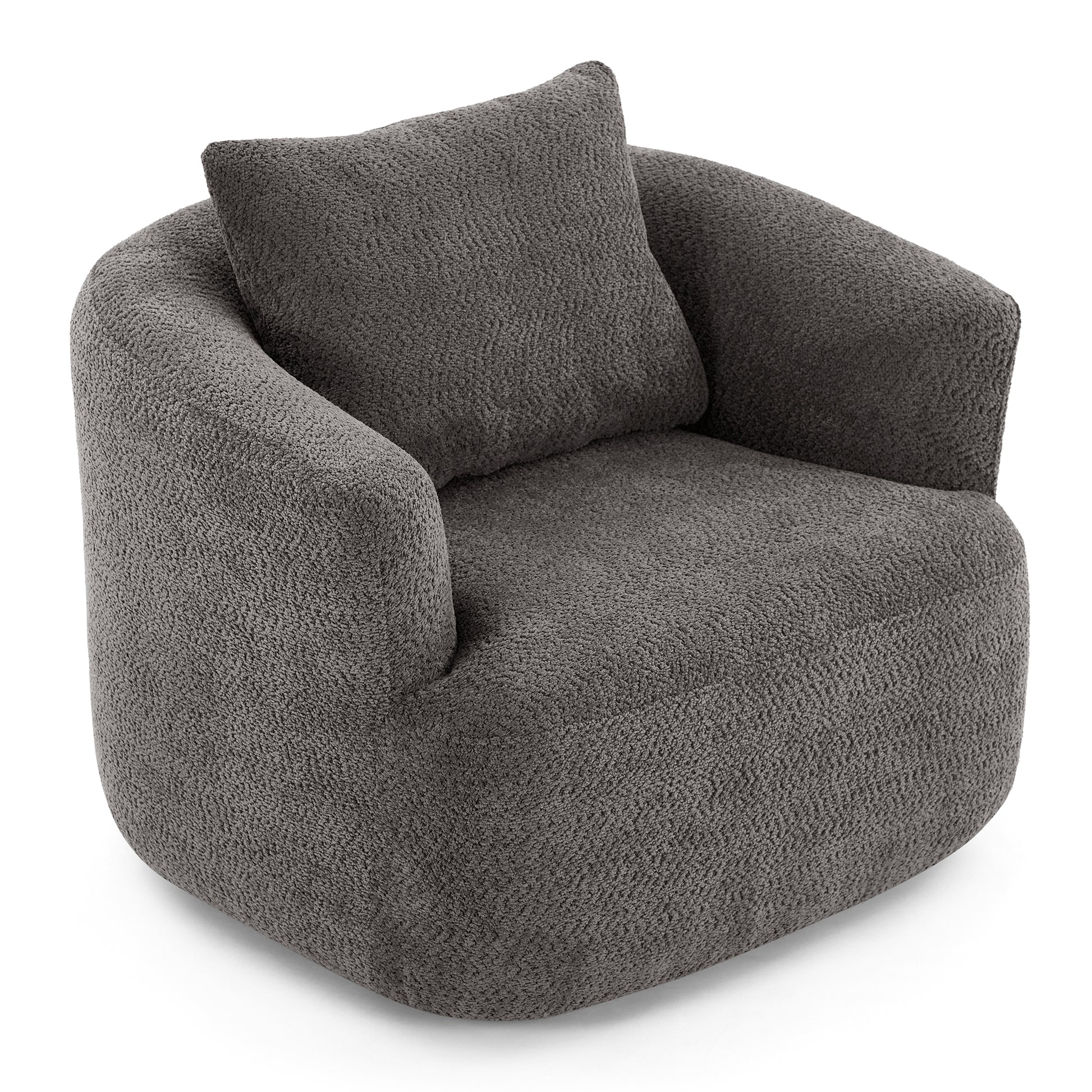 360 Degrees Swivel Chair 38.2 inch Accent Chair Sofa Upholstered Swivel Barrel Sofa Chair with a Throw Pillow for Living Room Bedroom Office and Hotel Grey
