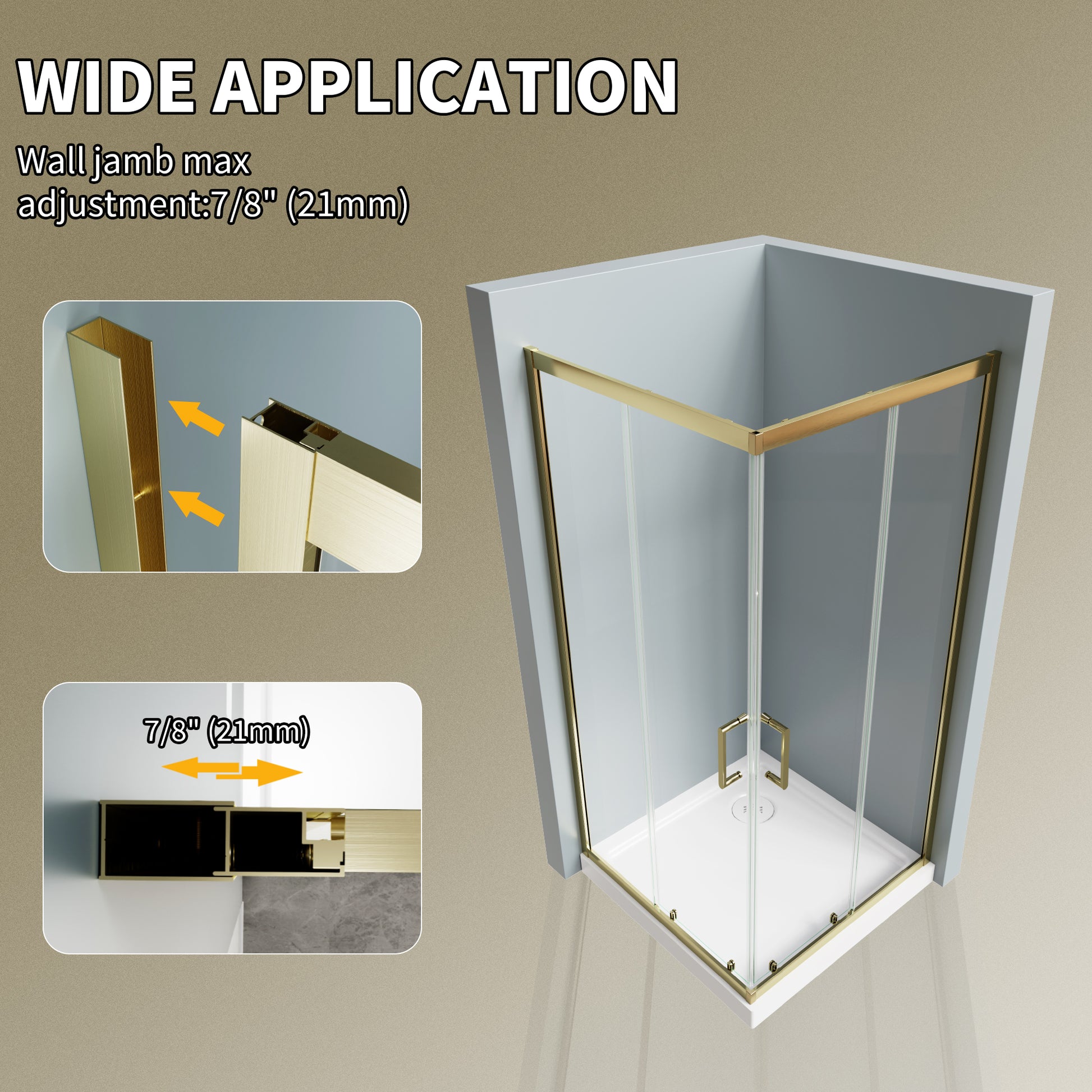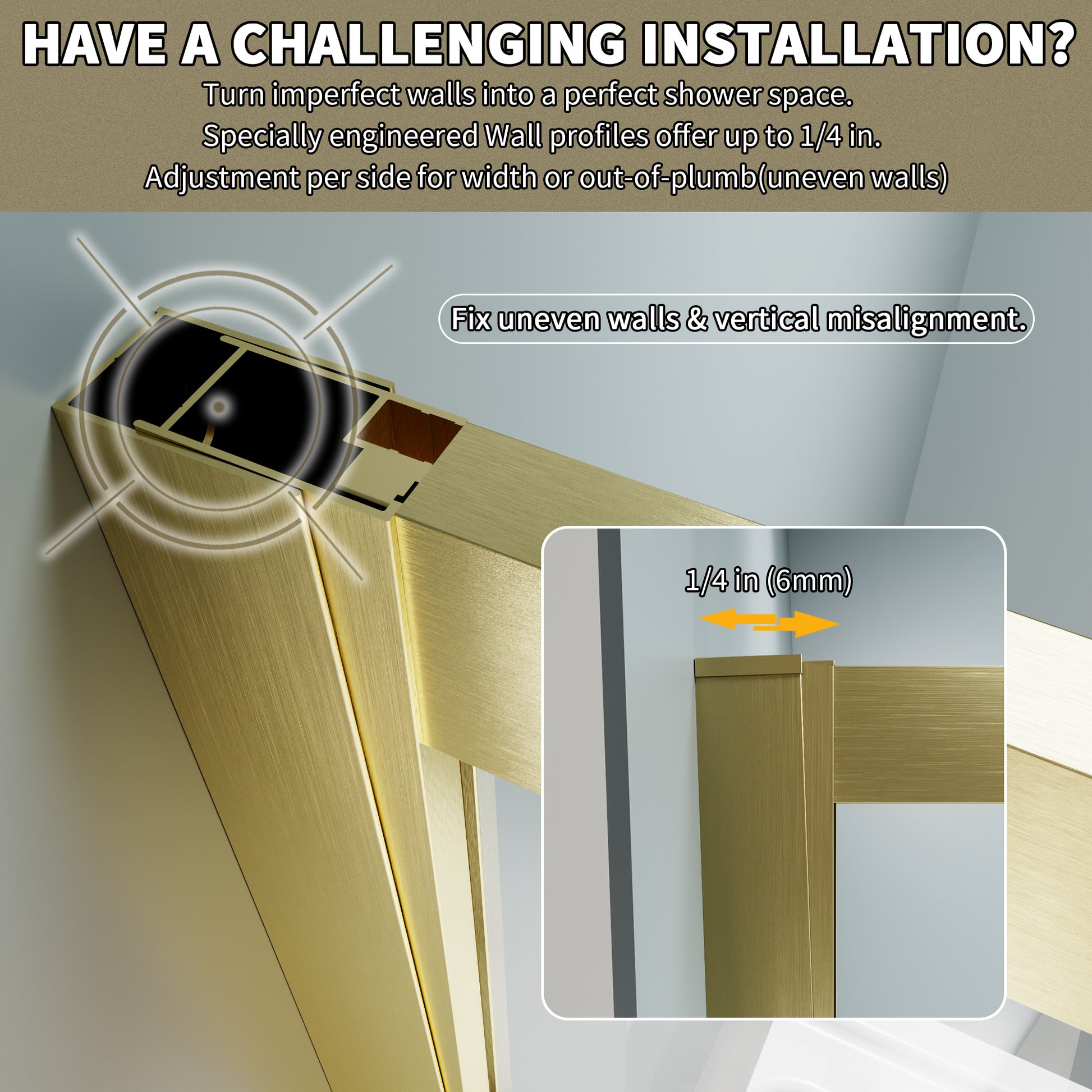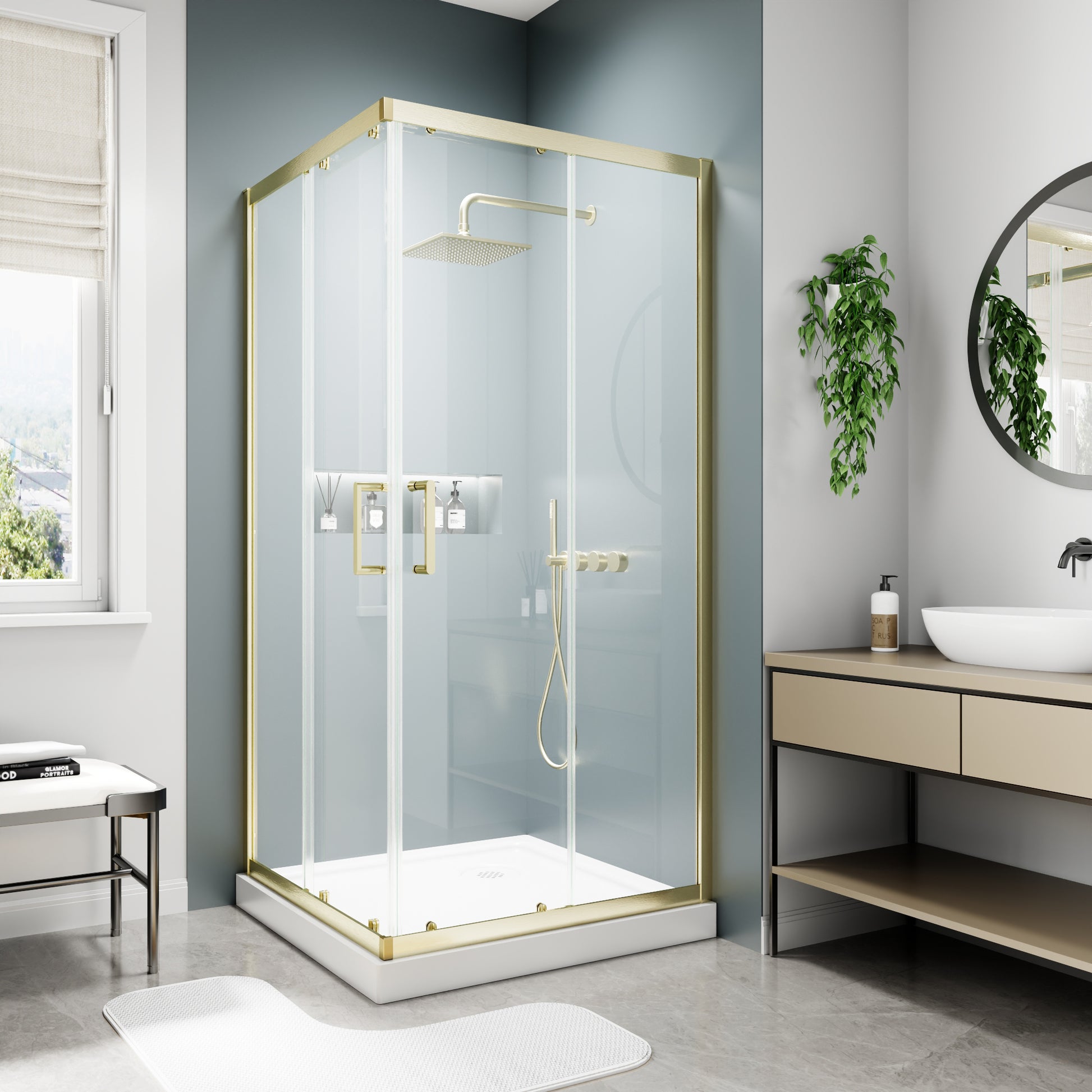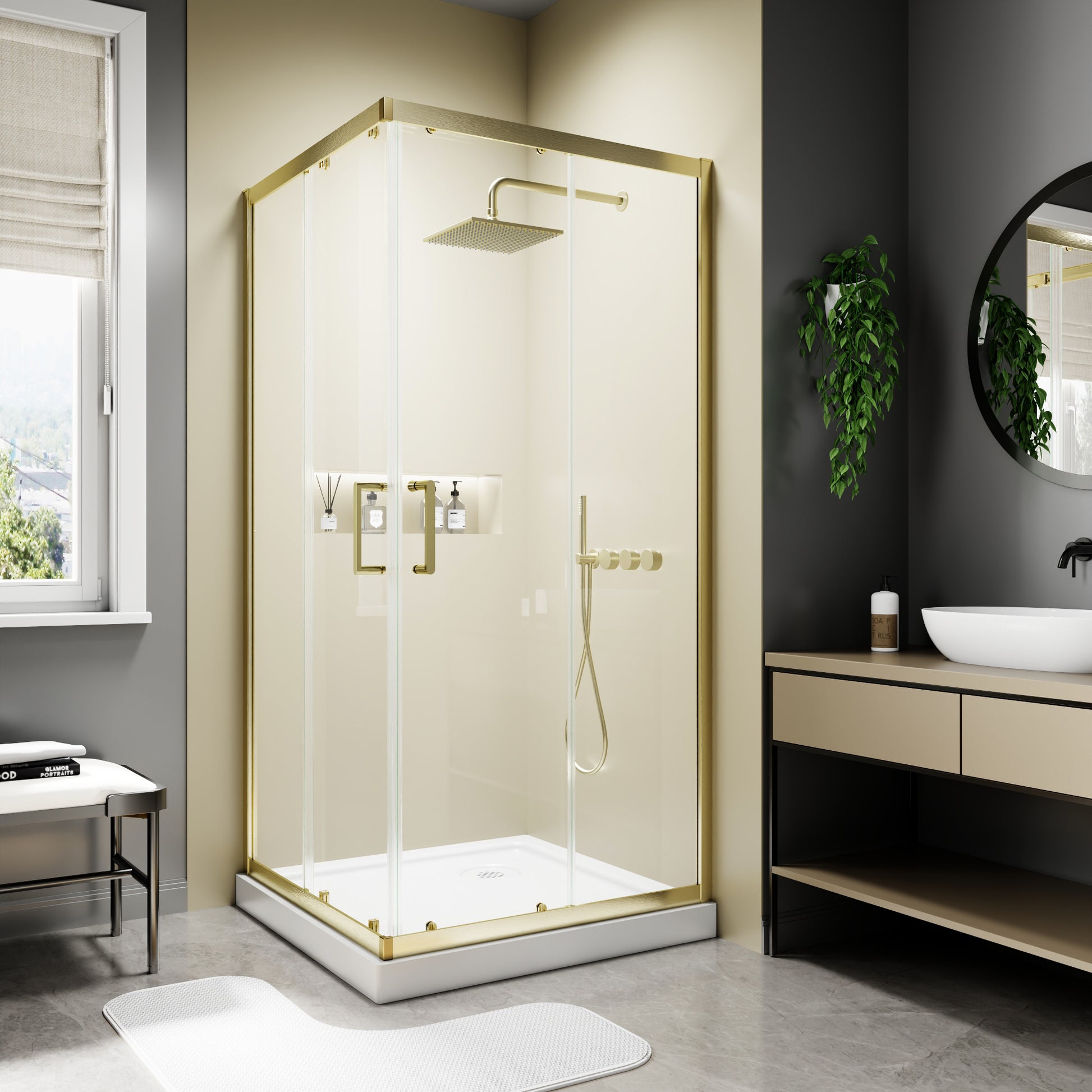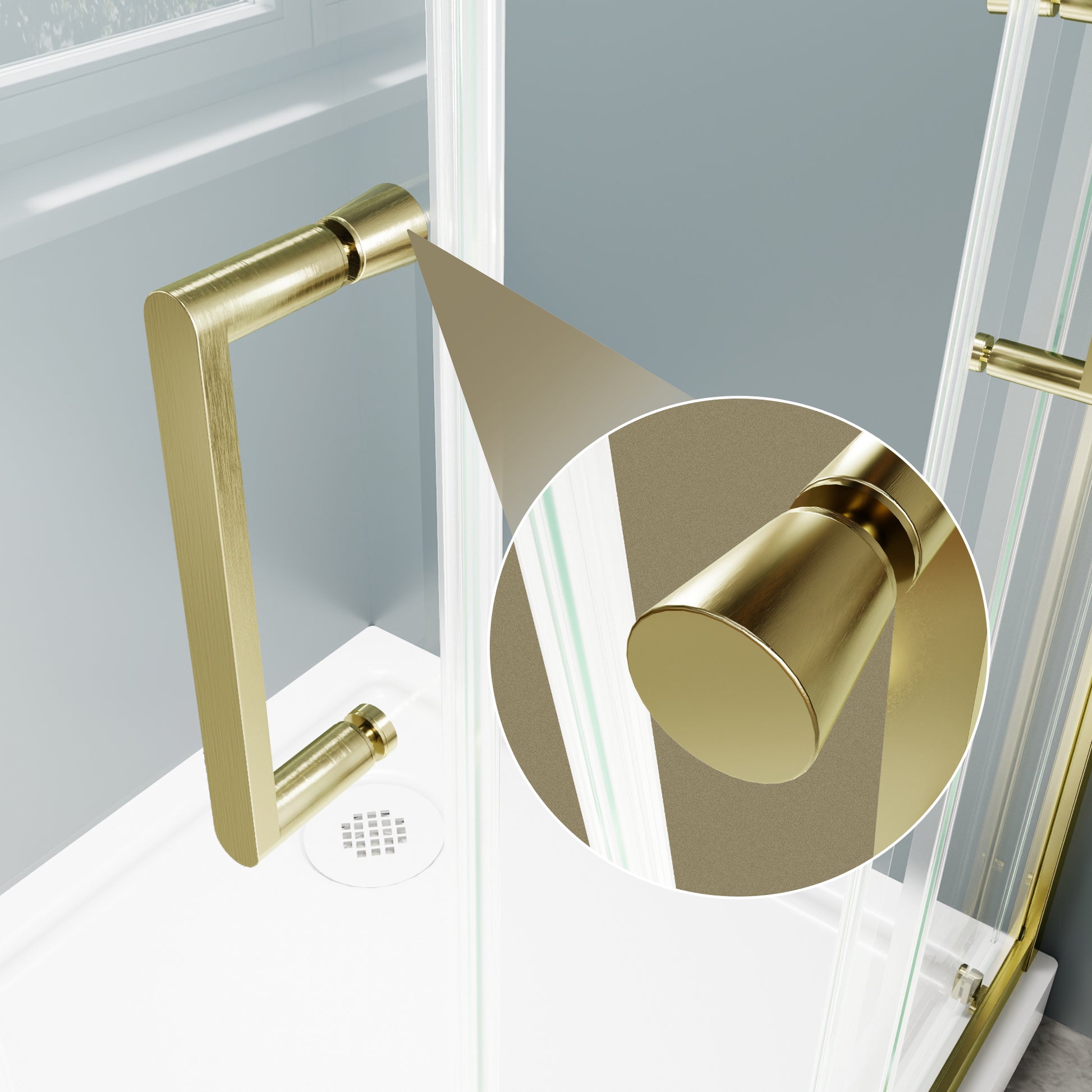 36Wx71H Framed Hinged Shower Door 6mm Clear Tempered Glass 304 Stainless Steel Handle Brushed Gold Easy Clean