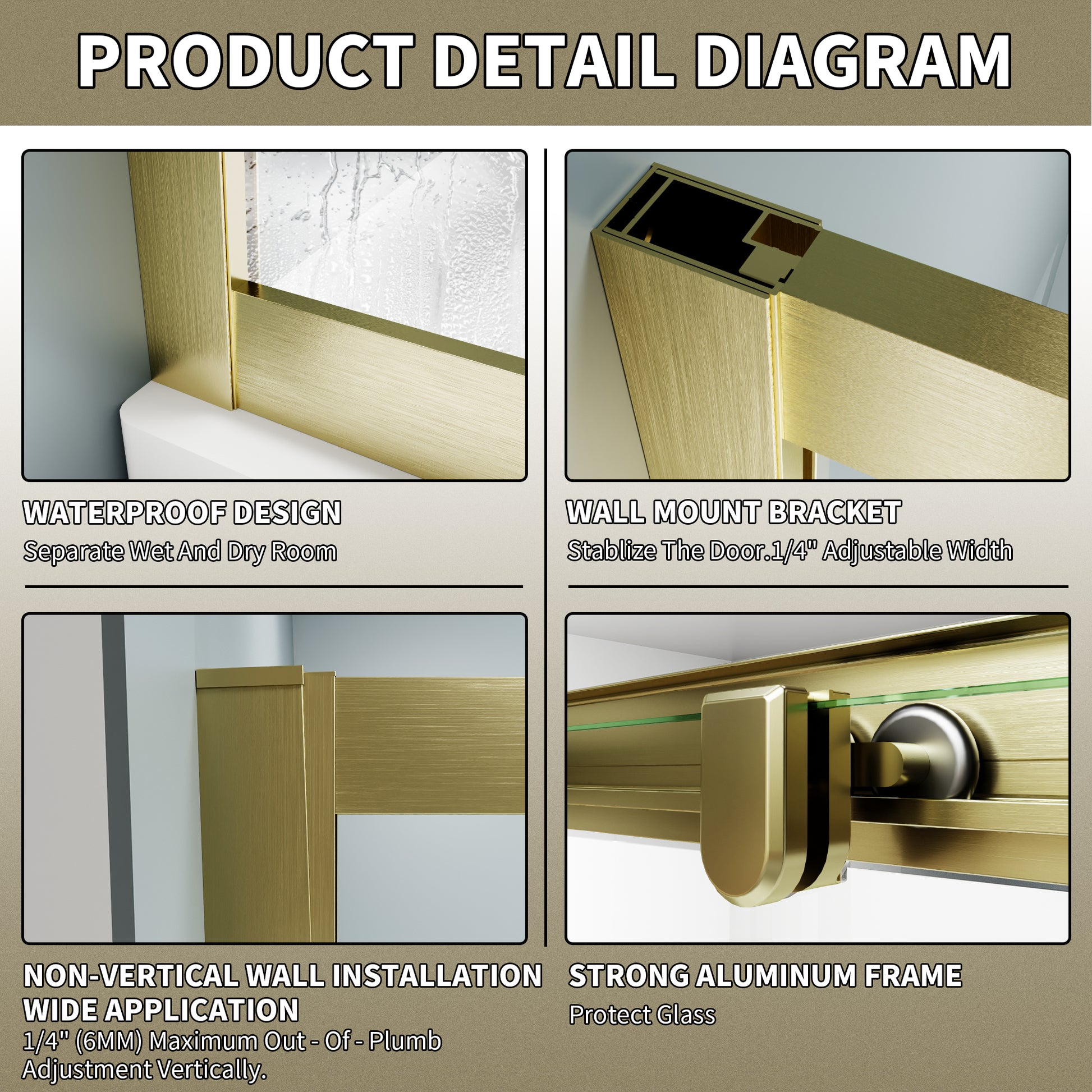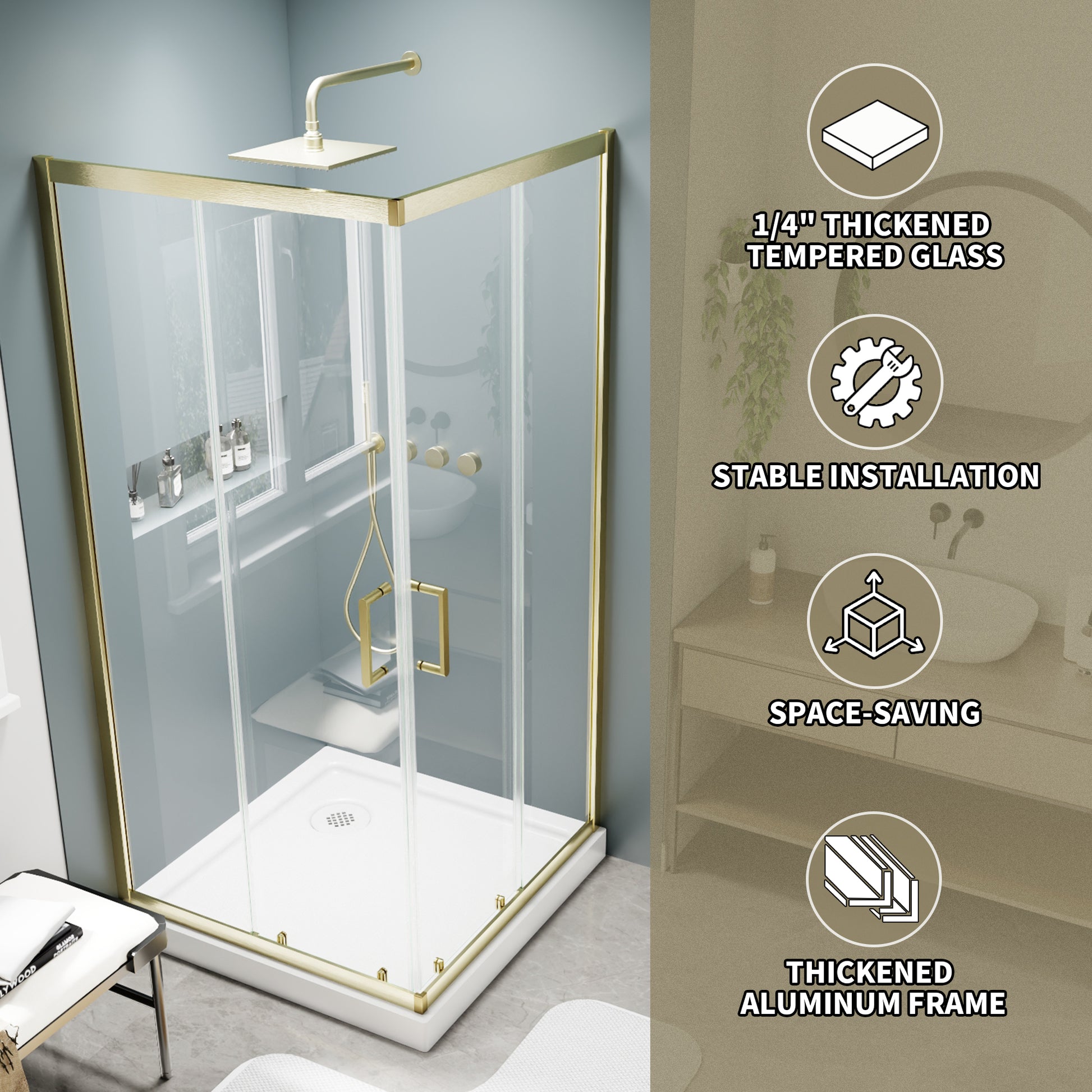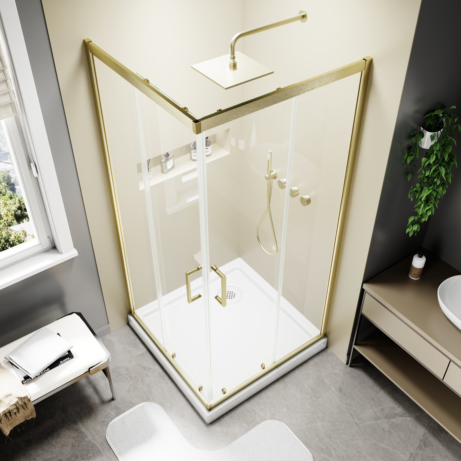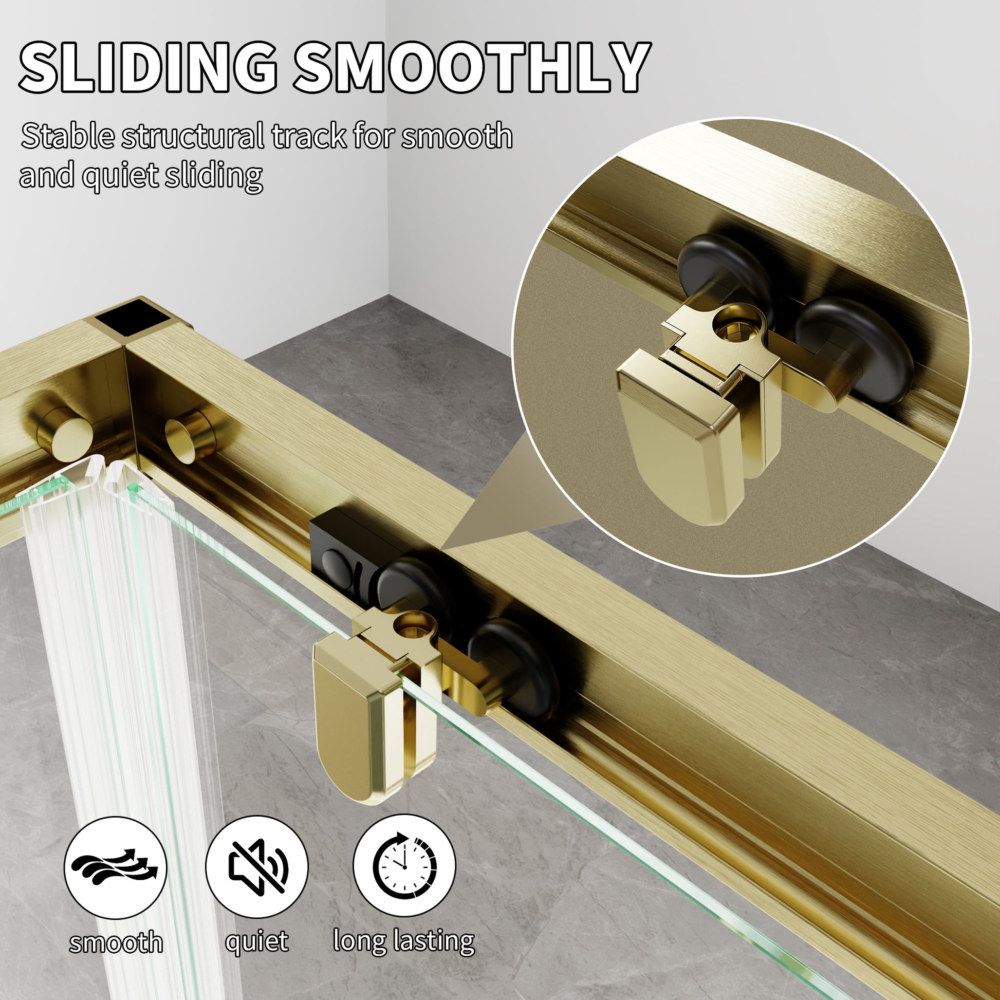36Wx71H Framed Hinged Shower Door 6mm Clear Tempered Glass 304 Stainless Steel Handle Brushed Gold Easy Clean