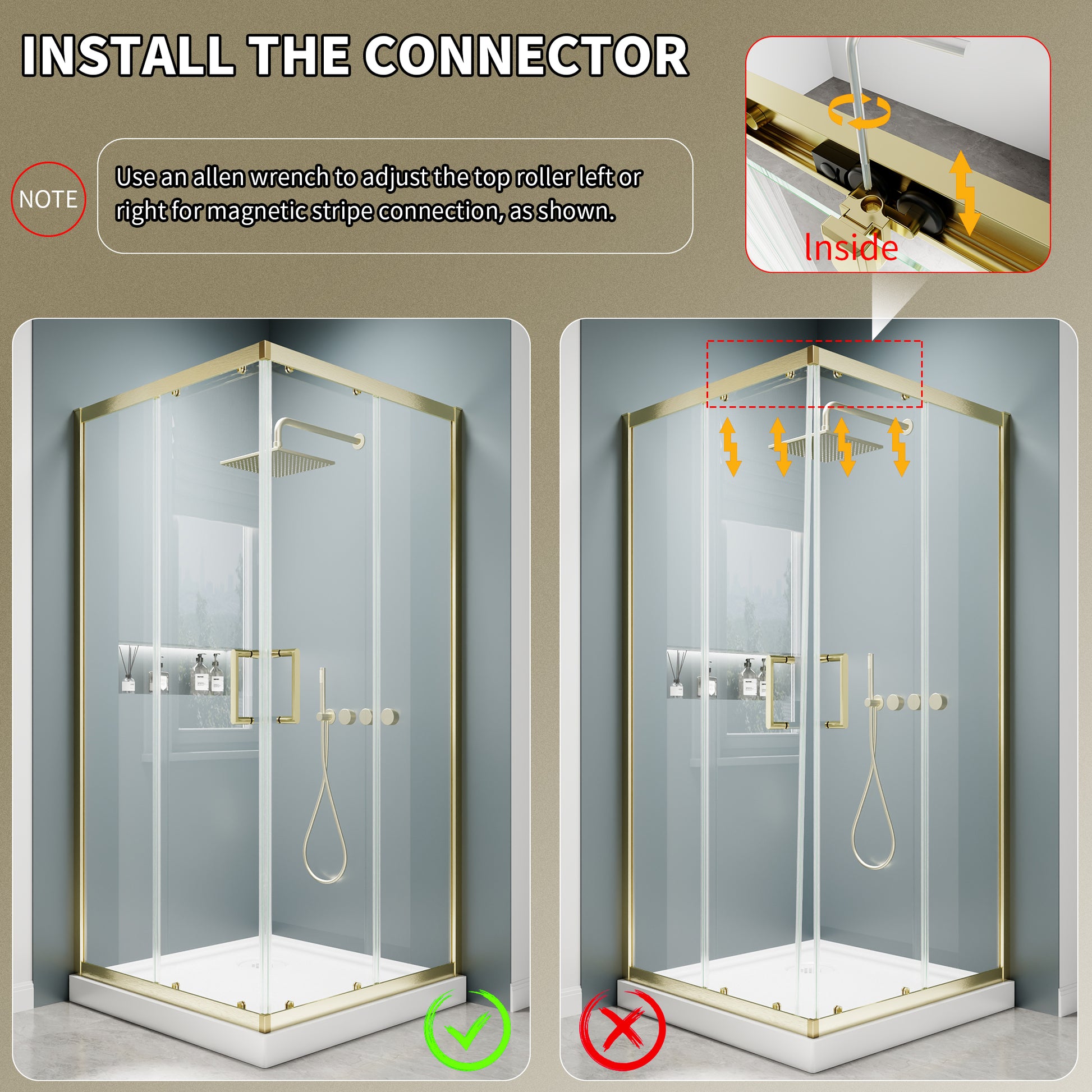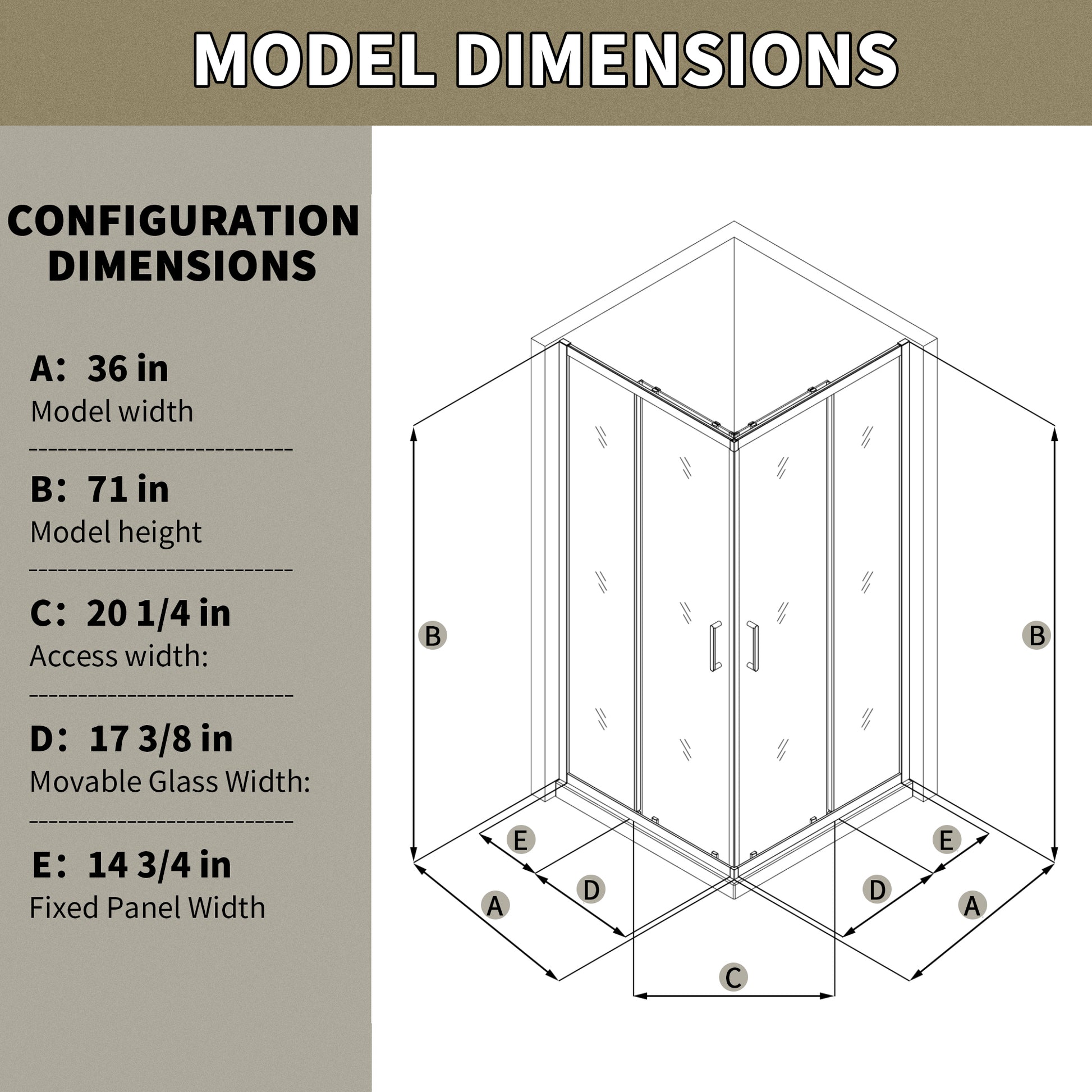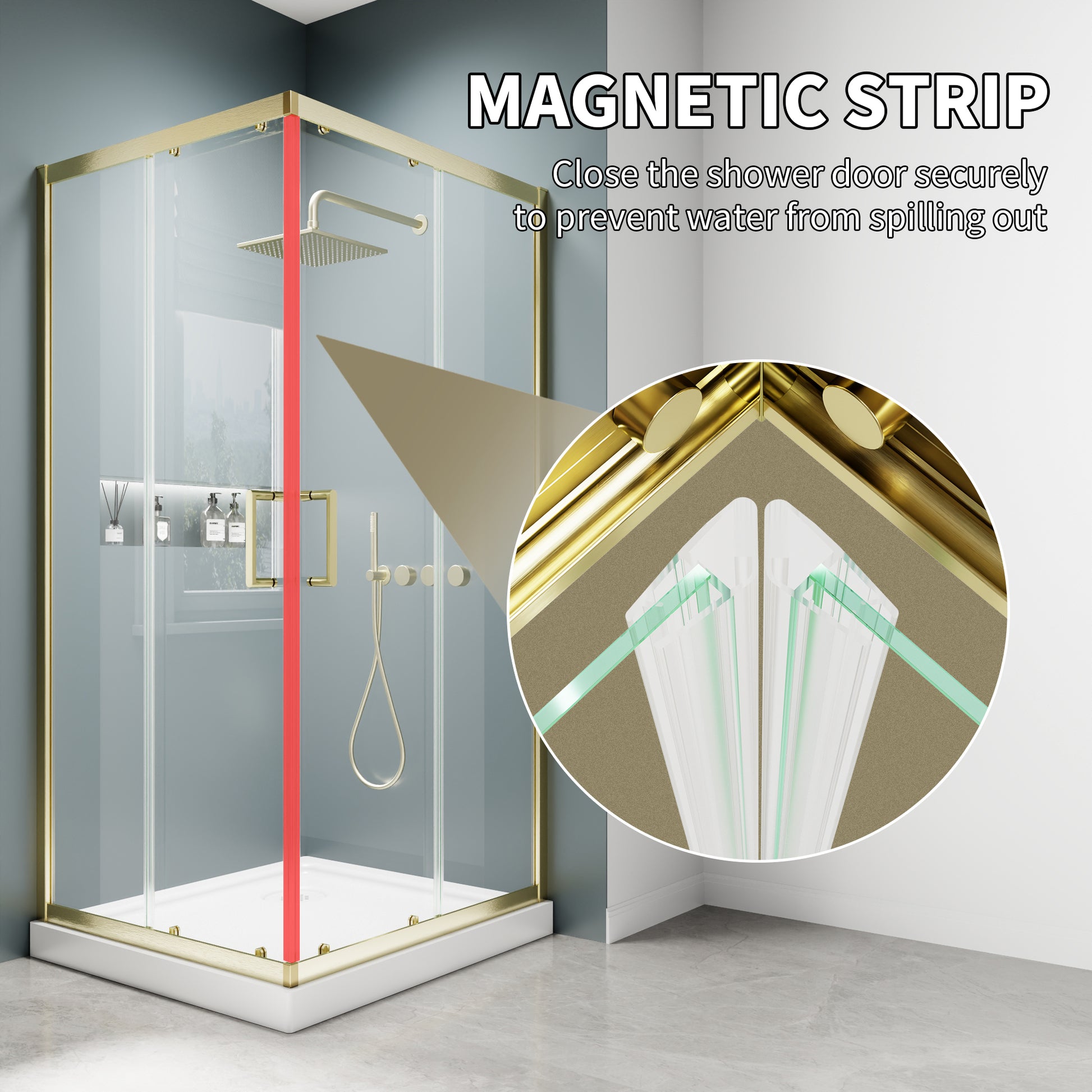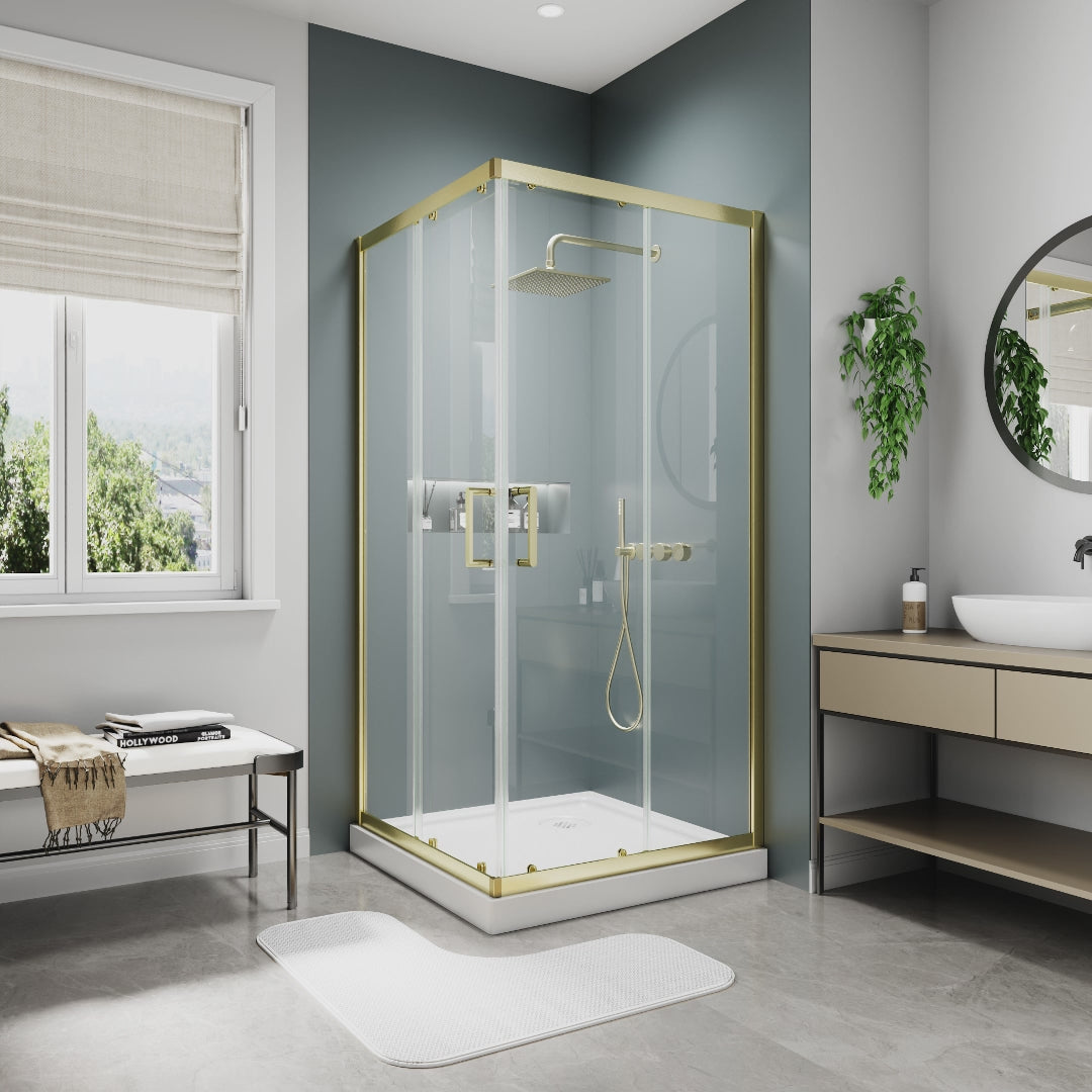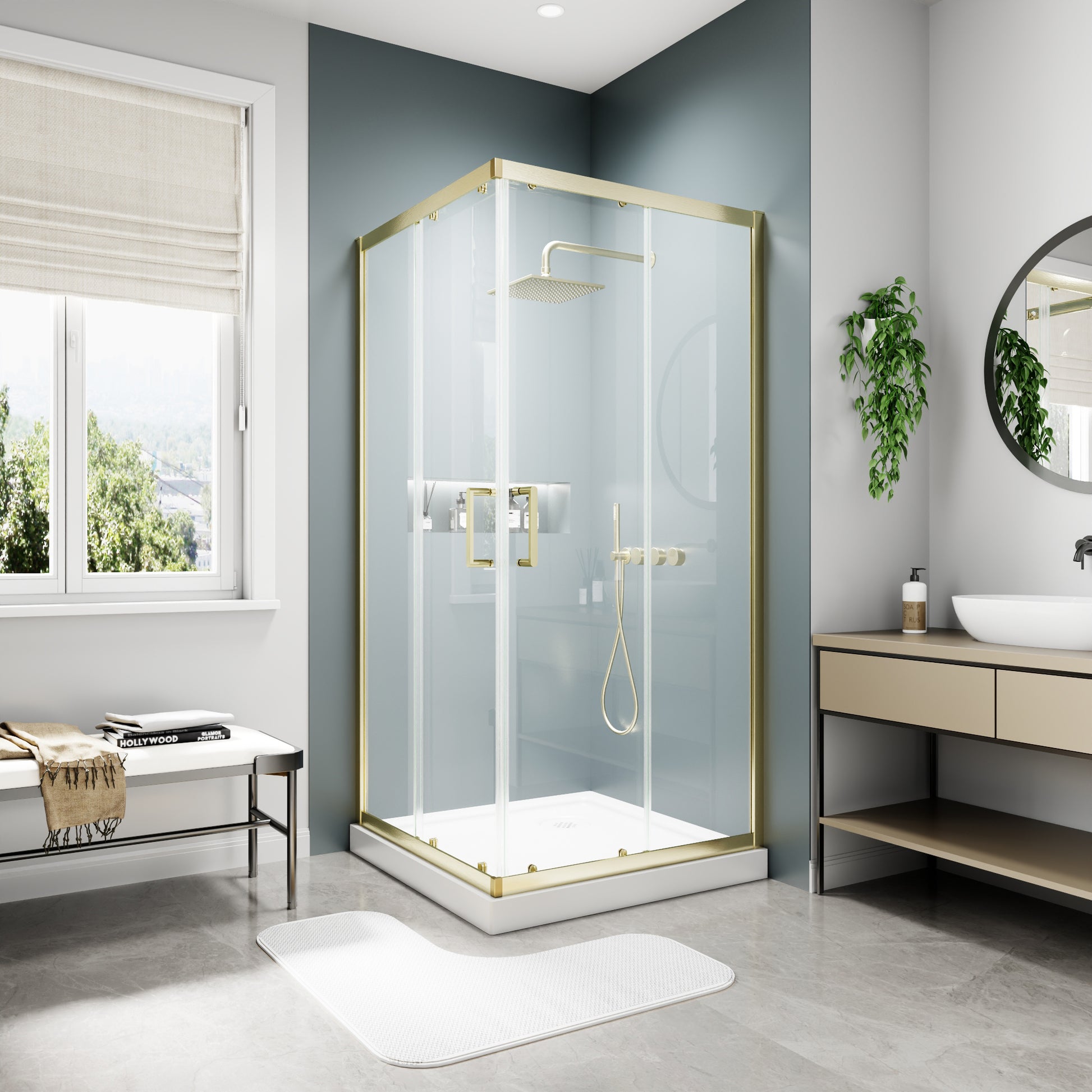 36Wx71H Framed Hinged Shower Door 6mm Clear Tempered Glass 304 Stainless Steel Handle Brushed Gold Easy Clean