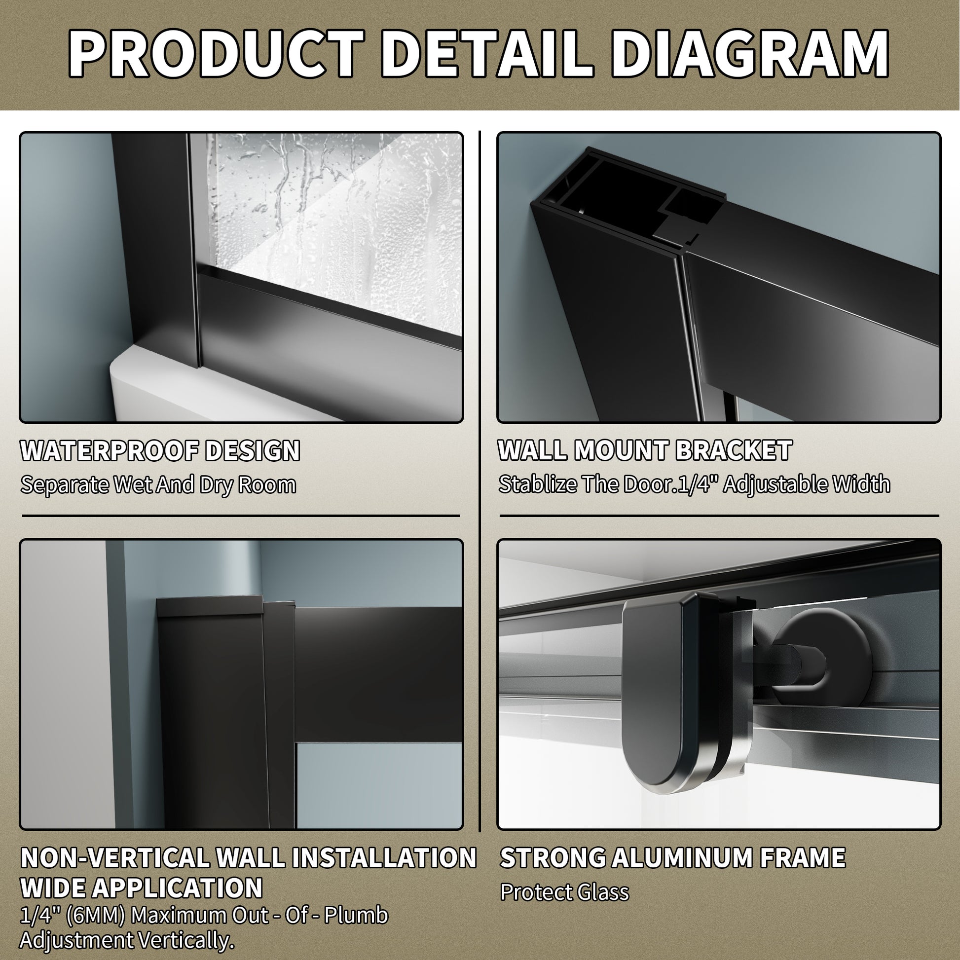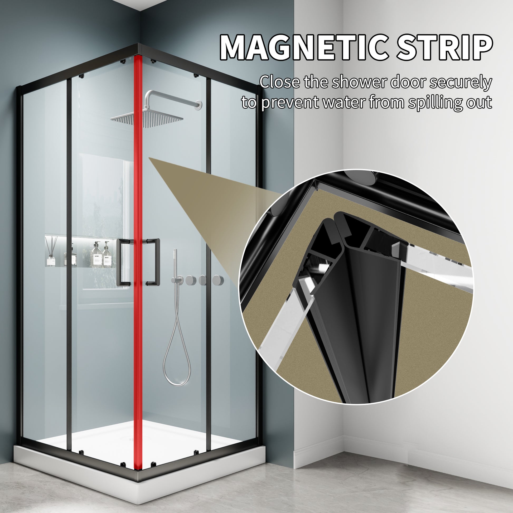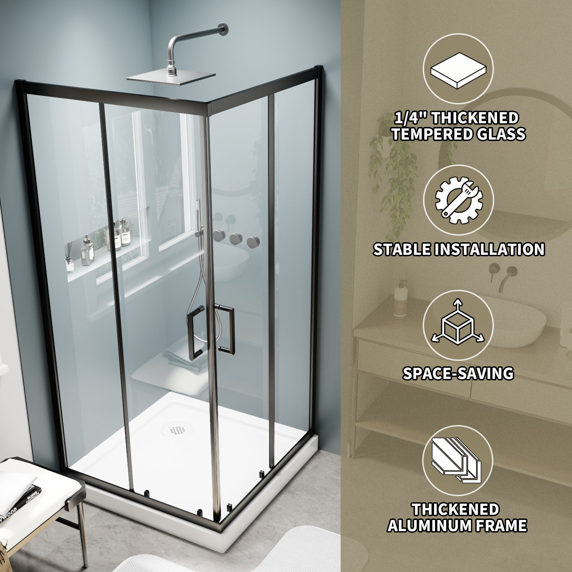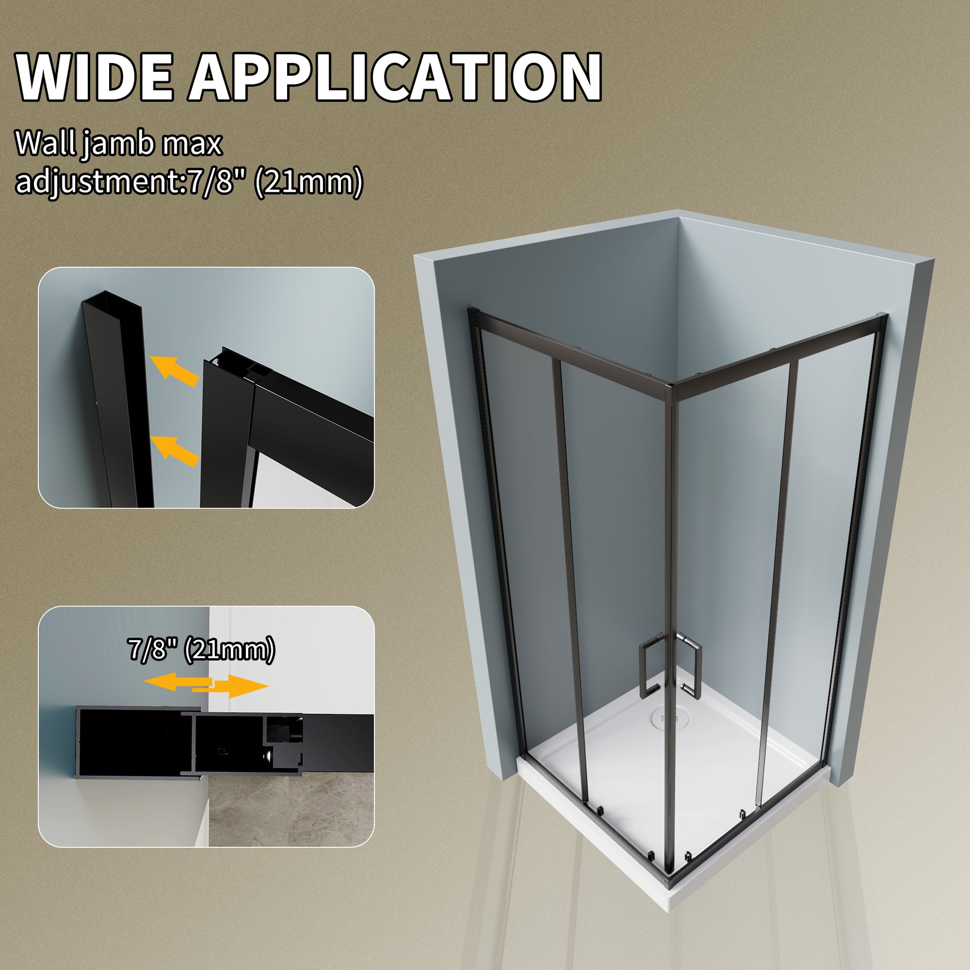 36Wx71H Framed Hinged Shower Door 6mm Clear Tempered Glass 304 Stainless Steel Handle Matte Black Easy Clean
