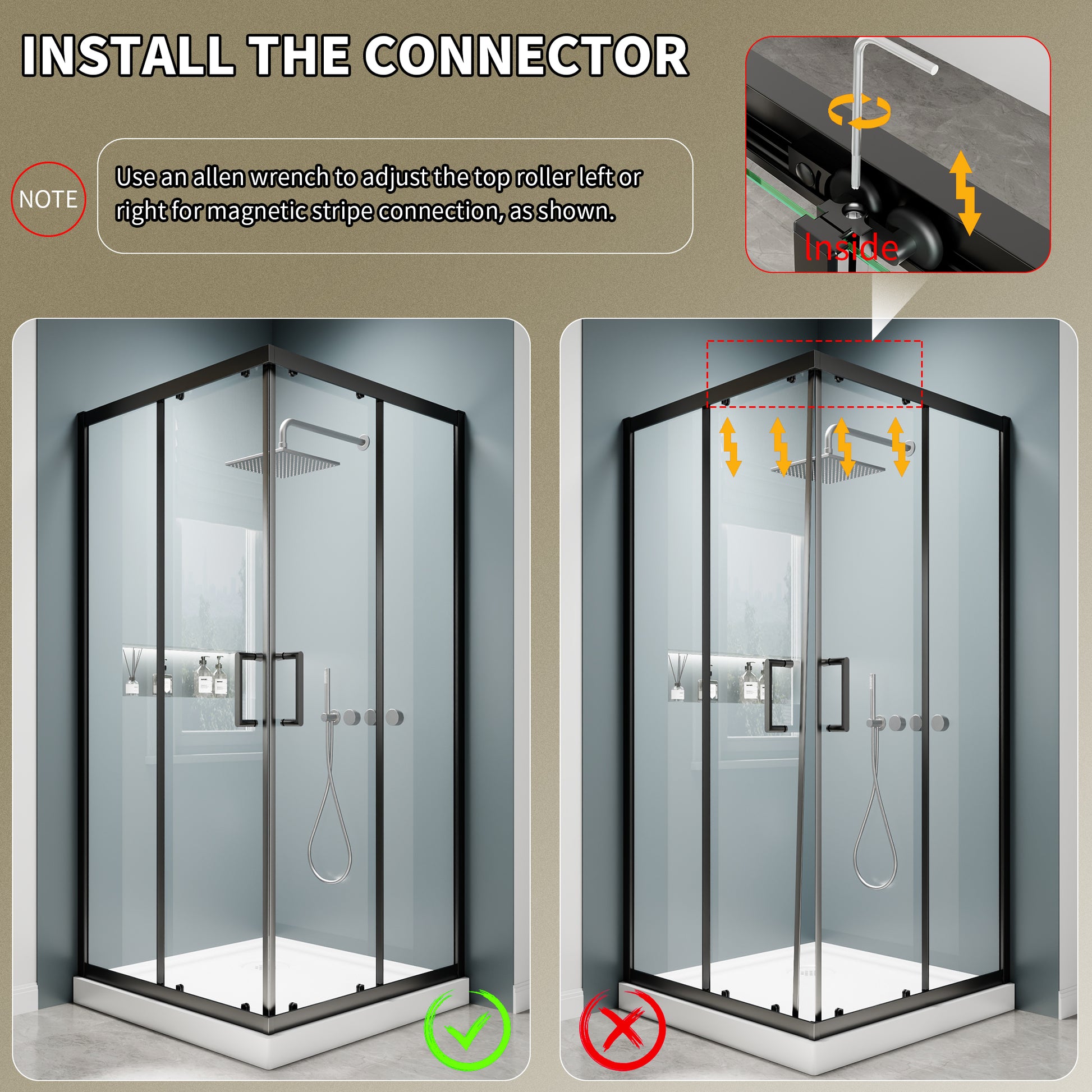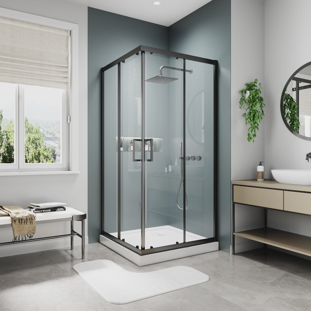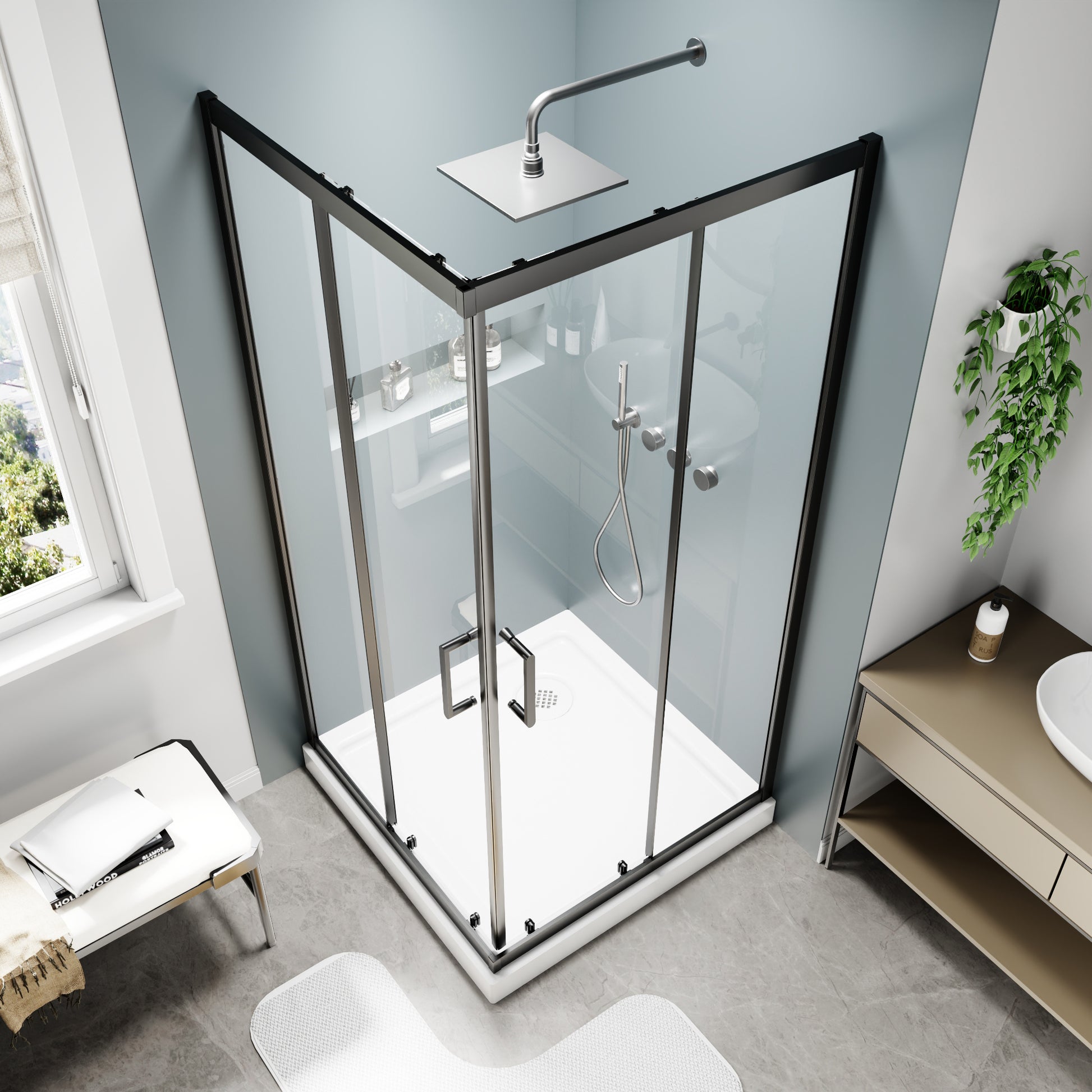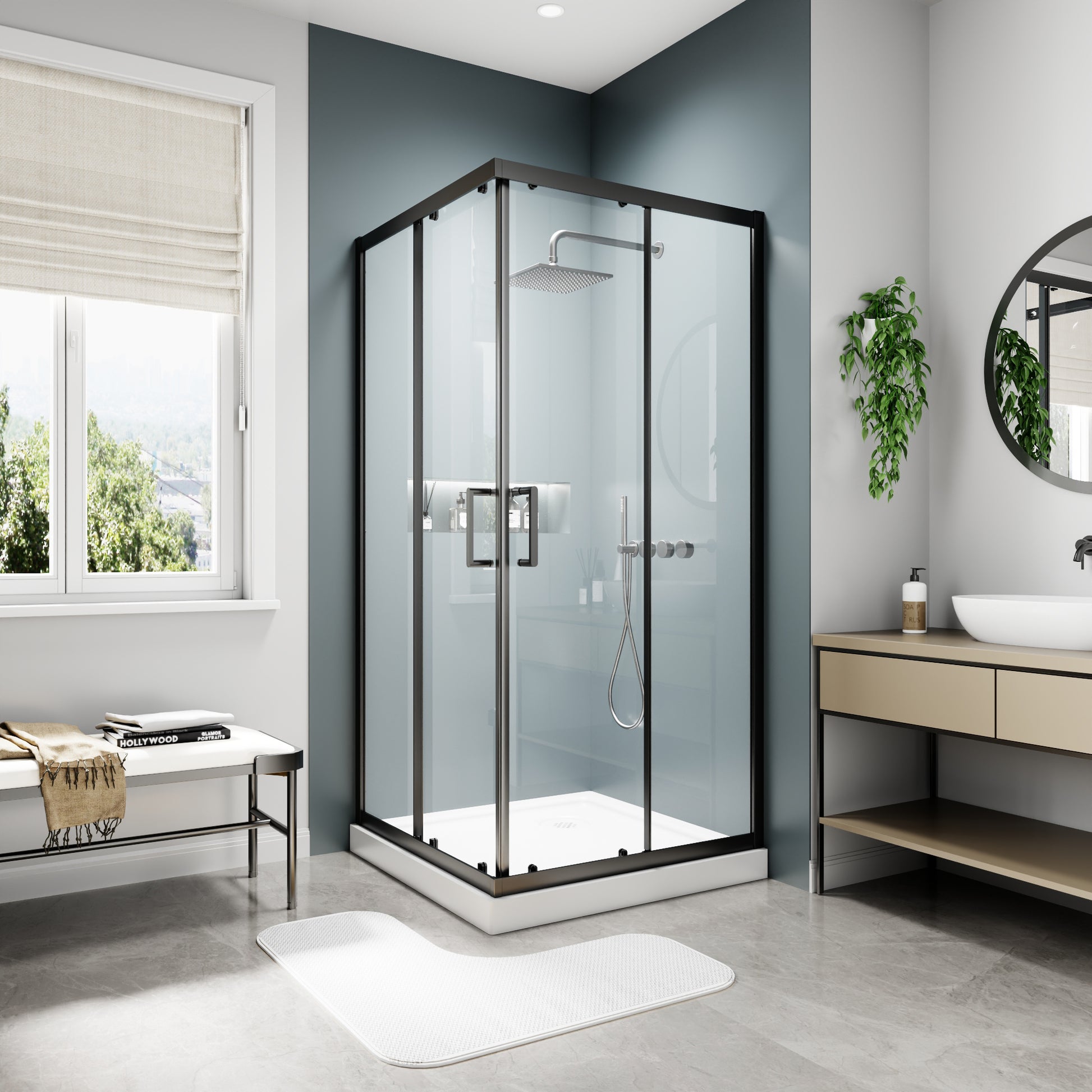 36Wx71H Framed Hinged Shower Door 6mm Clear Tempered Glass 304 Stainless Steel Handle Matte Black Easy Clean