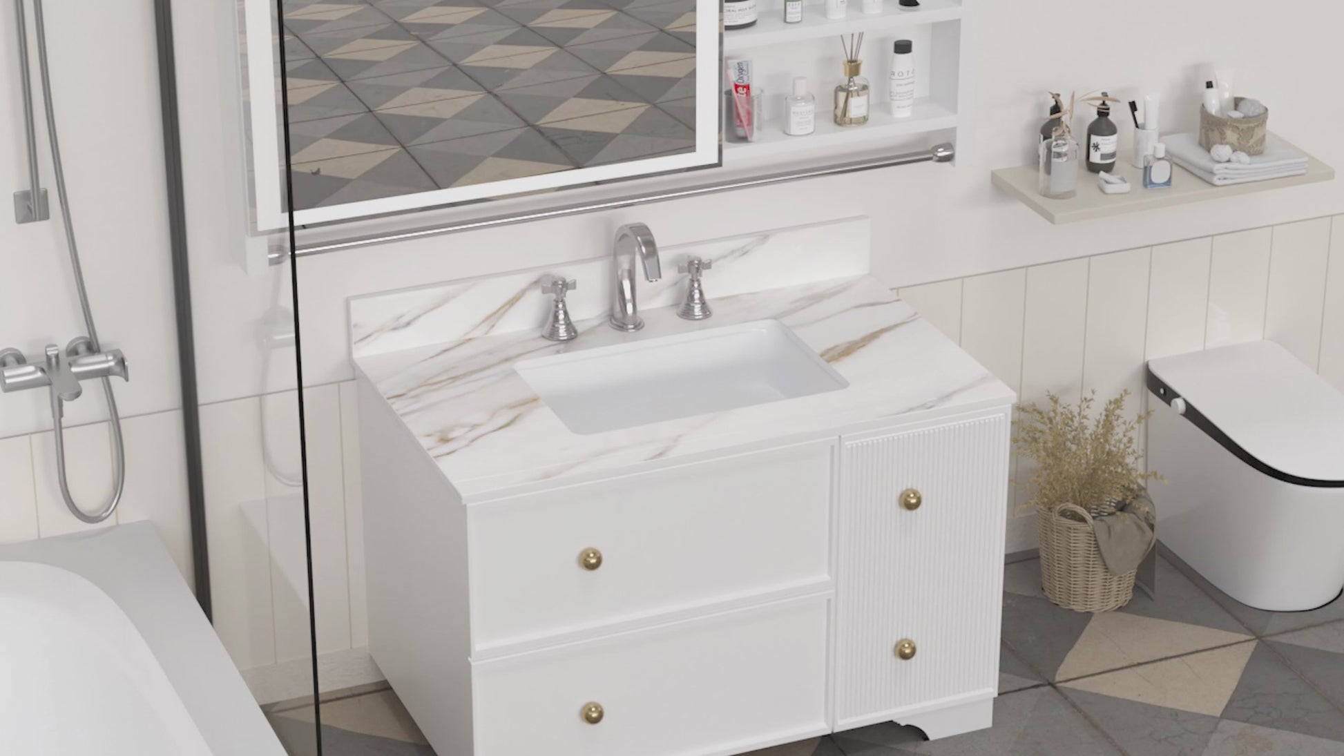Enhance your bathroom with this elegant Carrara white marble vanity top, designed for both style and functionality. Featuring a pre-drilled faucet hole spread and a 4-inch high backsplash, this vanity top is perfect for preventing water damage and maintaining a tidy space. The non-porous sintered stone is highly durable, resistant to stains, and easy to maintain, making it an ideal choice for busy households. With its classic design and practical features, this vanity top is suitable for a wide range of bathroom décors.