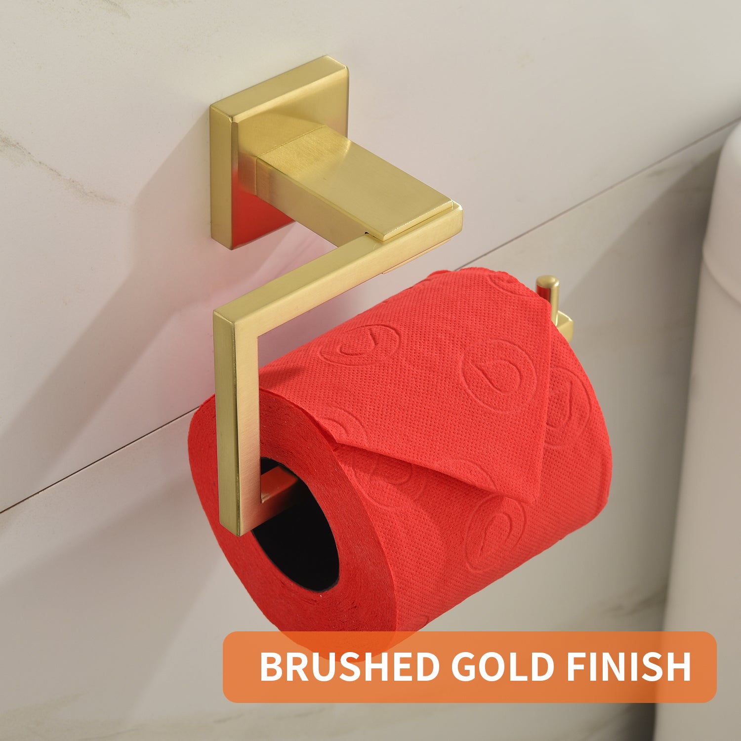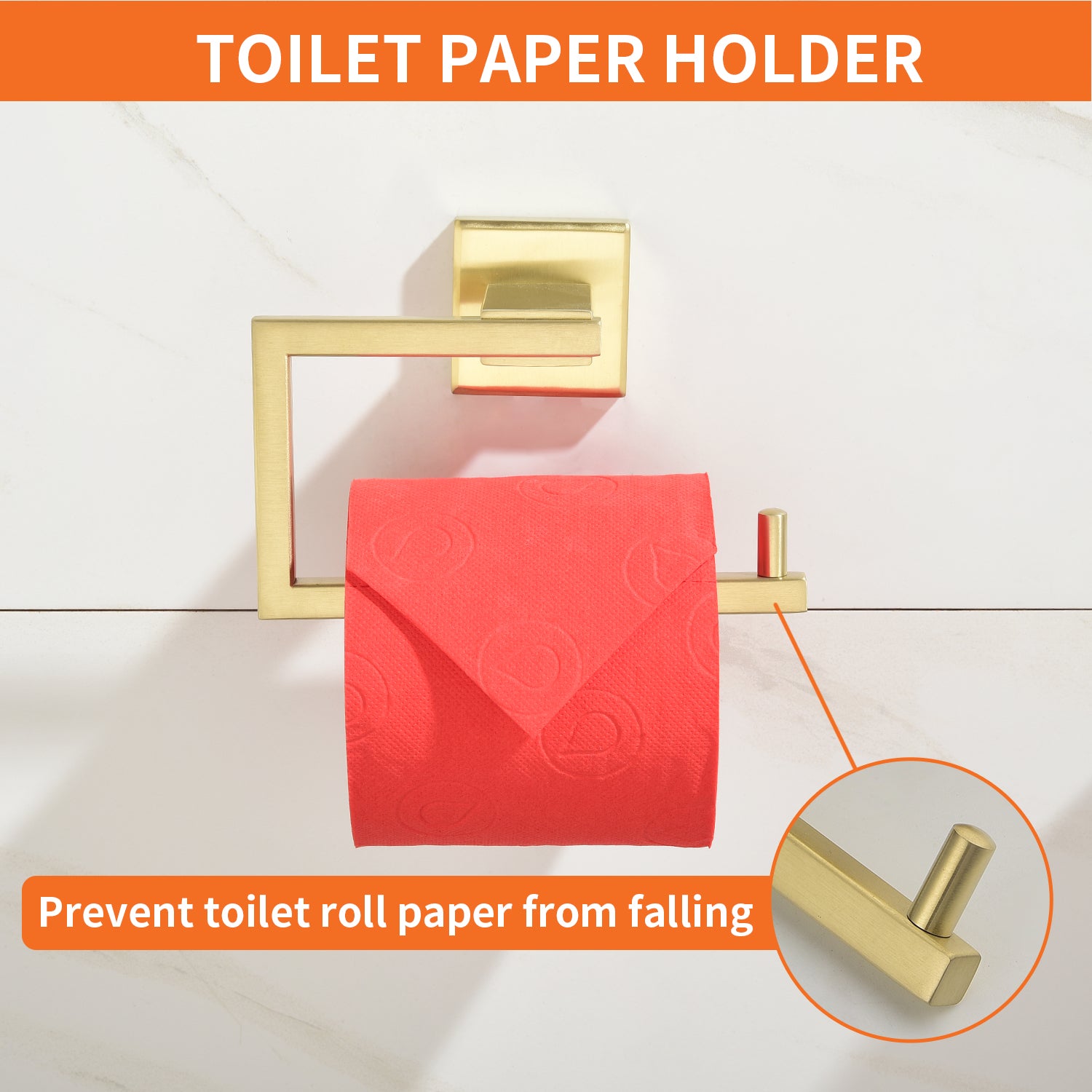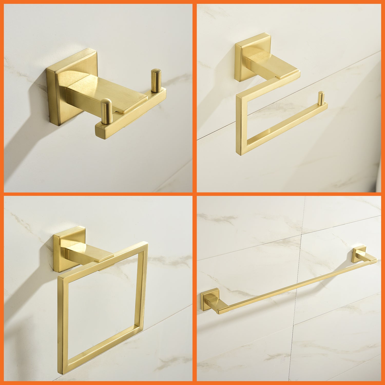 4 Piece Bath Hardware Set with Towel Hook Towel Bar Toilet Paper Holder and Hand Towel Holder in Brushed Gold