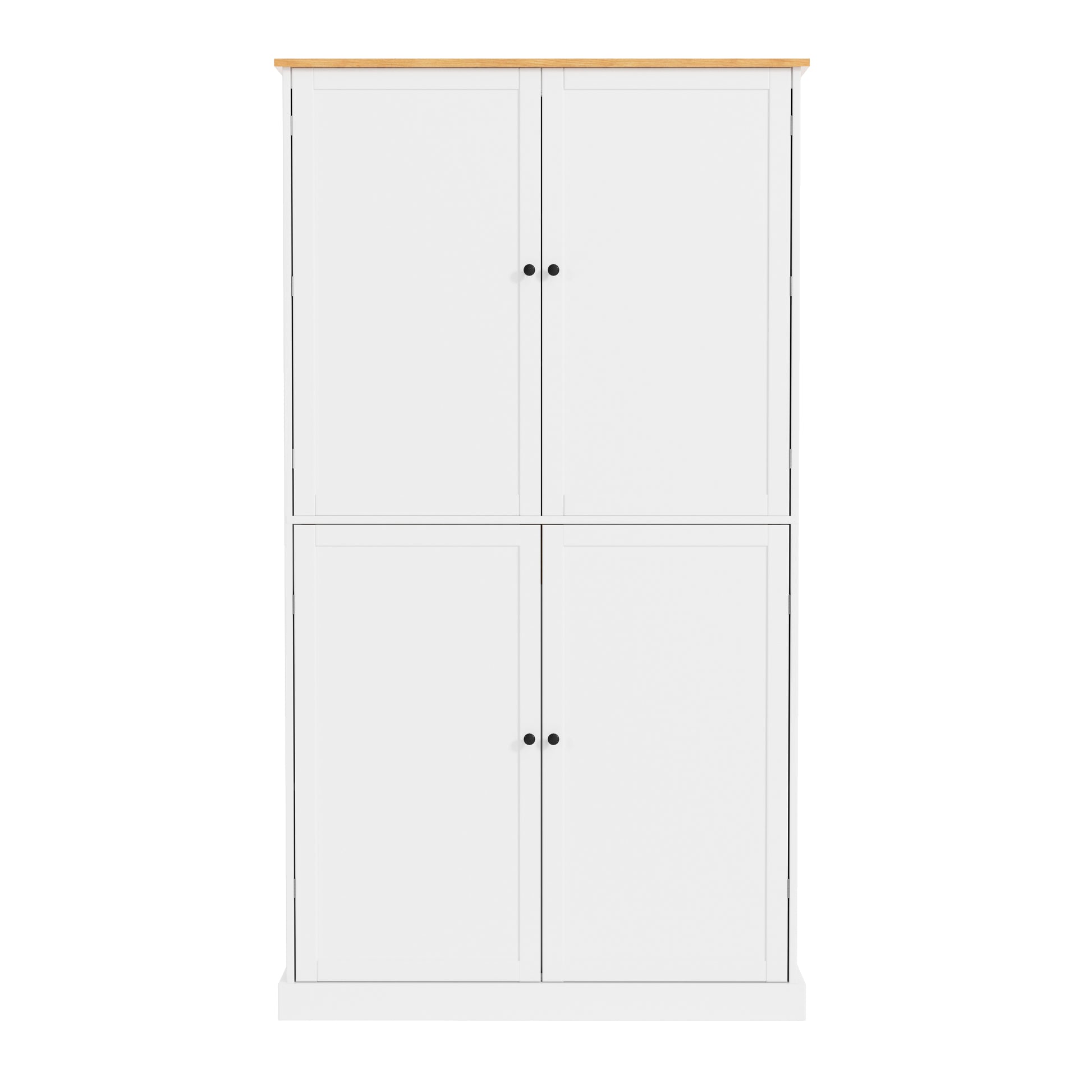 40.2in.W x 20in.D x 71.3in.H White Freestanding High Kitchen Pantry and Large Storage Cupboard Featuring 2 Drawers 2 Adjustable Shelves and 8 Door Mounted Shelves Ideal for Kitchens and Dining Rooms