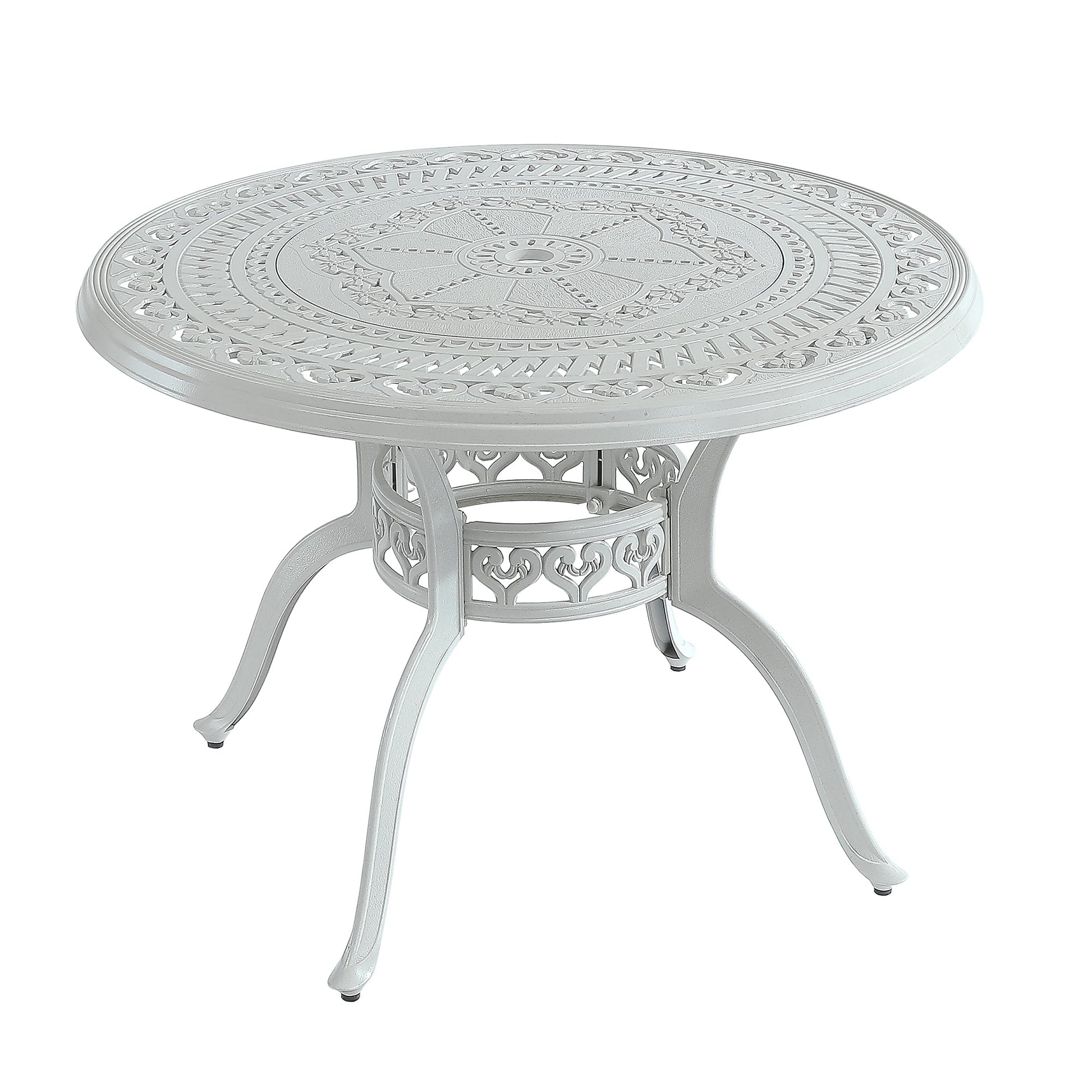 40 Inches Outdoor Dining Table with Umbrella Hole Cast Aluminium Patio Dining Table Outdoor Round Dining Table, White