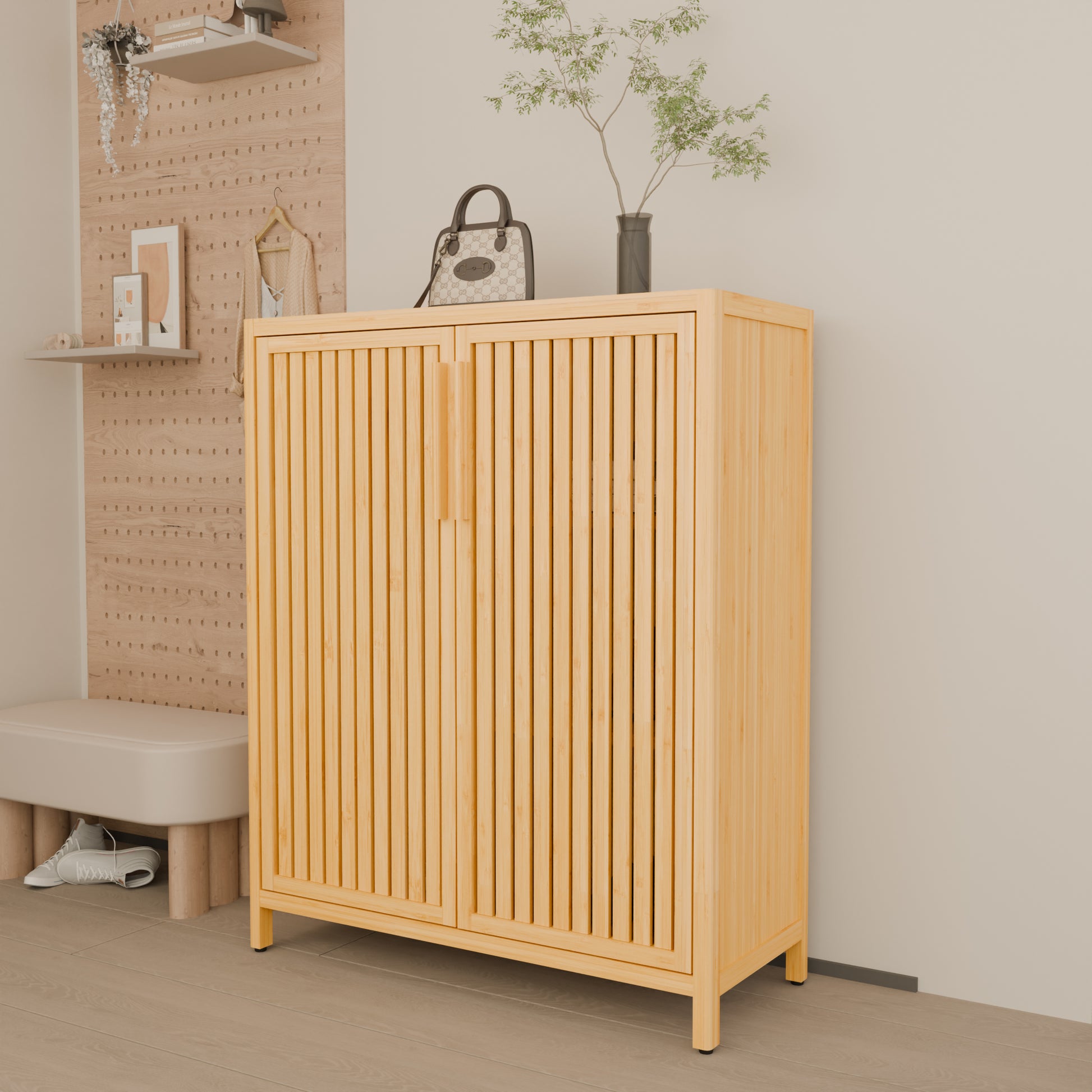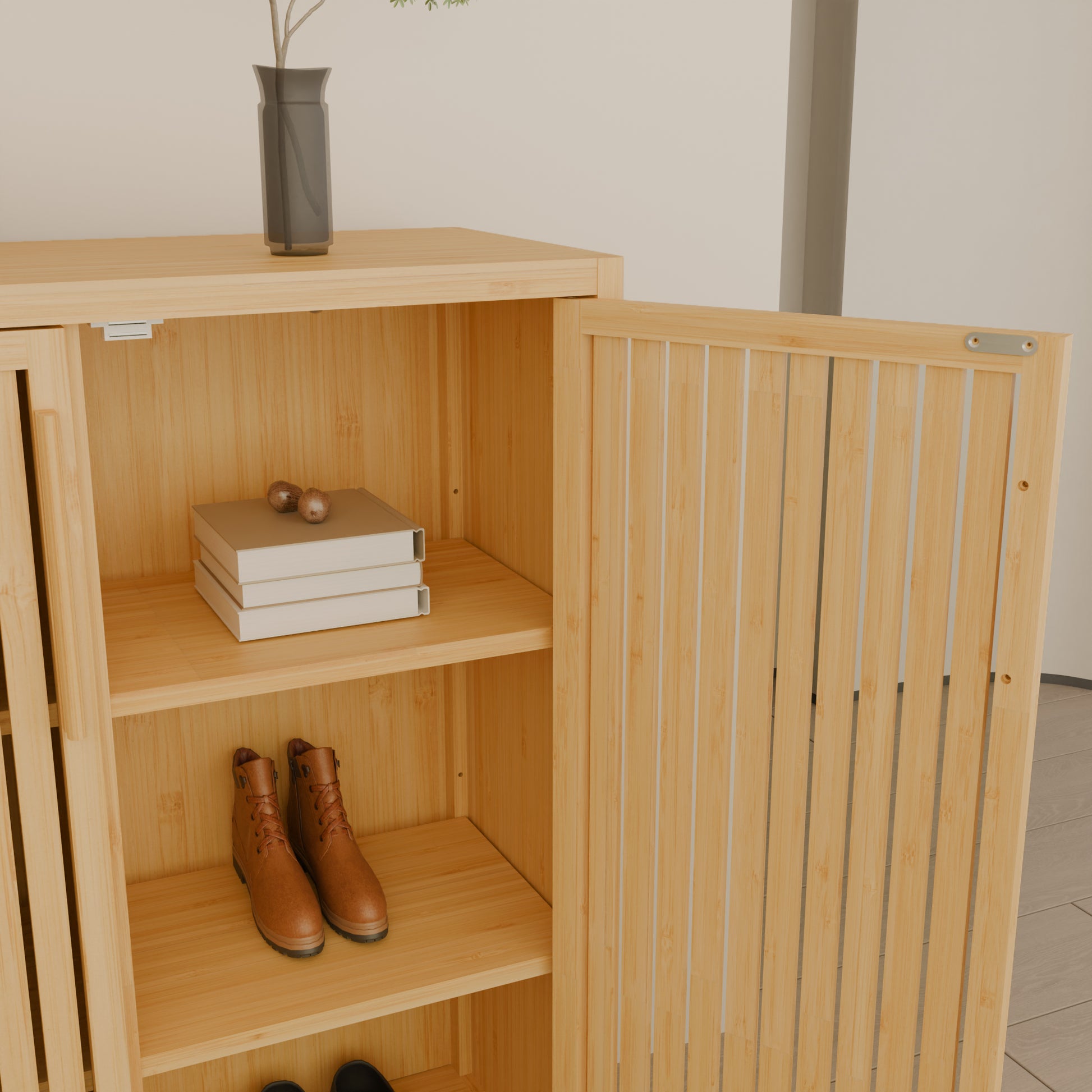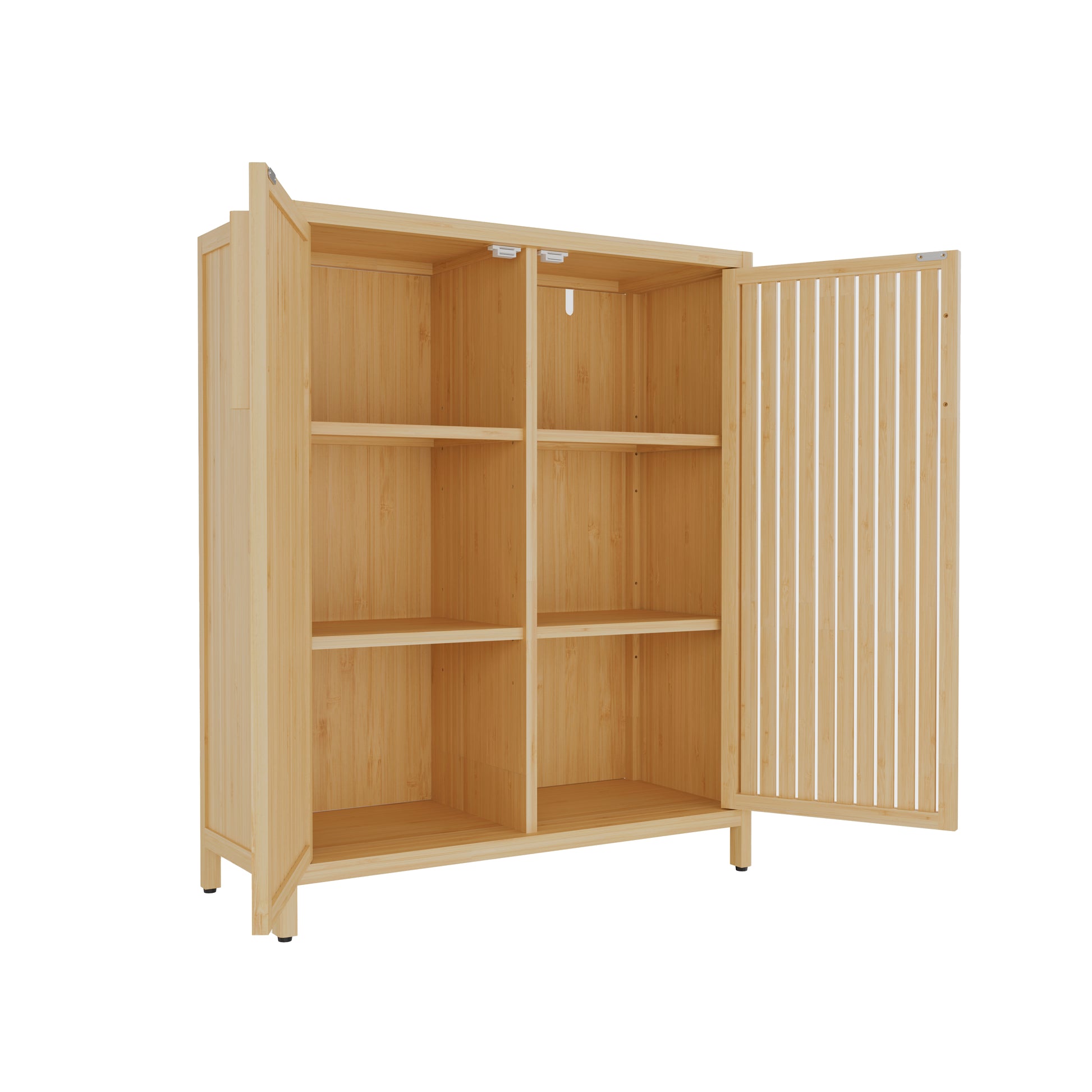 42 Inch Bamboo Storage Cabinet Multi Scene Use Shoe Cabinet and Bathroom Cabinet with Large Capacity and Open Shelves