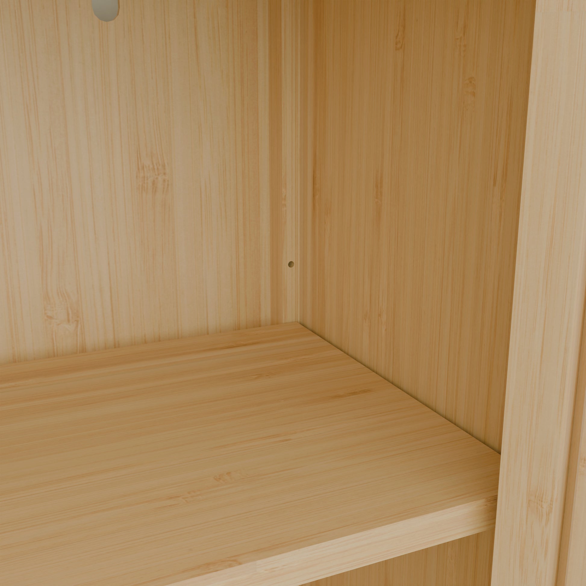 This 42 inch bamboo storage cabinet is designed for efficient organization in various areas of your home. Featuring two open shelves and an enclosed cabinet with doors, it maximizes vertical space and fits easily into small corners, narrow hallways, and compact rooms. Made from 100 percent natural bamboo, it offers excellent durability, strength, and resistance to wear. Whether used as a bathroom cabinet, shoe cabinet, kitchen shelf, or bedroom storage unit, it provides both accessible display space and hidden storage. With clear instructions and labeled parts, the cabinet can be assembled by one person in just 15 minutes.