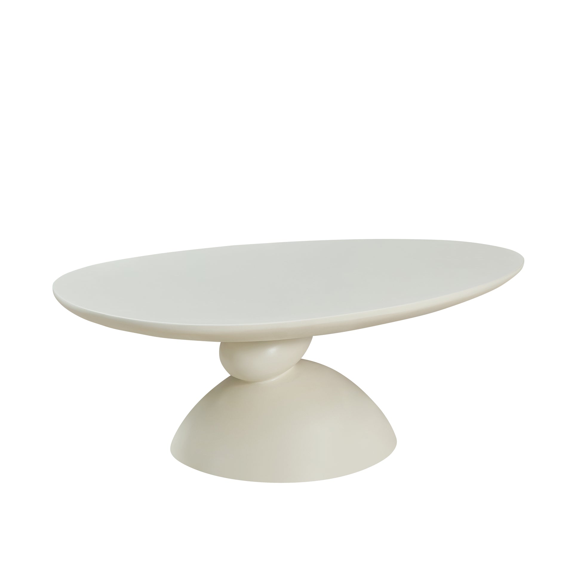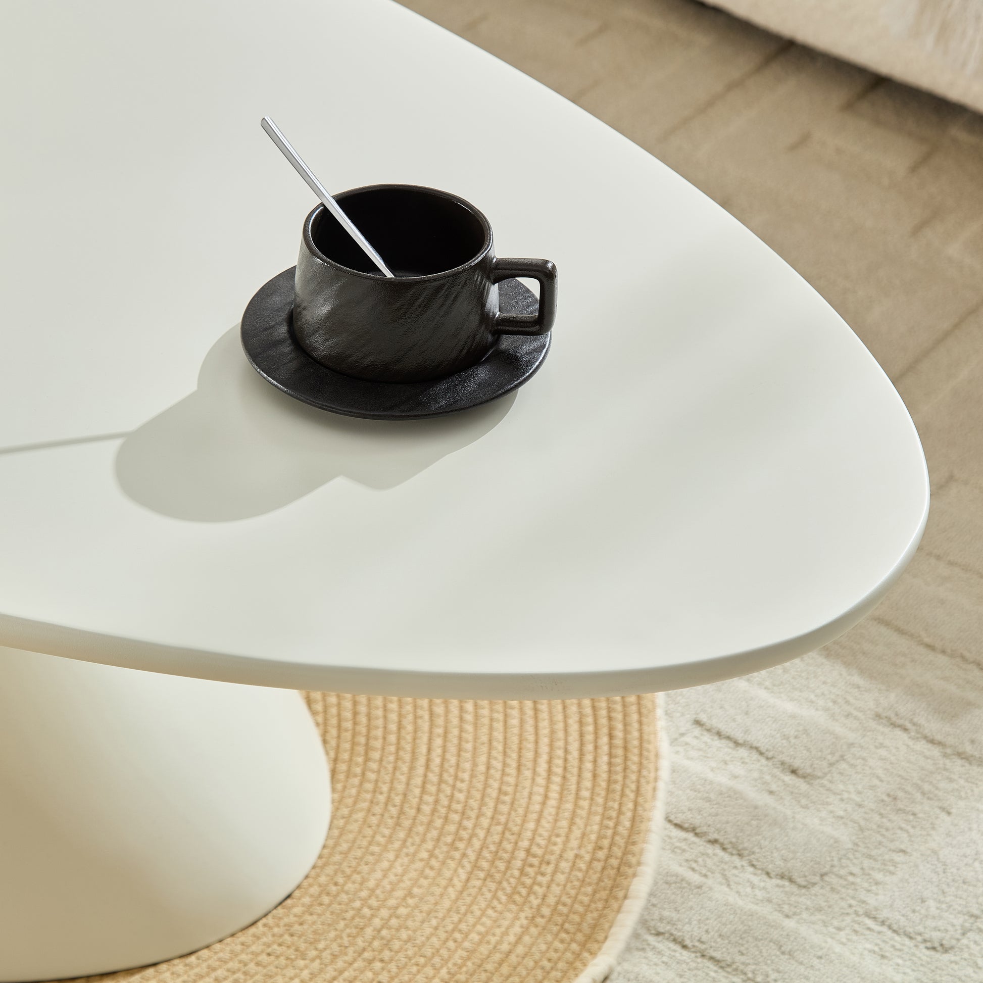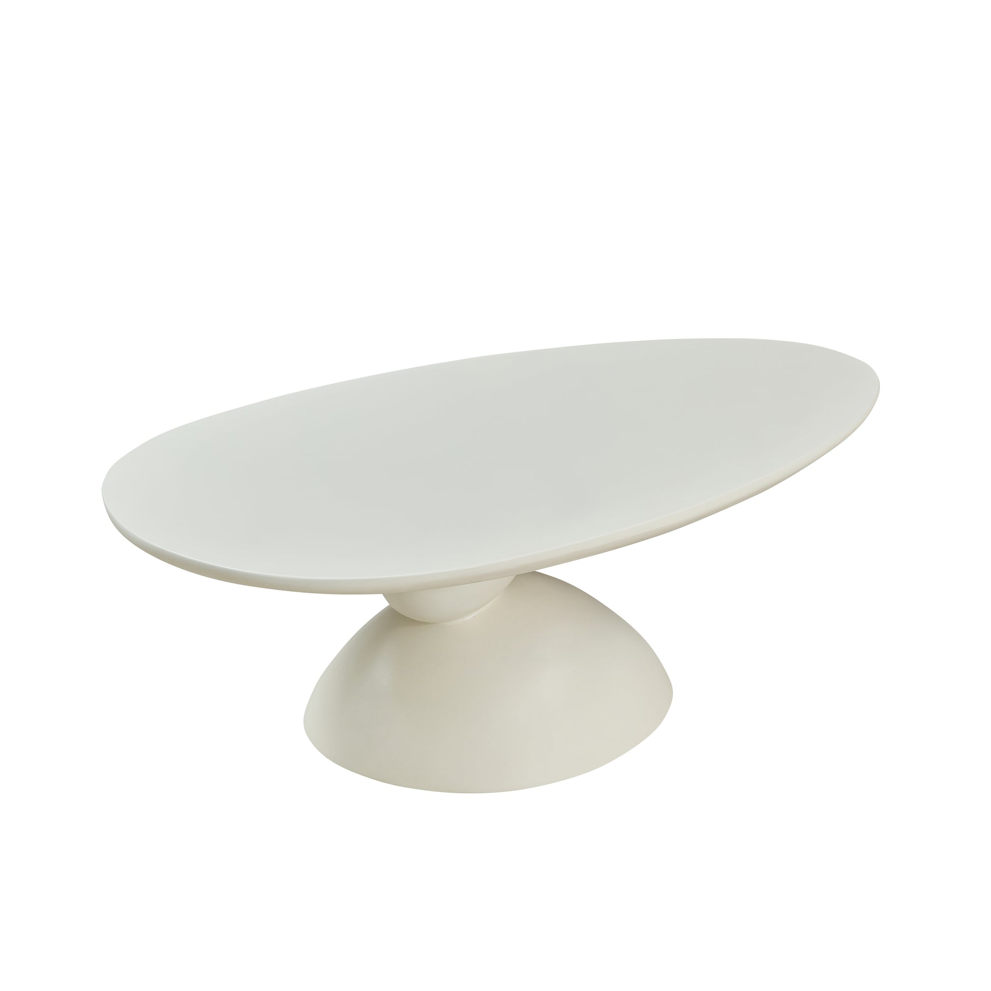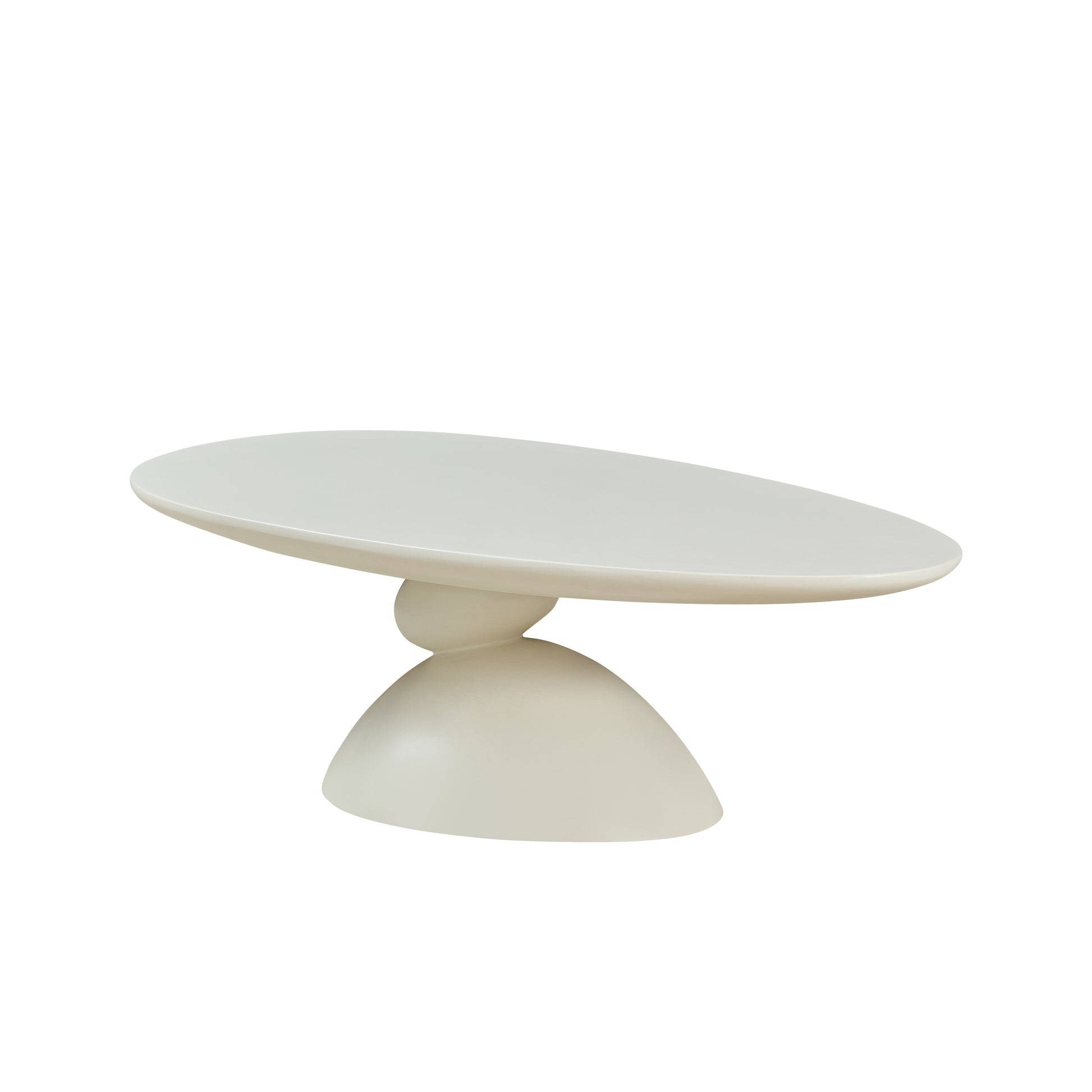 This Lucky Stone oval coffee table brings modern minimalist design together with symbolic beauty. Inspired by the ancient ritual of stacking stones for harmony and good fortune, its sculptural pebble shaped base serves as a decorative focal point and a meaningful presence in your home. Crafted from durable fiberglass with a smooth milk white finish, the table offers excellent stability and long lasting quality. The oval tabletop provides a spacious and safe surface for daily use while blending effortlessly with contemporary, Scandinavian, or minimalist interiors. Easy to assemble and simple to maintain, it is ideal for living rooms, apartments, or compact spaces seeking a functional and artistic centerpiece.