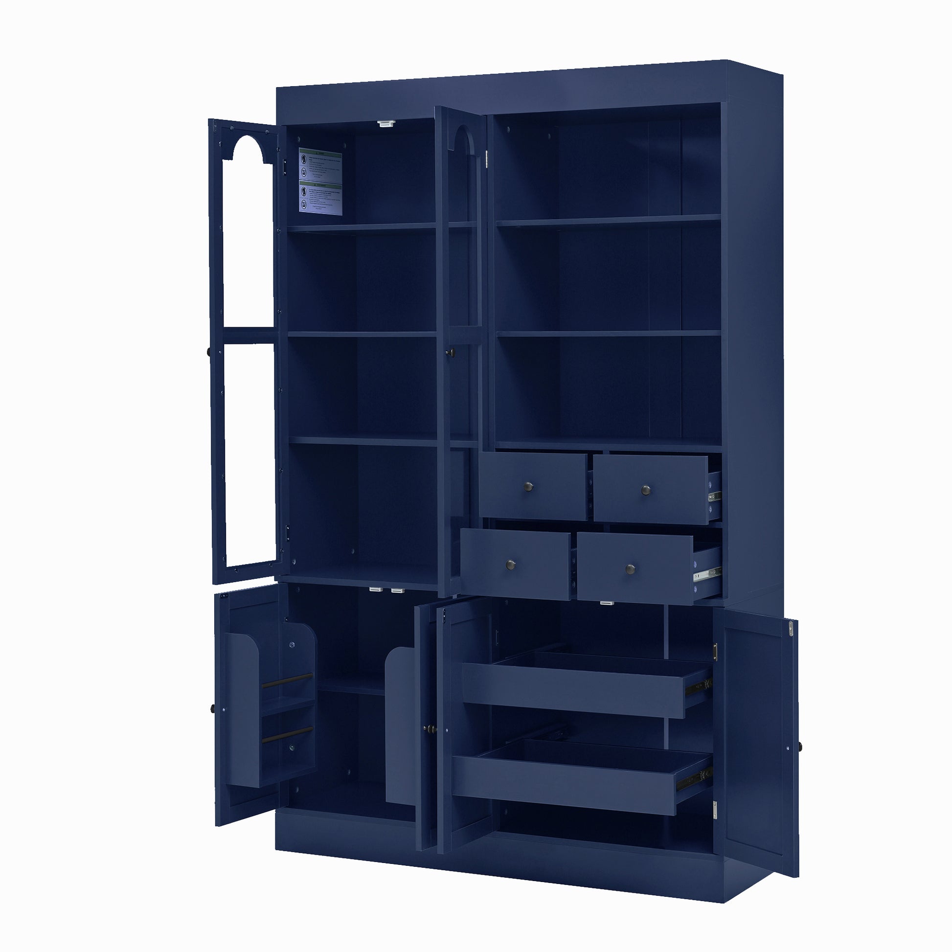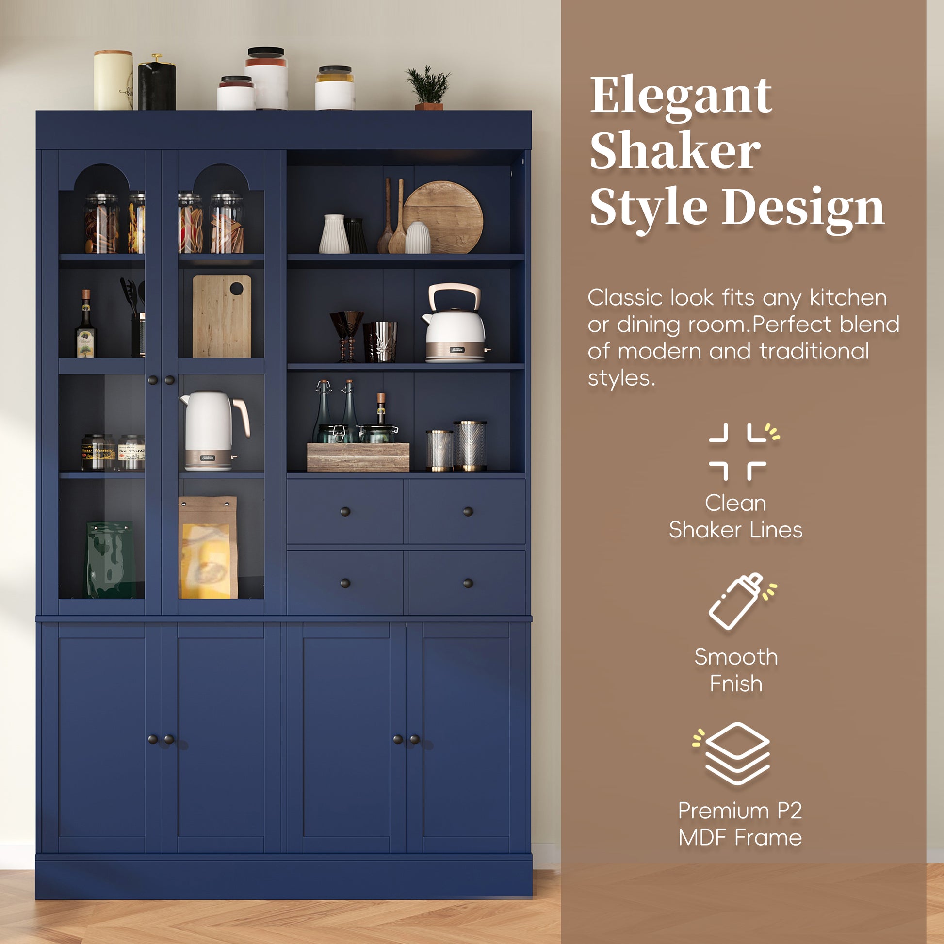 47.2in.W x 15.7in.D x 75in.H Blue Freestanding Buffet with Hutch Tall Kitchen Pantry Cabinet with 4 Drawers Door Shelves and Pull-out Trays for Dining Rooms and Living Rooms