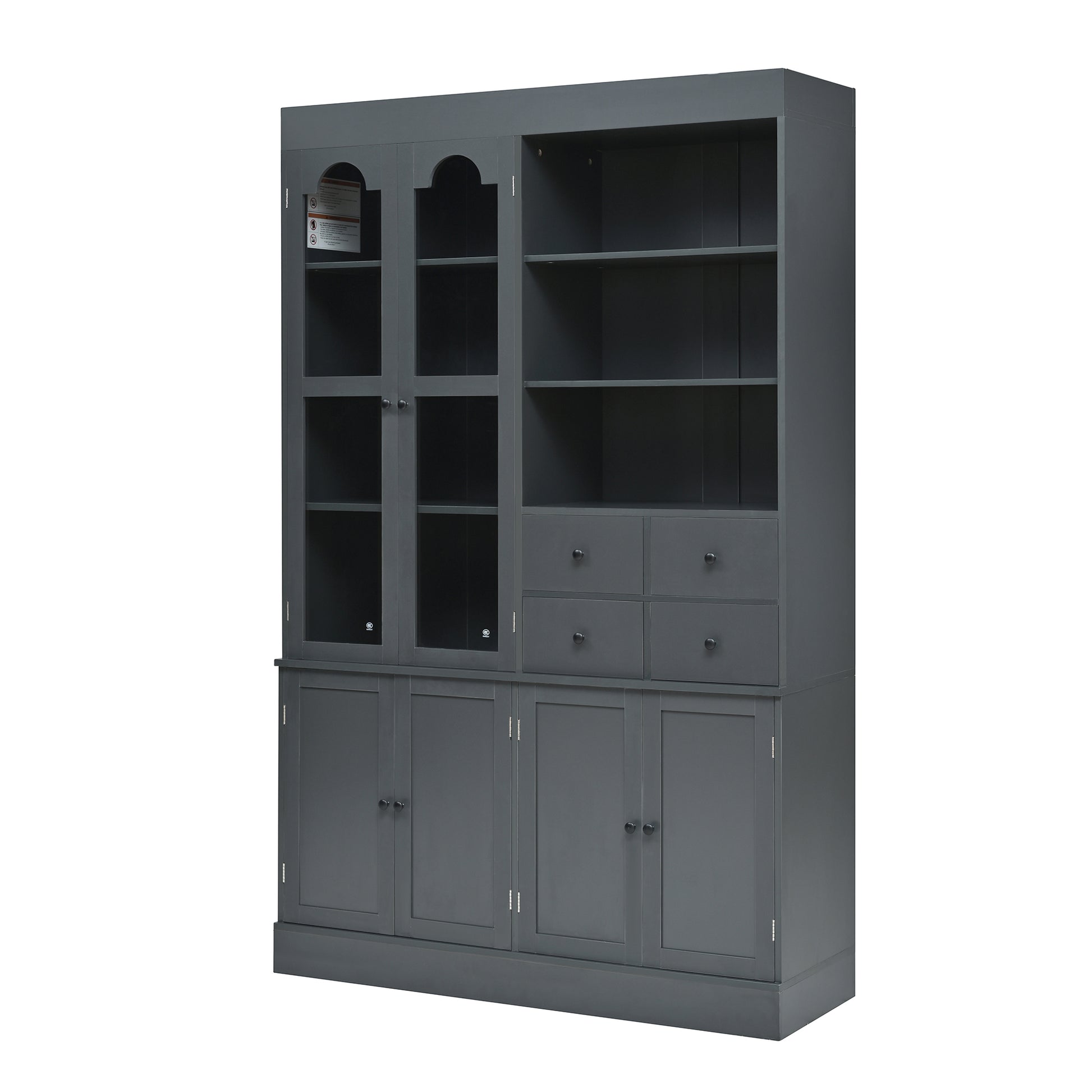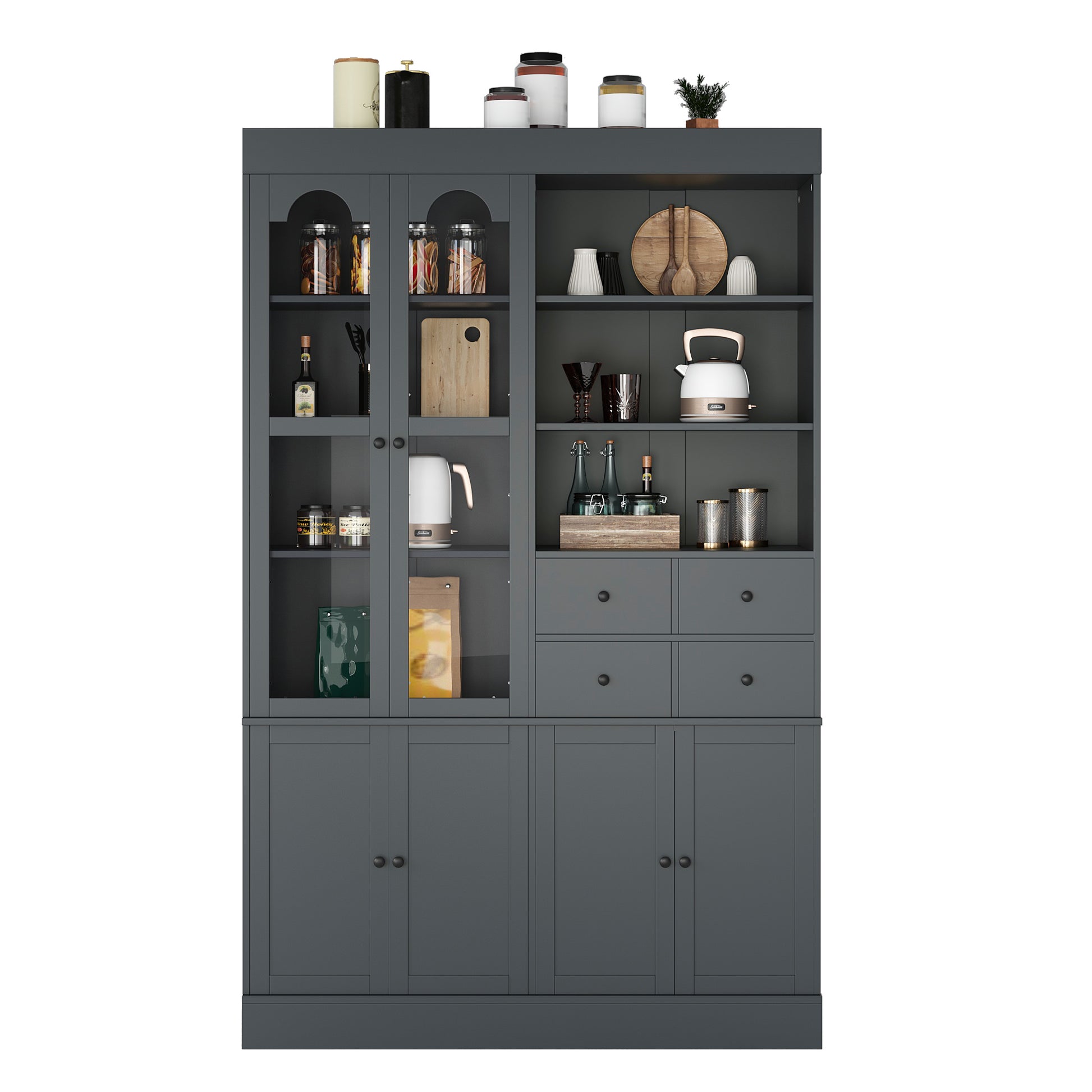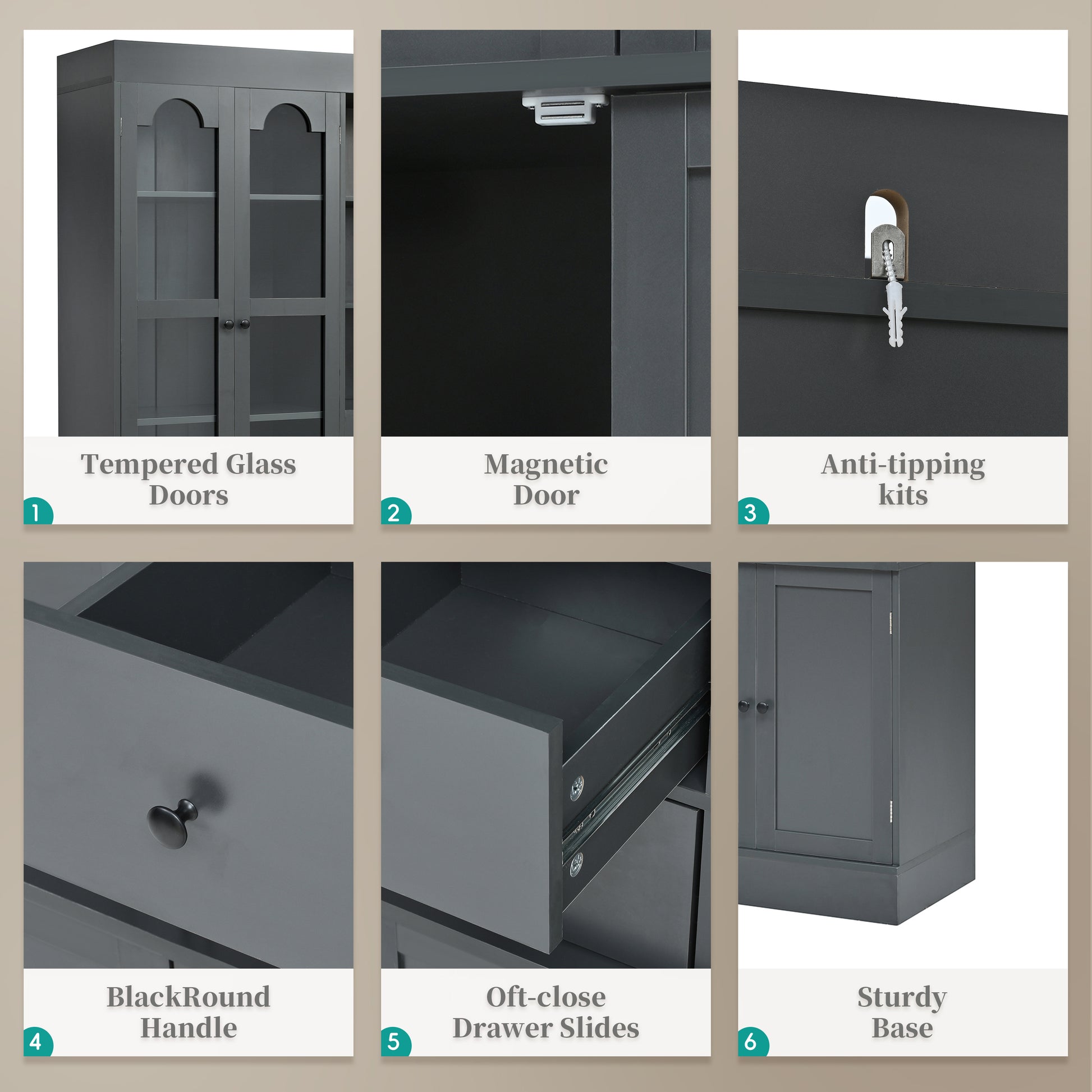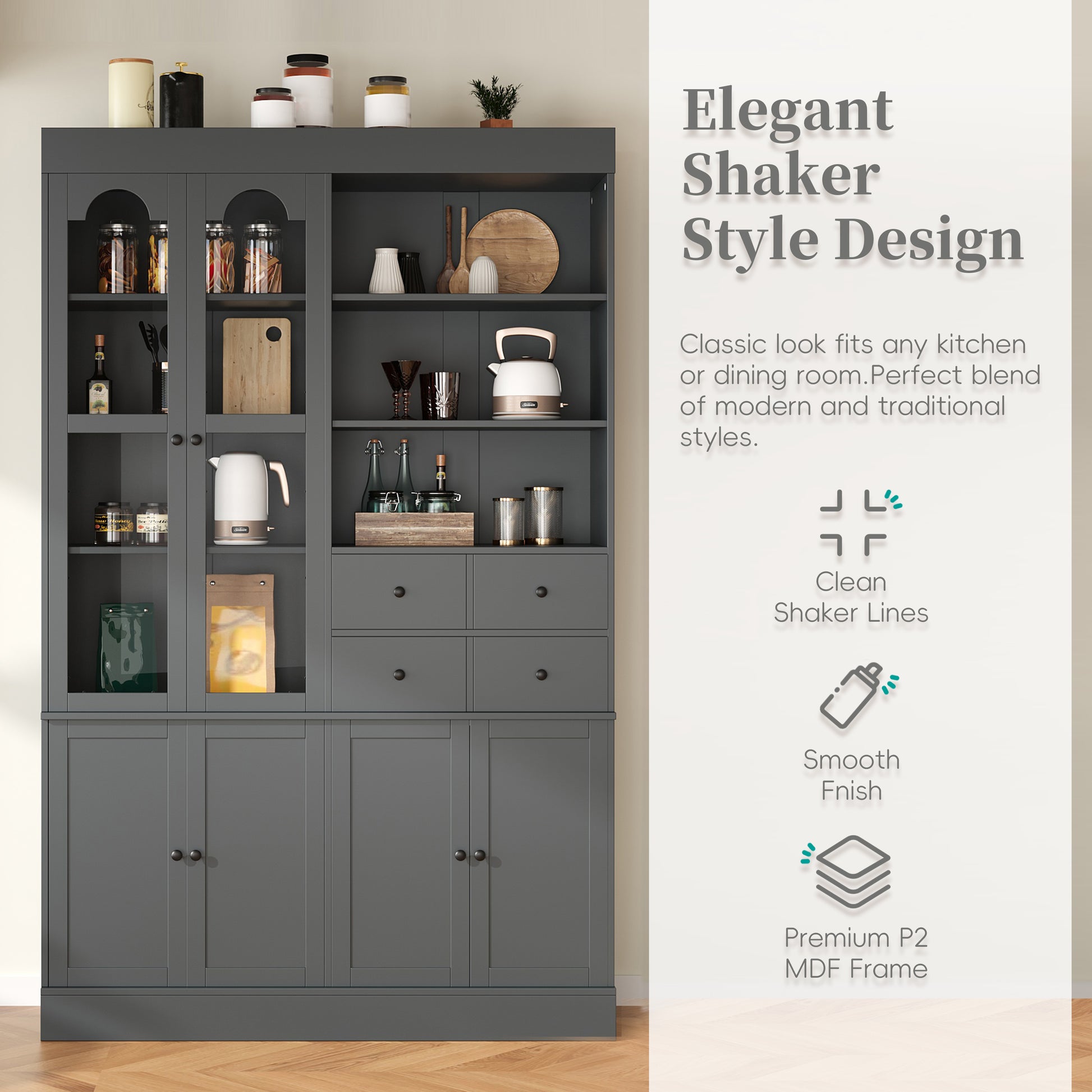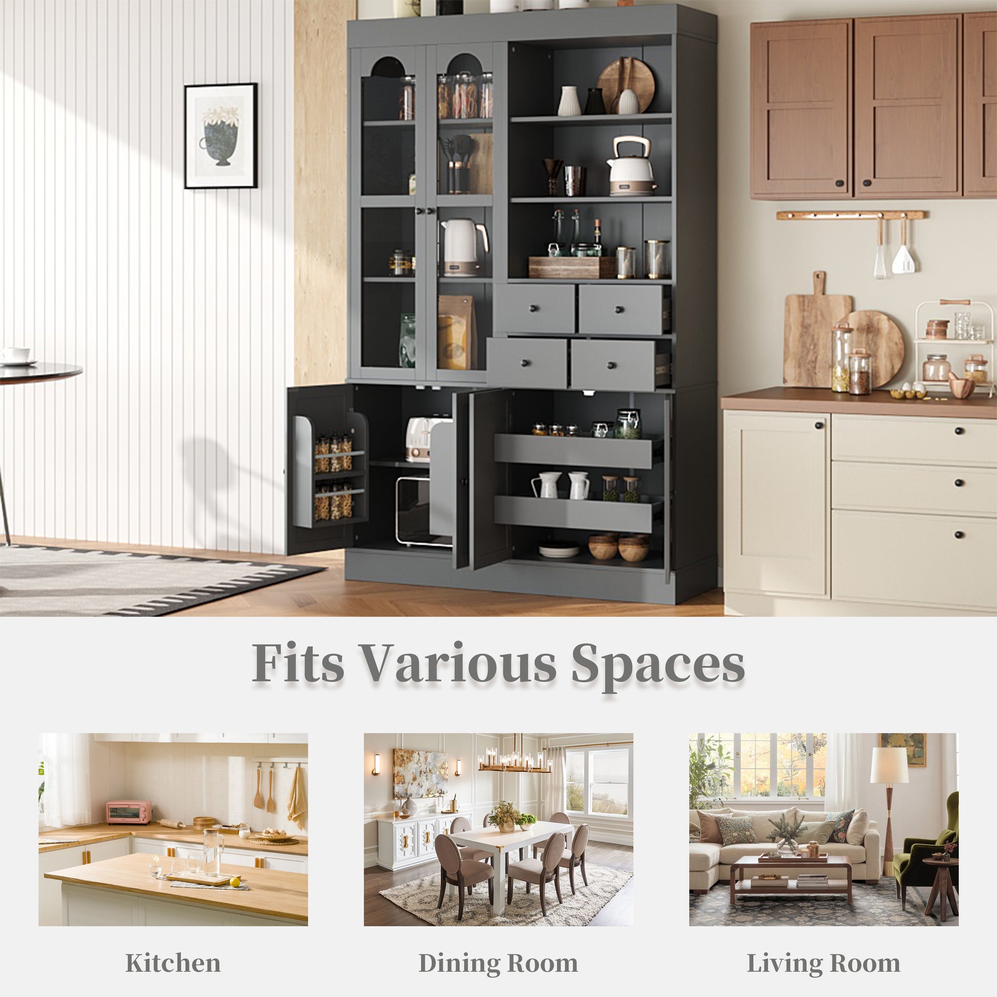 47.2in.W x 15.7in.D x 75in.H Gray Freestanding Buffet with Hutch Tall Kitchen Pantry Cabinet with 4 Drawers Door Shelves and Pull-out Trays for Dining Rooms and Living Rooms