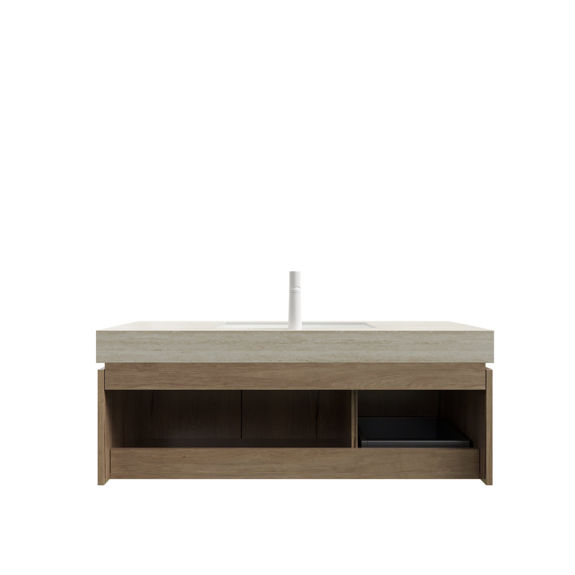 48 Bathroom Vanity with Sink Wall Mounted Plywood Cabinet Drawer 2 Doors Roma Travertine Countertop Basin White Oak
