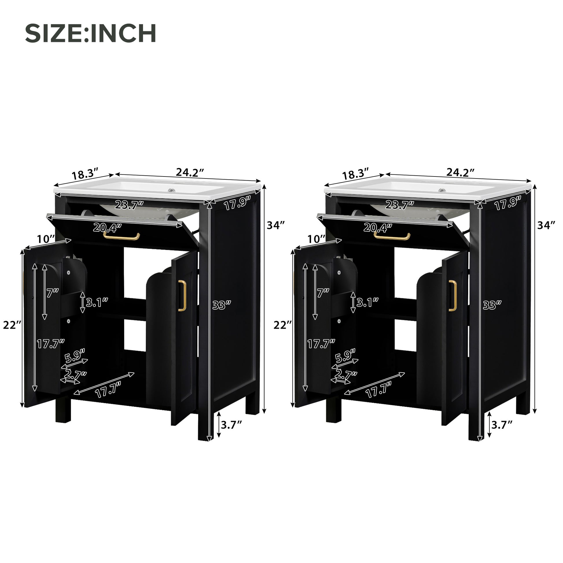 This 48-inch modern double bathroom vanity combines refined aesthetics with practical storage. It features dual ceramic sinks with overflow protection, soft-close doors, a hidden flip drawer, and an adjustable U-shaped shelf to optimize under-sink space. Built with a solid wood frame and MDF panels, the vanity boasts a premium painted finish that resists humidity and scratches, offering long-lasting durability and style.