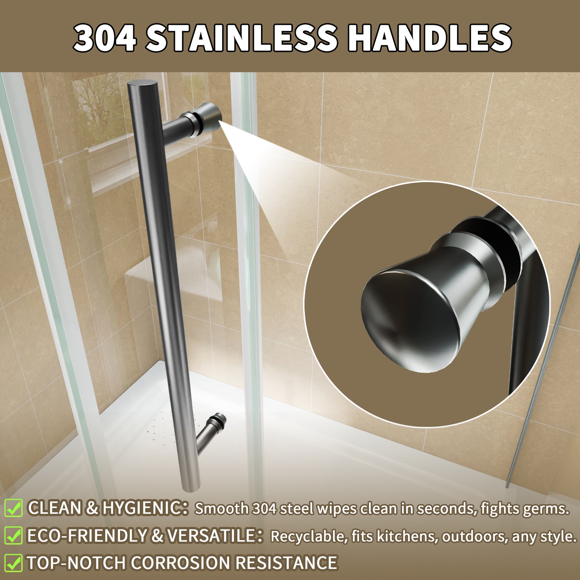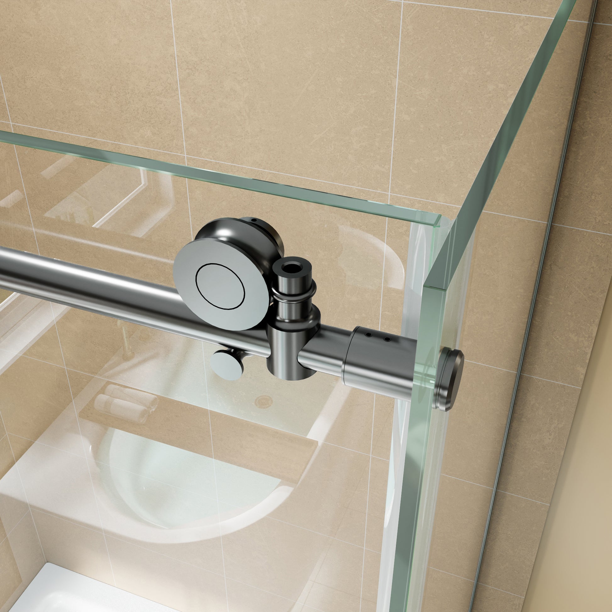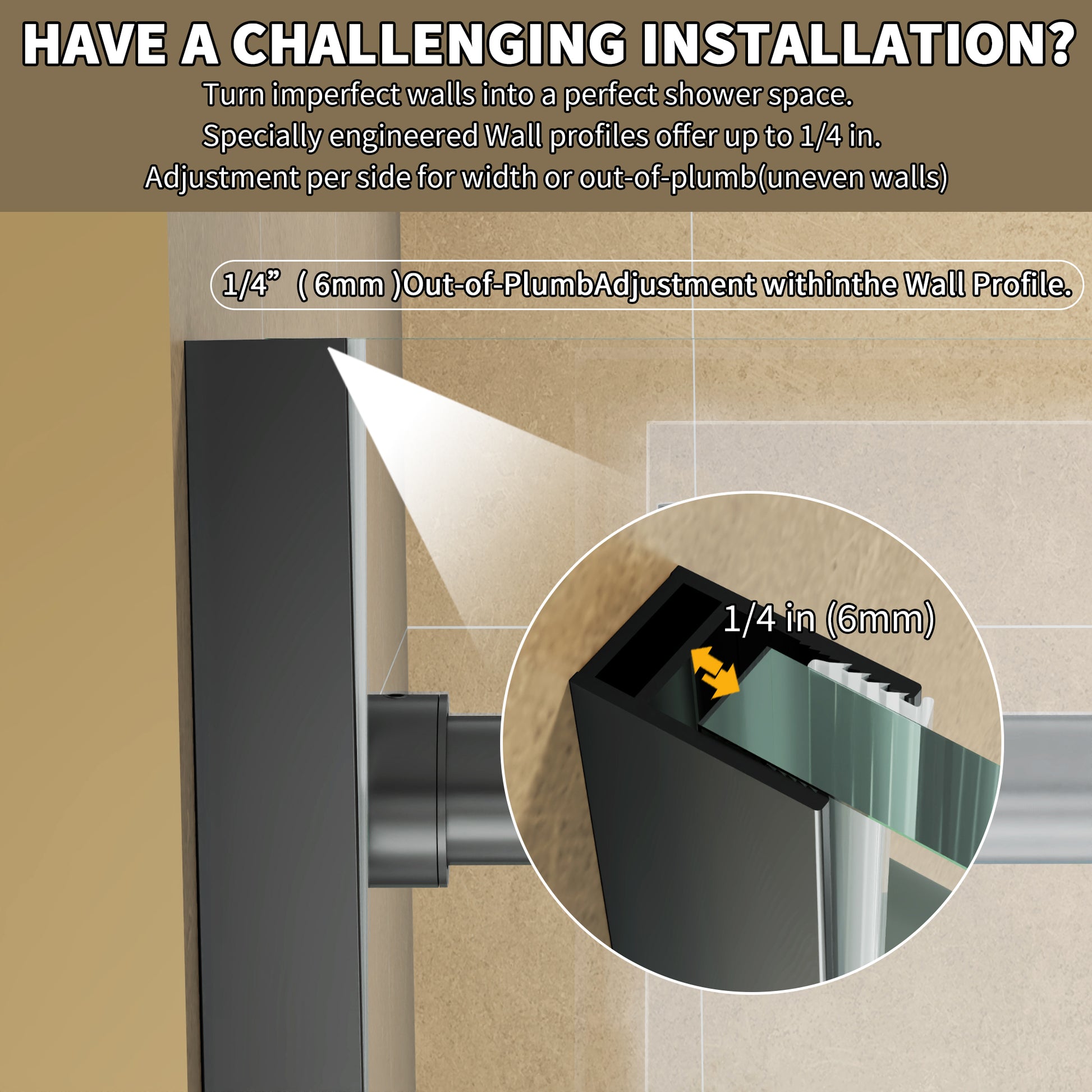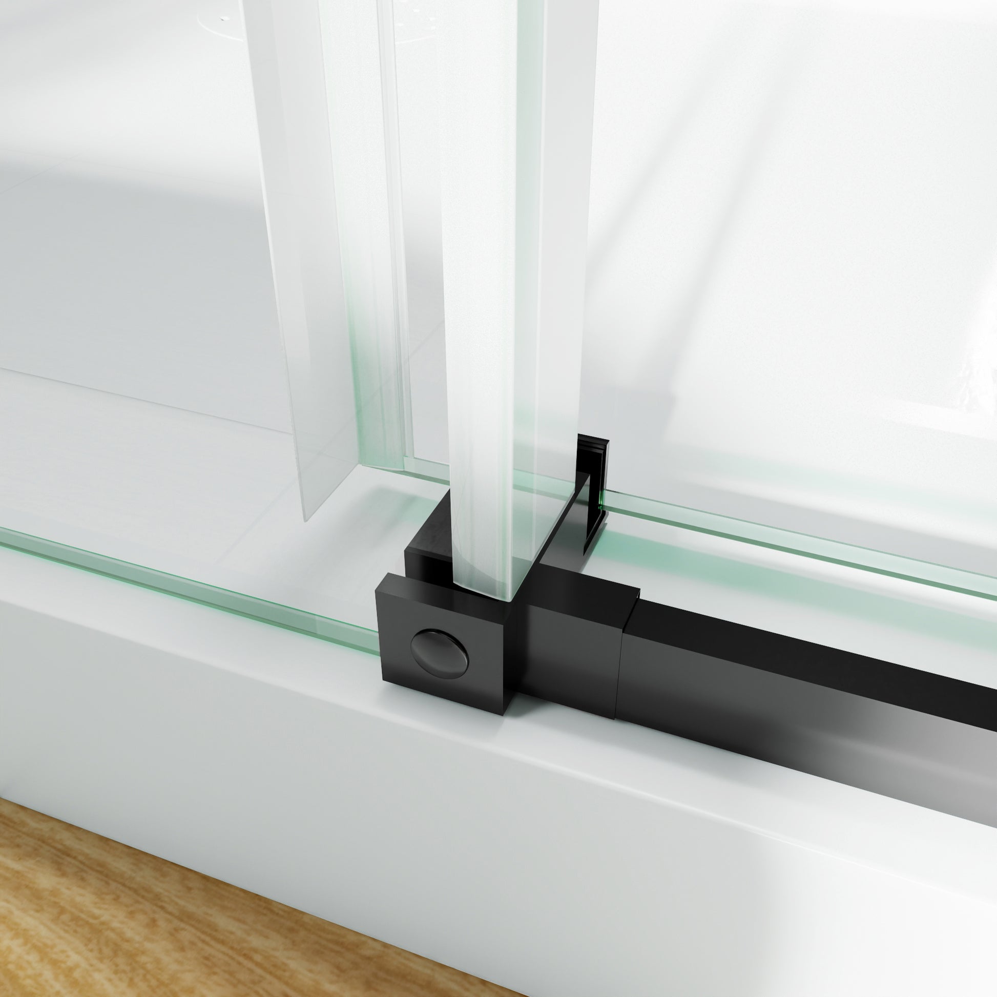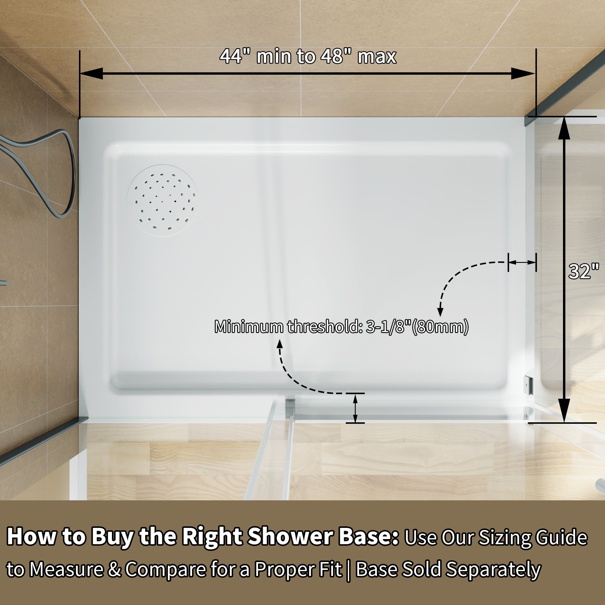 This sliding shower door is crafted from 3/8" (10mm) tempered glass with SGCC and ANSI Z97.1 certification, paired with durable matte black stainless-steel hardware. Its minimalist sliding design features a dual roller system and round bar for smooth operation, while the adjustable width (44–48") and wall track allow flexible installation even on uneven walls. Equipped with full-length transparent seals and complete installation hardware, it ensures leak prevention and a seamless frameless look. With a height of 72", suitable for 48"x32" shower bases, it requires a minimum 3-1/8" threshold and reinforced studs, with professional installation recommended. Backed by a 1-year warranty, it focuses solely on sliding door functionality without a base, offering versatile compatibility for modern bathrooms.