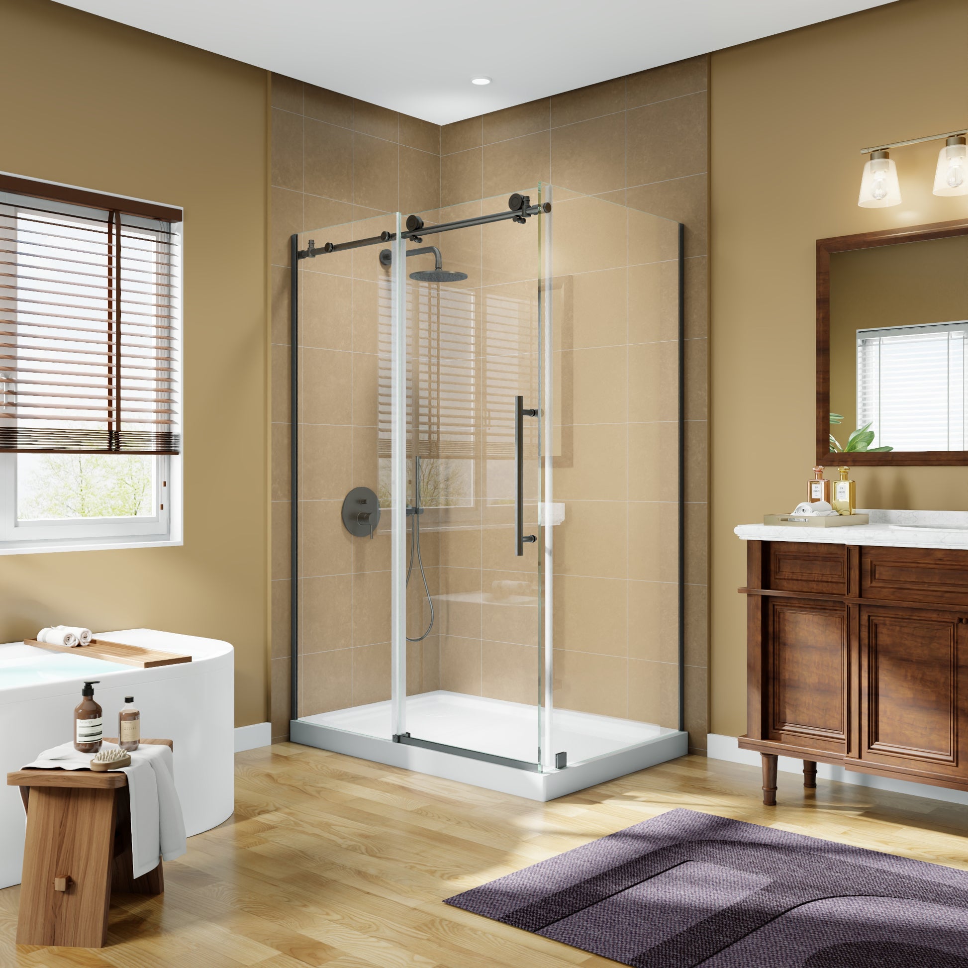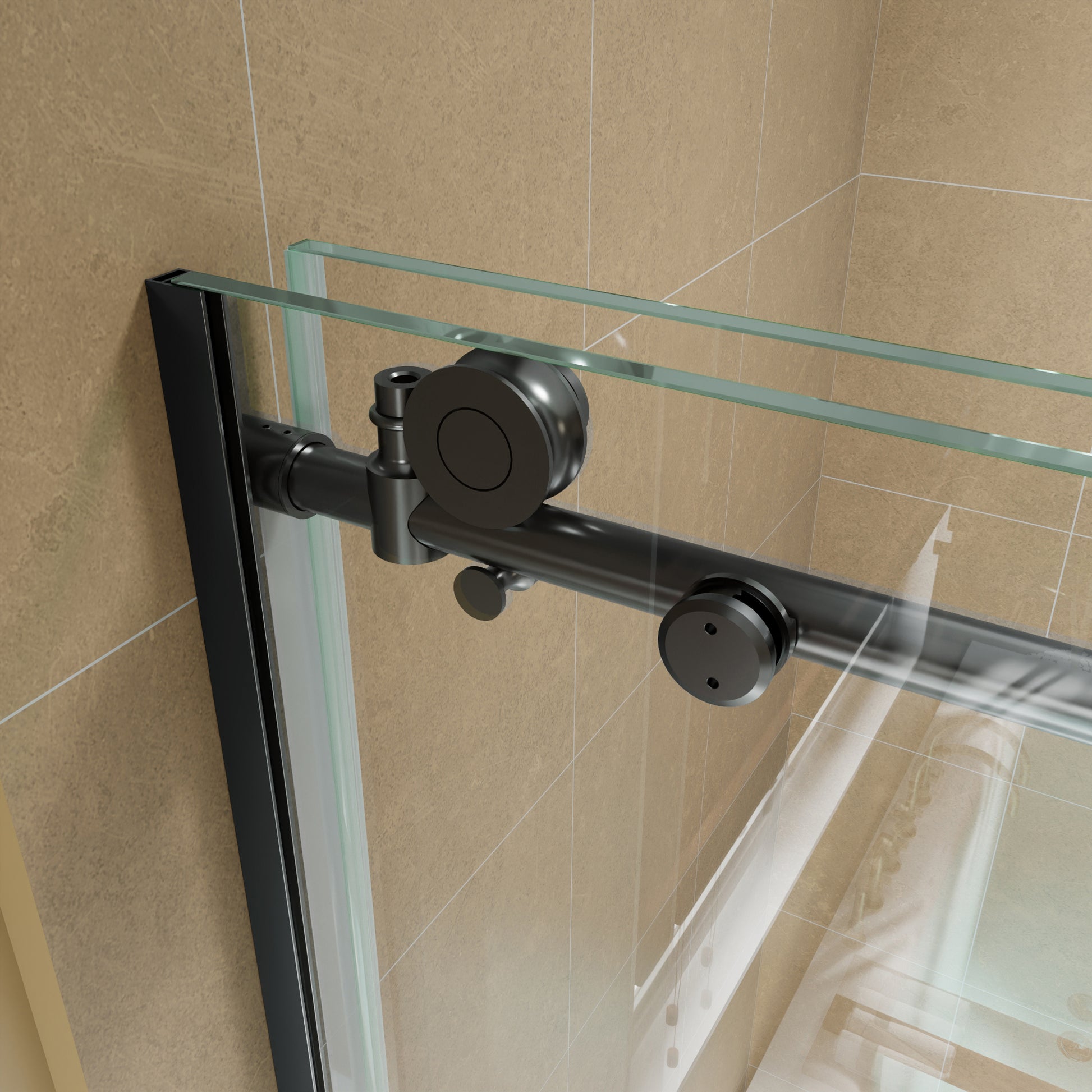 48Wx72H Frameless Single Sliding Shower Door Aluminum and 38 inch Tempered Glass Matte Black Roller System SGCC ANSI Certified