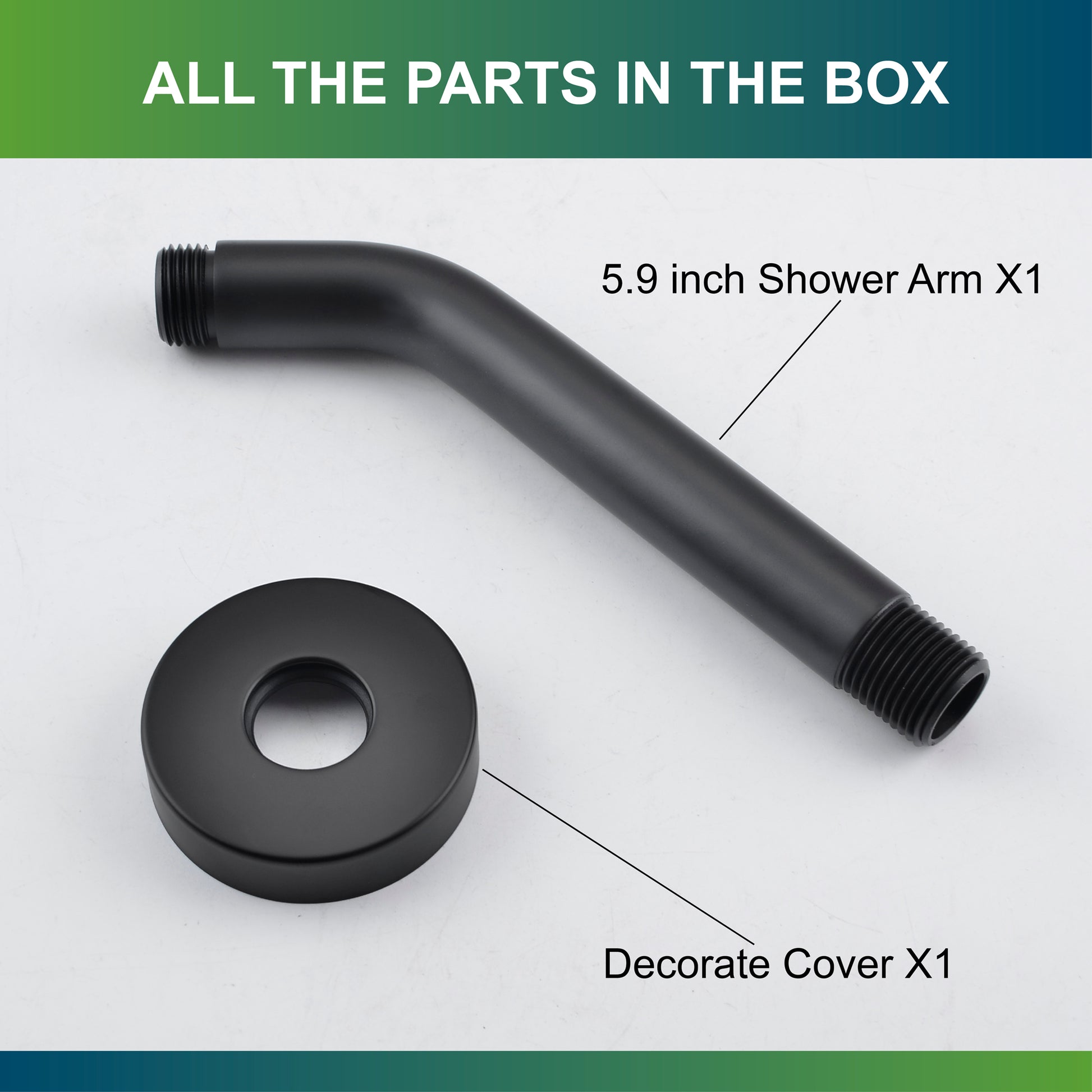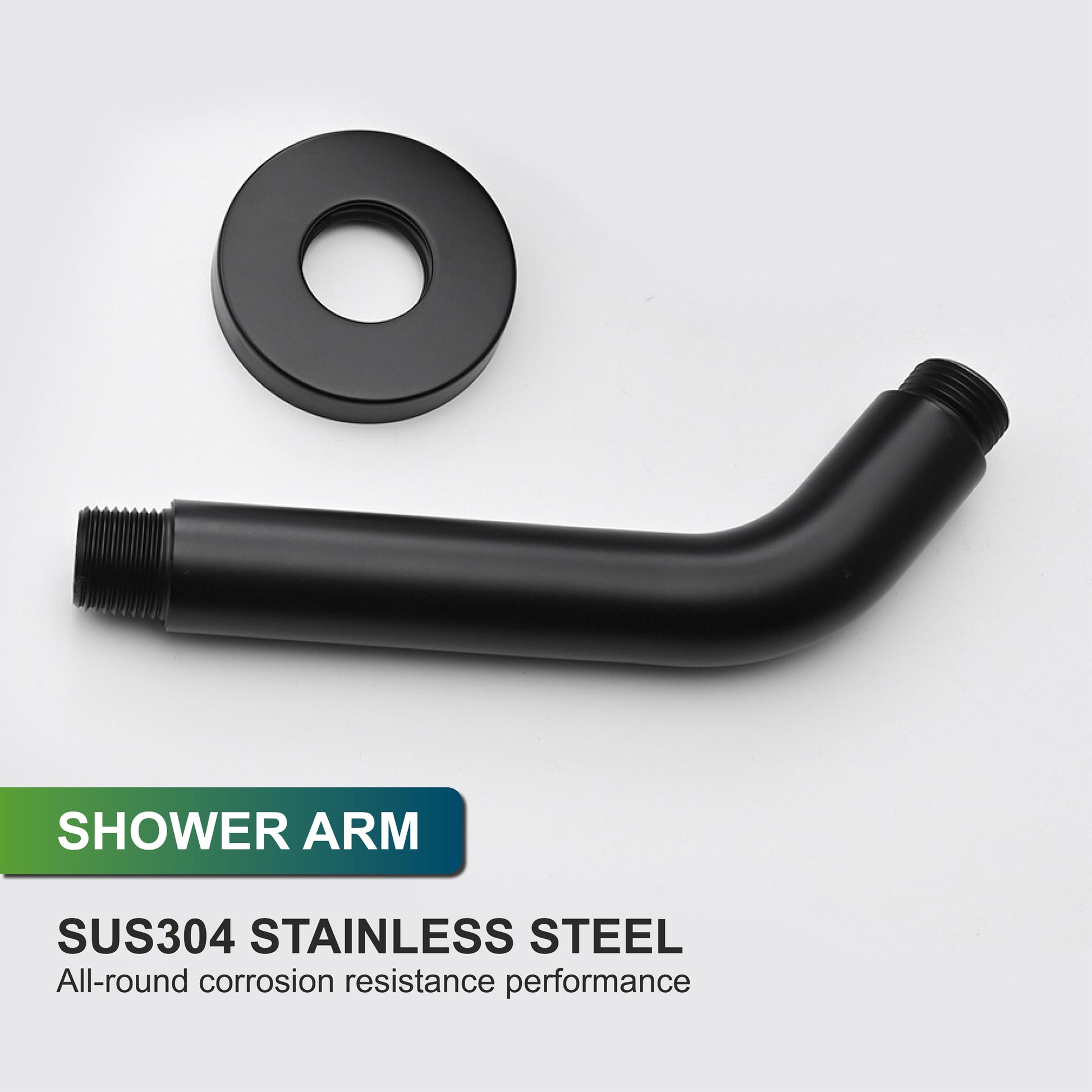This 5.9-inch Wall Mount Shower Arm features an elegant matte black finish, perfectly blending with your fixed shower head for a sleek and stylish look. Made from SUS304 stainless steel, it ensures durability and long-lasting quality. The 1/2-inch NPT threaded connection complies with US standards and fits most shower head products. A decorative cover is included to neatly conceal the wall opening. The 5.9-inch length provides sufficient showering space while saving room, and the design is ideal for pairing with round shower heads. With perfect after-sales service, you can use it with confidence.