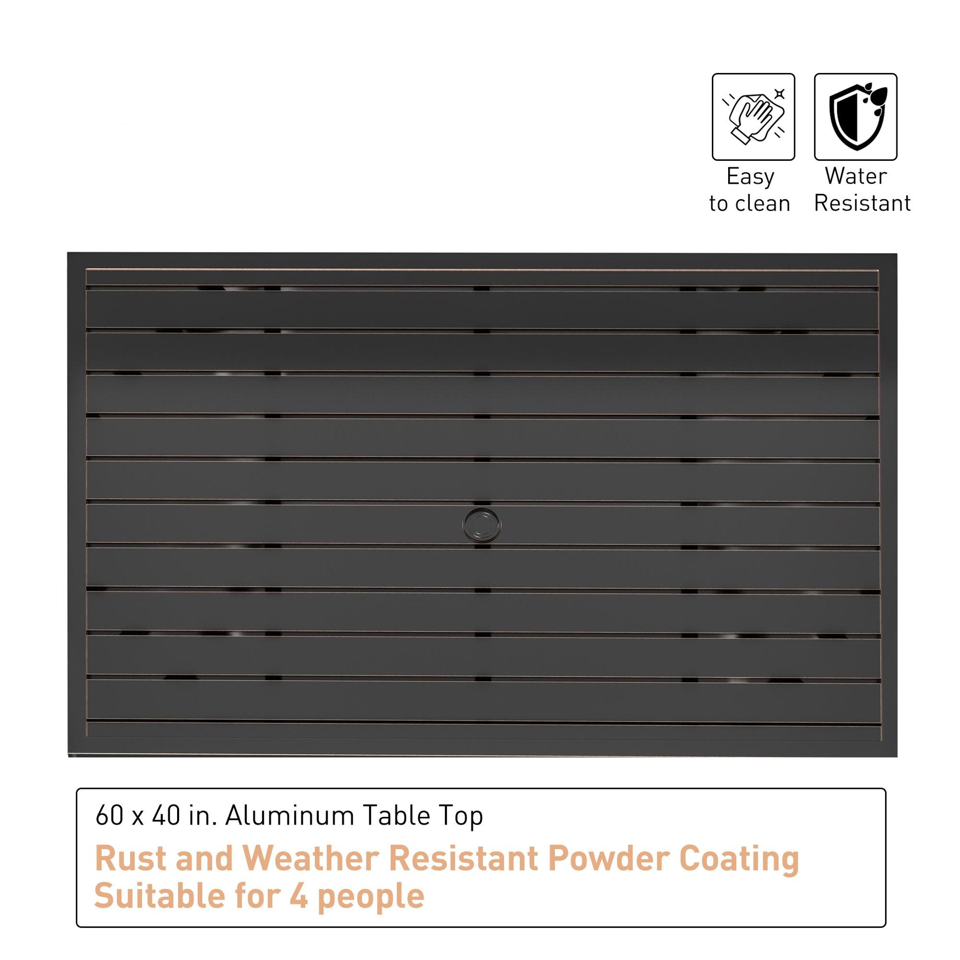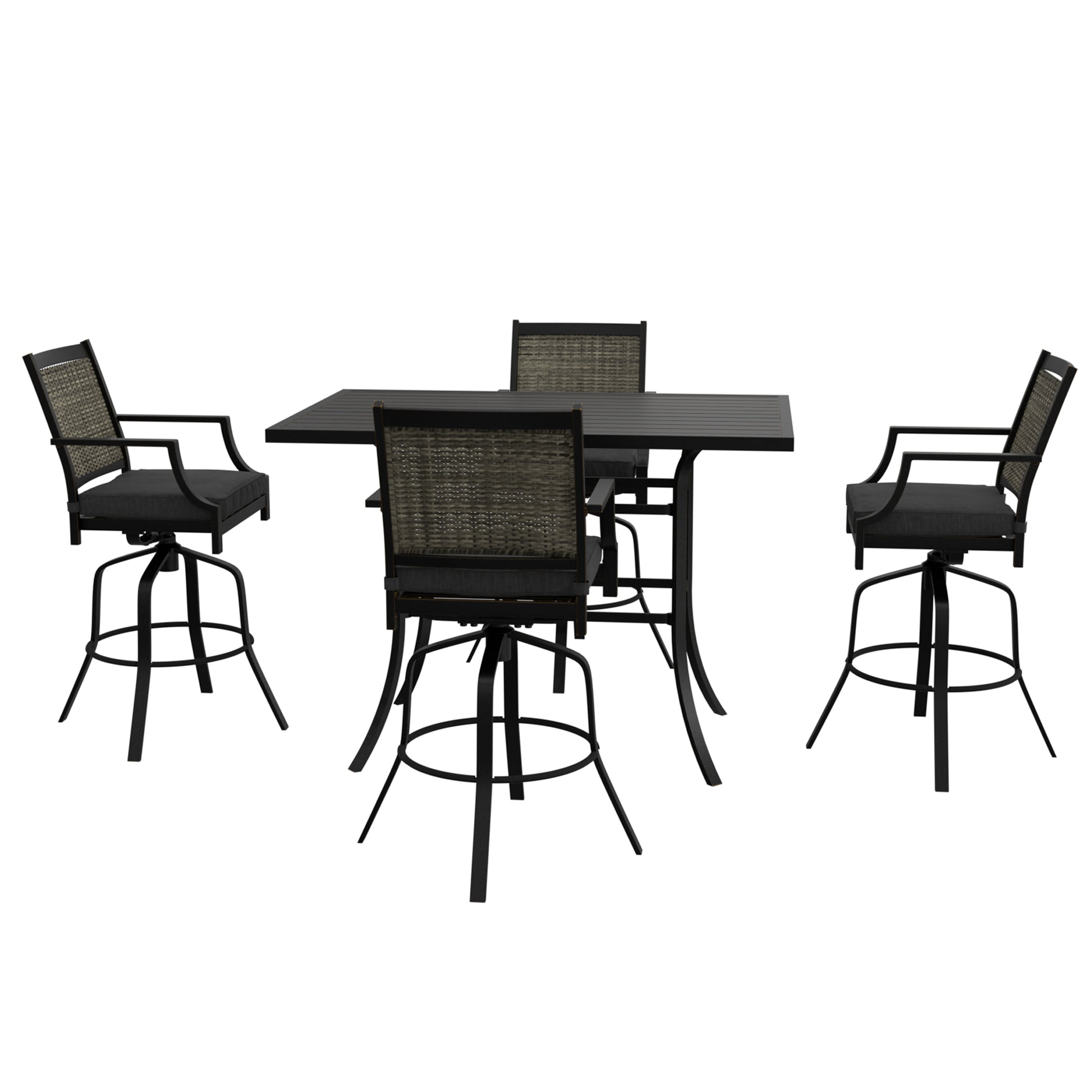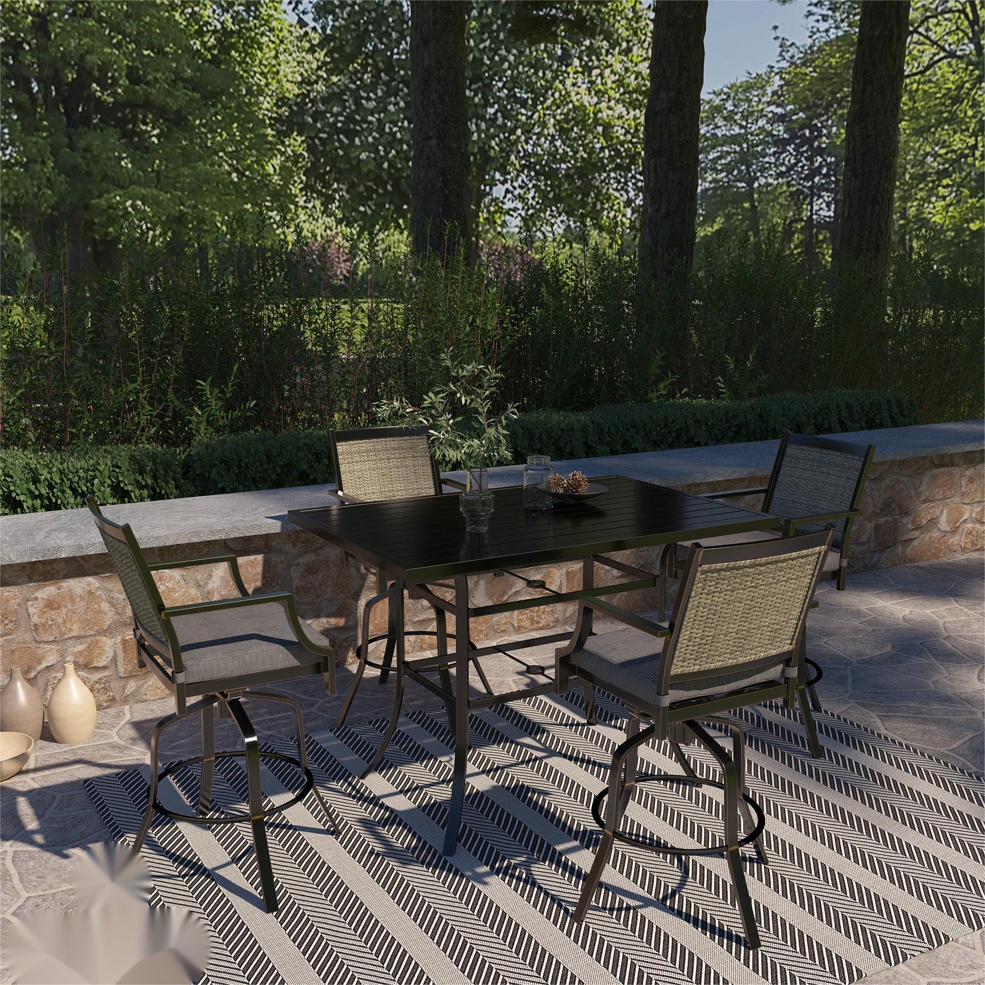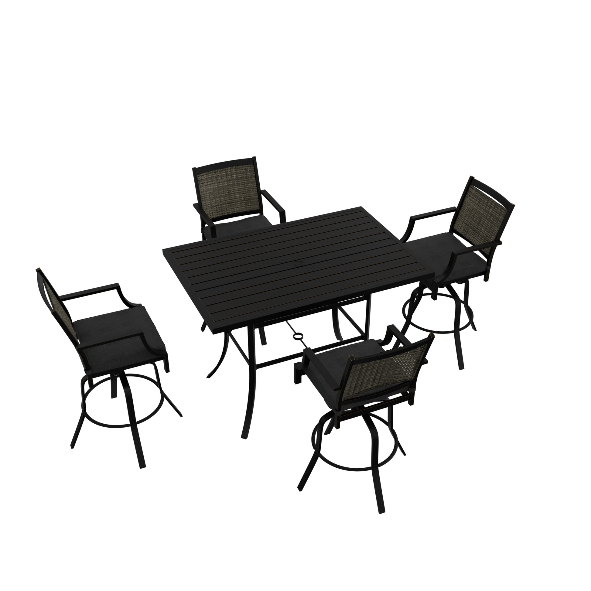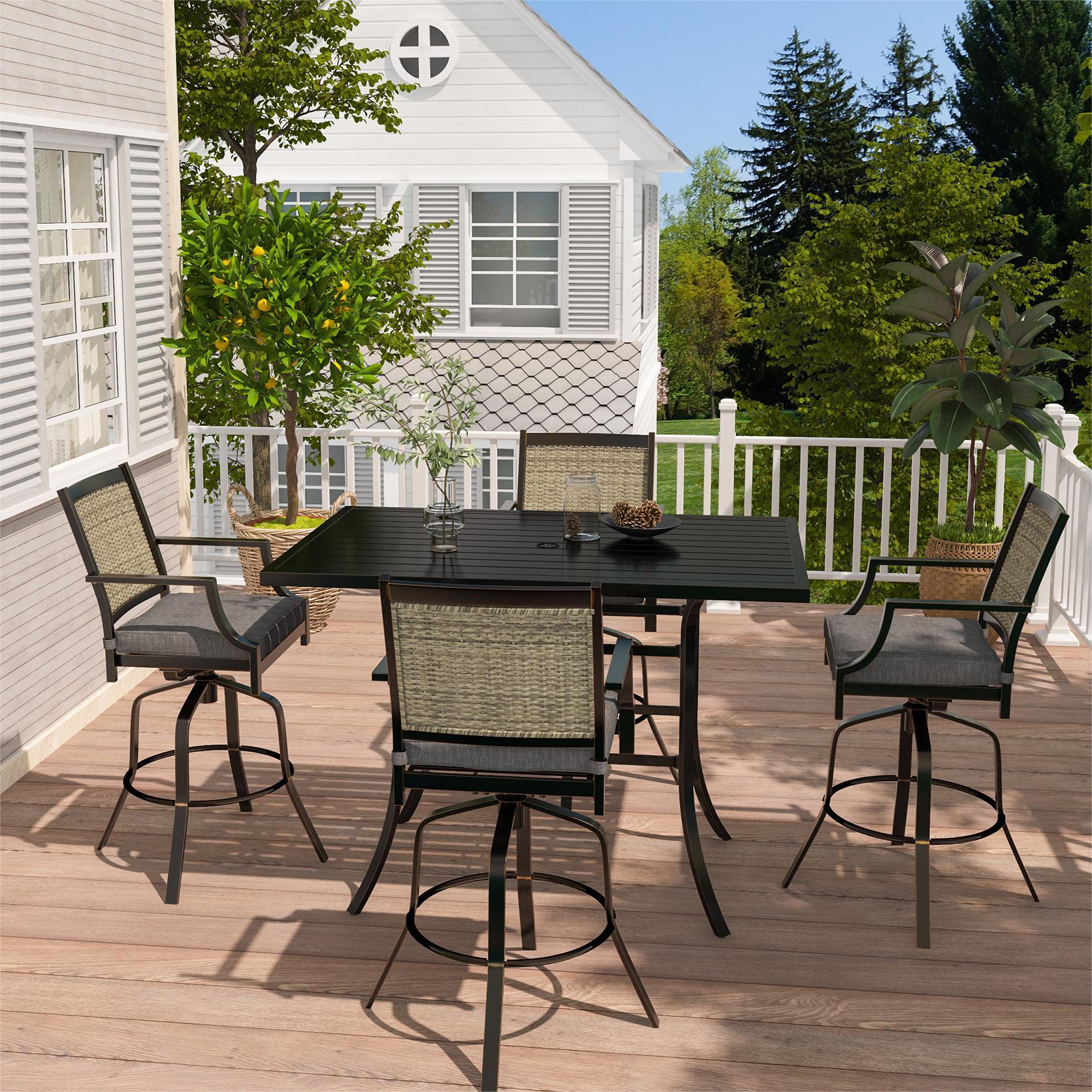This 5 - piece outdoor dining set includes a rectangular table and four swivel bar stools. The table has a heavy - duty powder - coated aluminum frame (rust & weather - resistant) and a 1.9 - inch umbrella hole to block UV rays. The stools allow 360° smooth, noiseless swivel. Easy to install, with professional after - sales service.