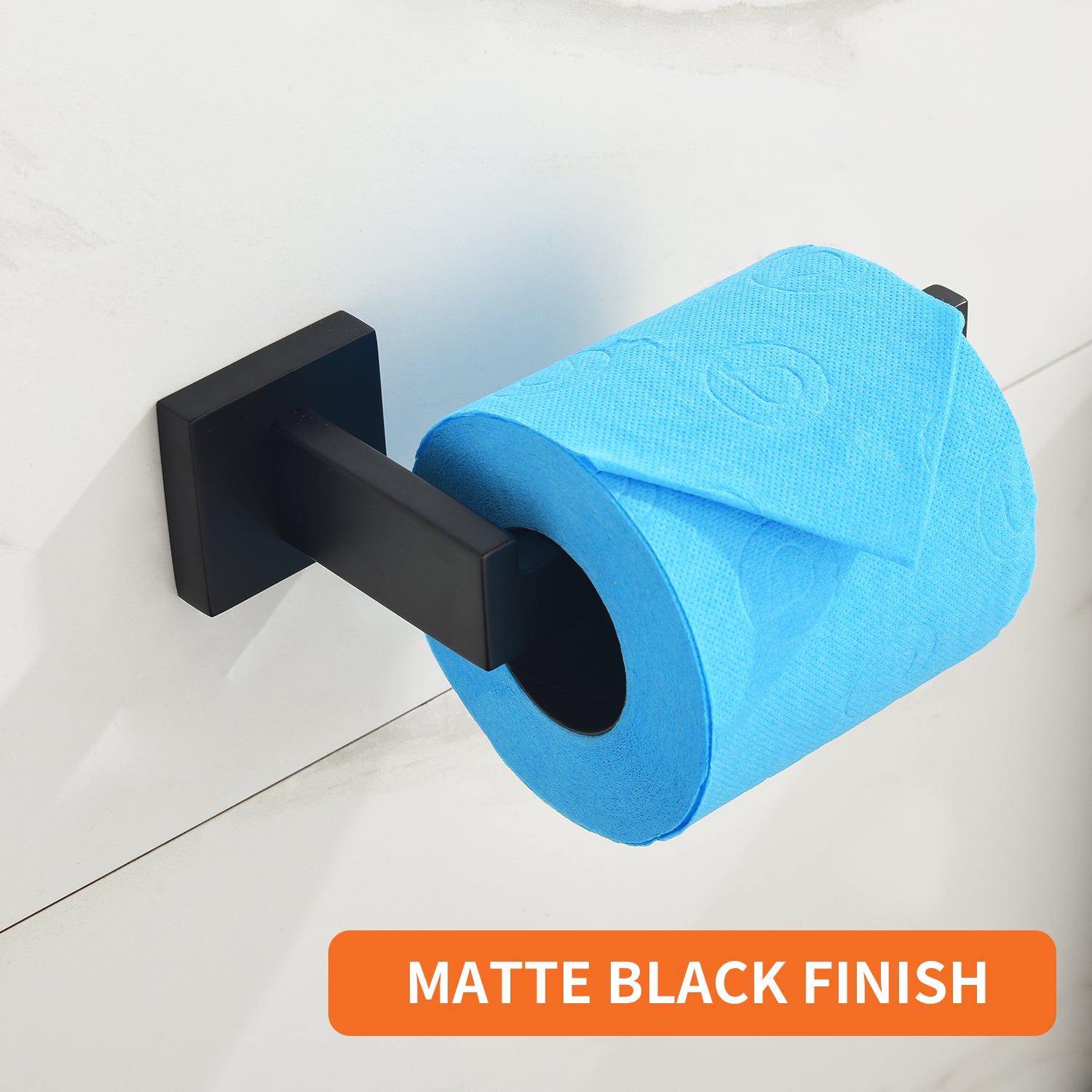 5 Piece Bath Hardware Set with Towel Hooks Towel Bar Toilet Paper Holder and Hand Towel Holder in Matte Black