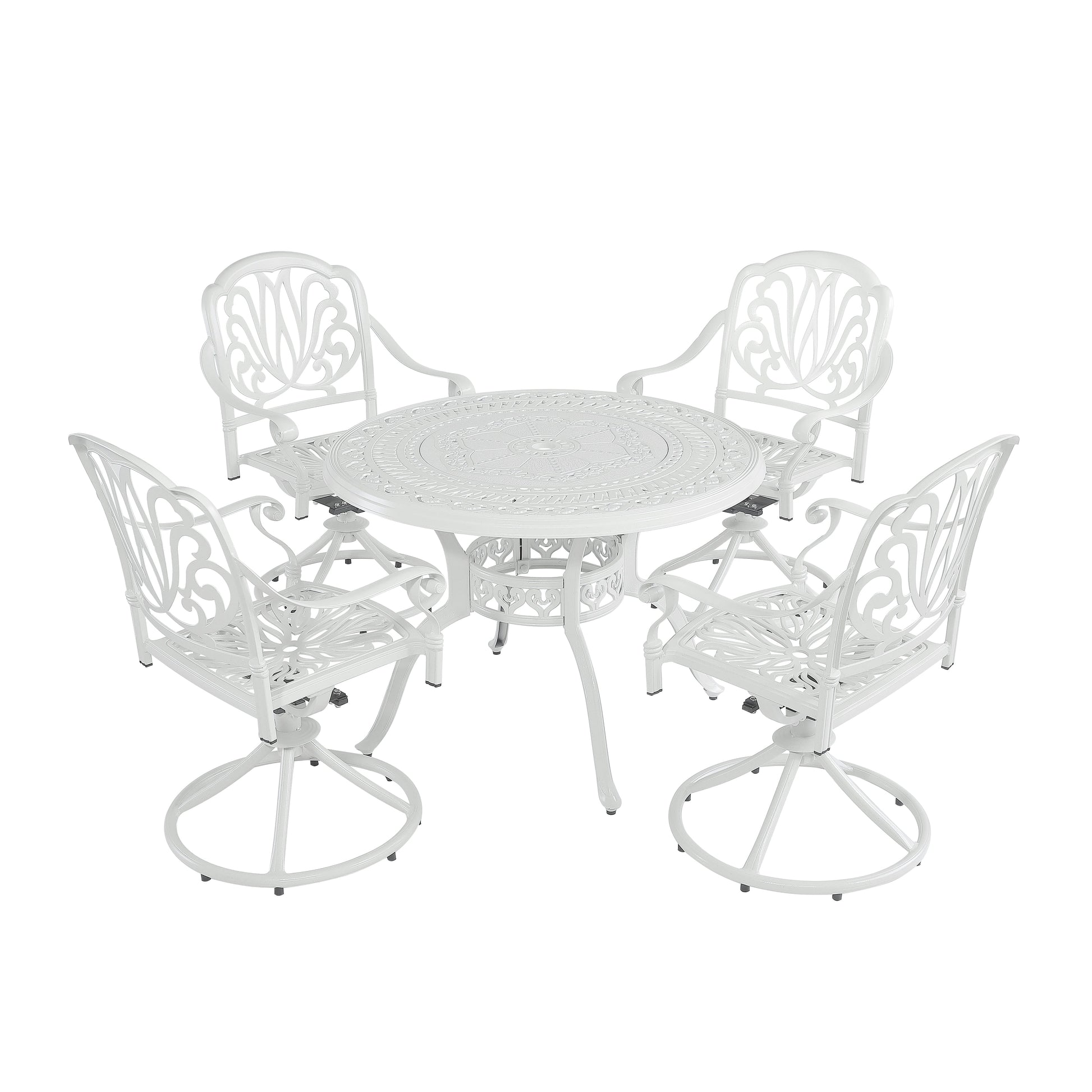 5-Piece Cast Aluminum Outdoor Dining Set Patio Table with Umbrella Hole Outdoor Swivel Rockers Patio Dining Chairs in White