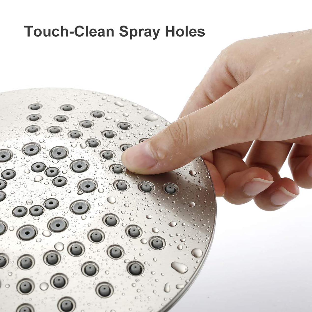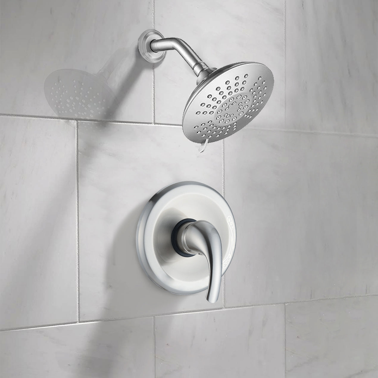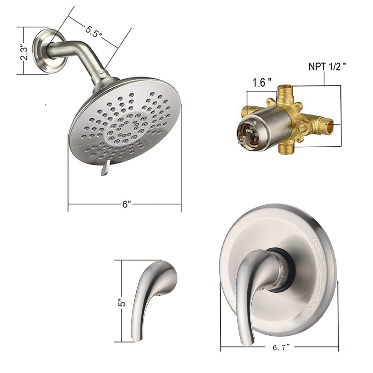 This 6 inch round shower head set features five spray modes, allowing you to choose from stable, powerful, or soft flows to suit your shower needs. The kit includes a premium brass valve for durability and leak free performance, eliminating the need to purchase separately. The pressure balance valve automatically regulates temperature to prevent sudden changes and ensure safety during use. Finished in multi layer, it resists scratches, corrosion, and tarnishing, making it ideal for humid bathroom environments. With a universal 1 2 inch NPT standard connection, it installs easily and blends seamlessly with modern bathroom décor.
