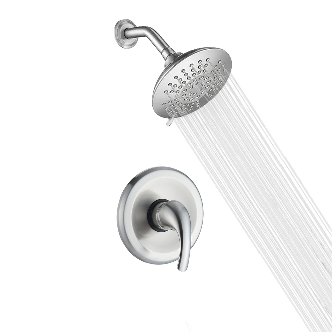 5 Spray Patterns 2.2 GPM 6 Inch Wall Mount Fixed Shower Head with Handle Trim and Valve in Brushed Nickel