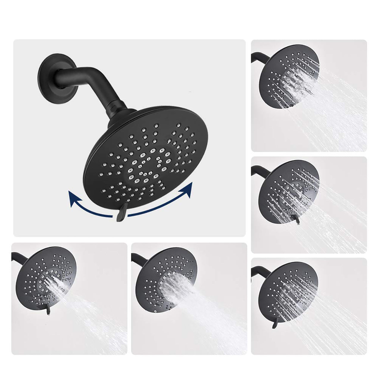 5 Spray Patterns 2.2 GPM 6 Inch Wall Mount Fixed Shower Head with Handle Trim and Valve in Matte Black