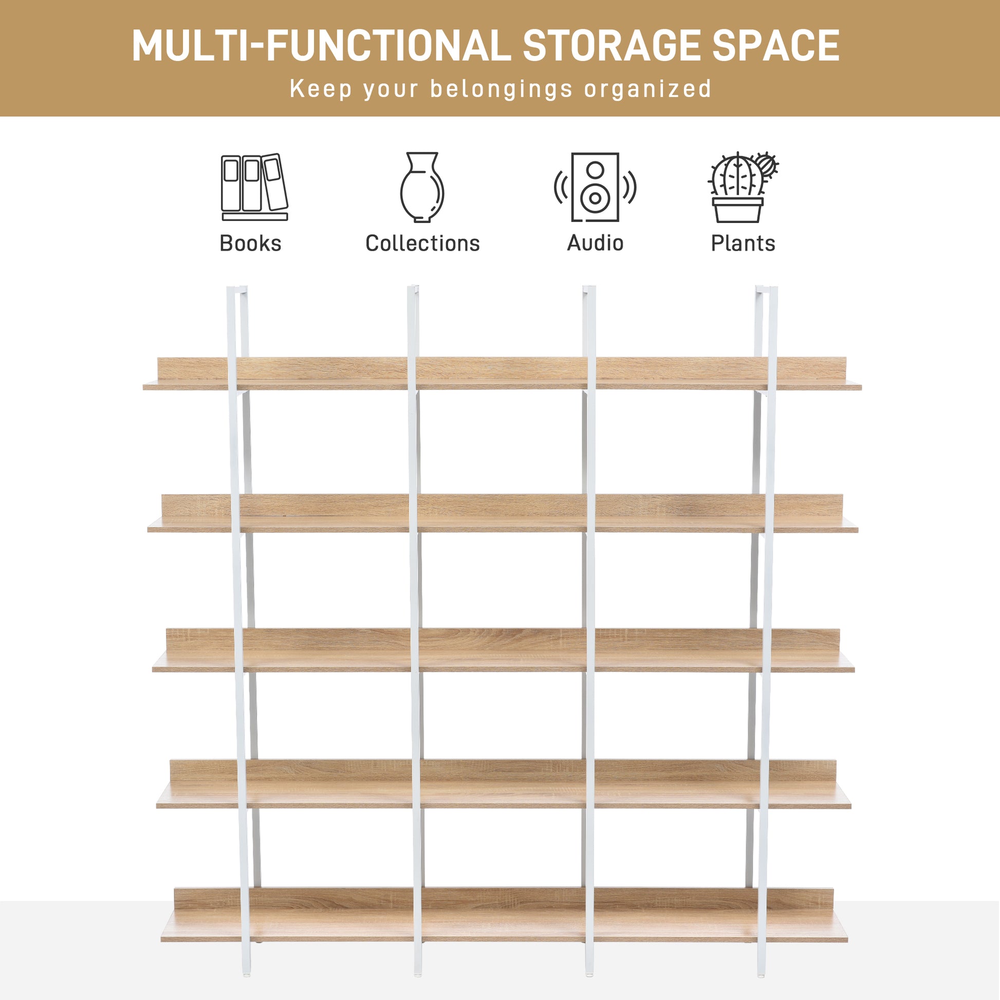 5 Tier Bookcase Home Office Open Bookshelf Vintage Industrial Style MDF White Metal Frame Oak