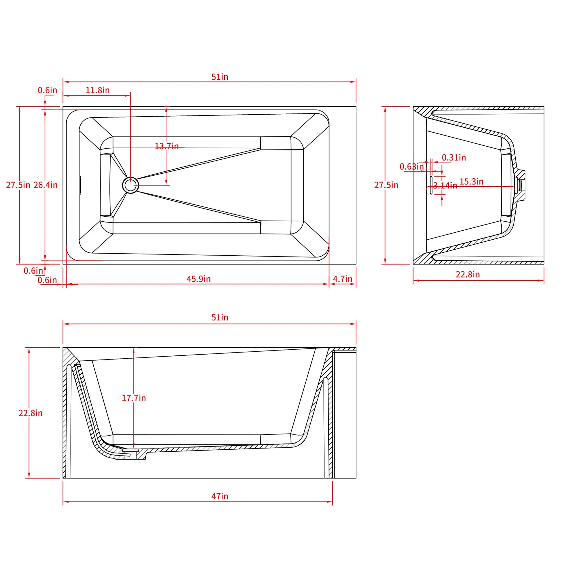Enjoy safe relaxing baths with this 51 Inch matte white freestanding resin stone tub anti slip upgraded metal pop up drain non permeable easy to clean