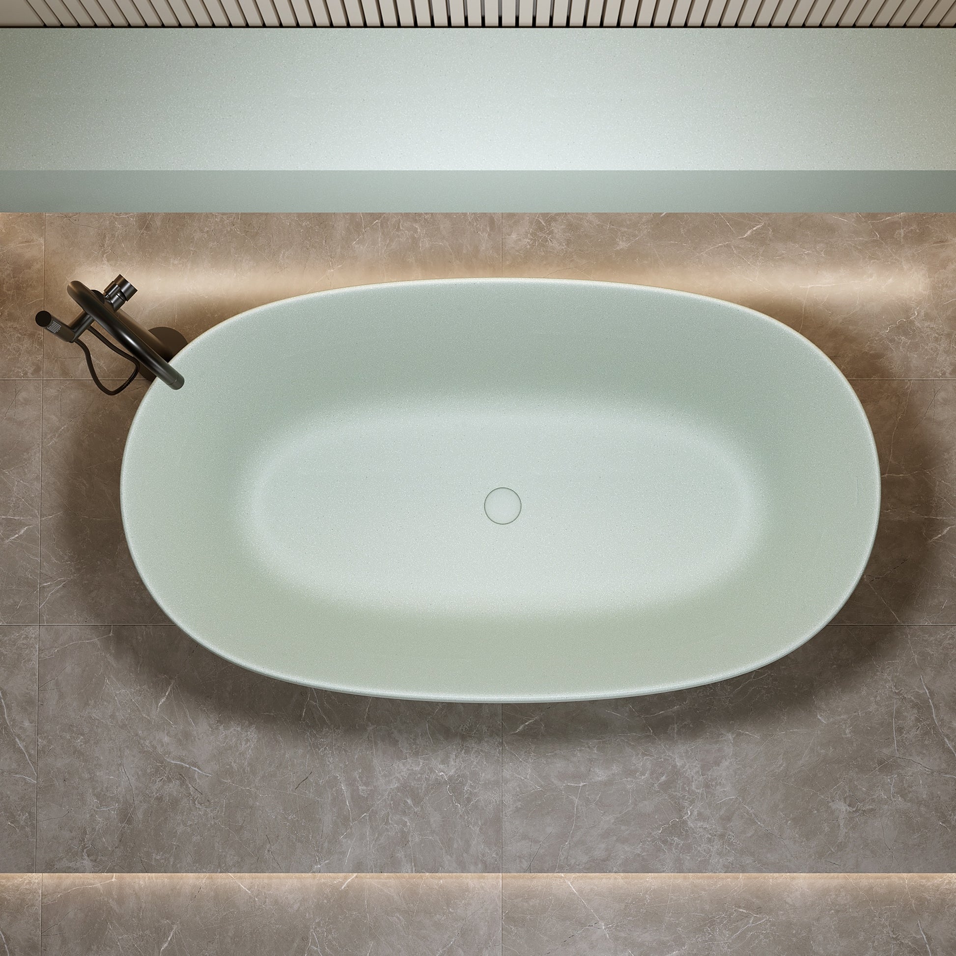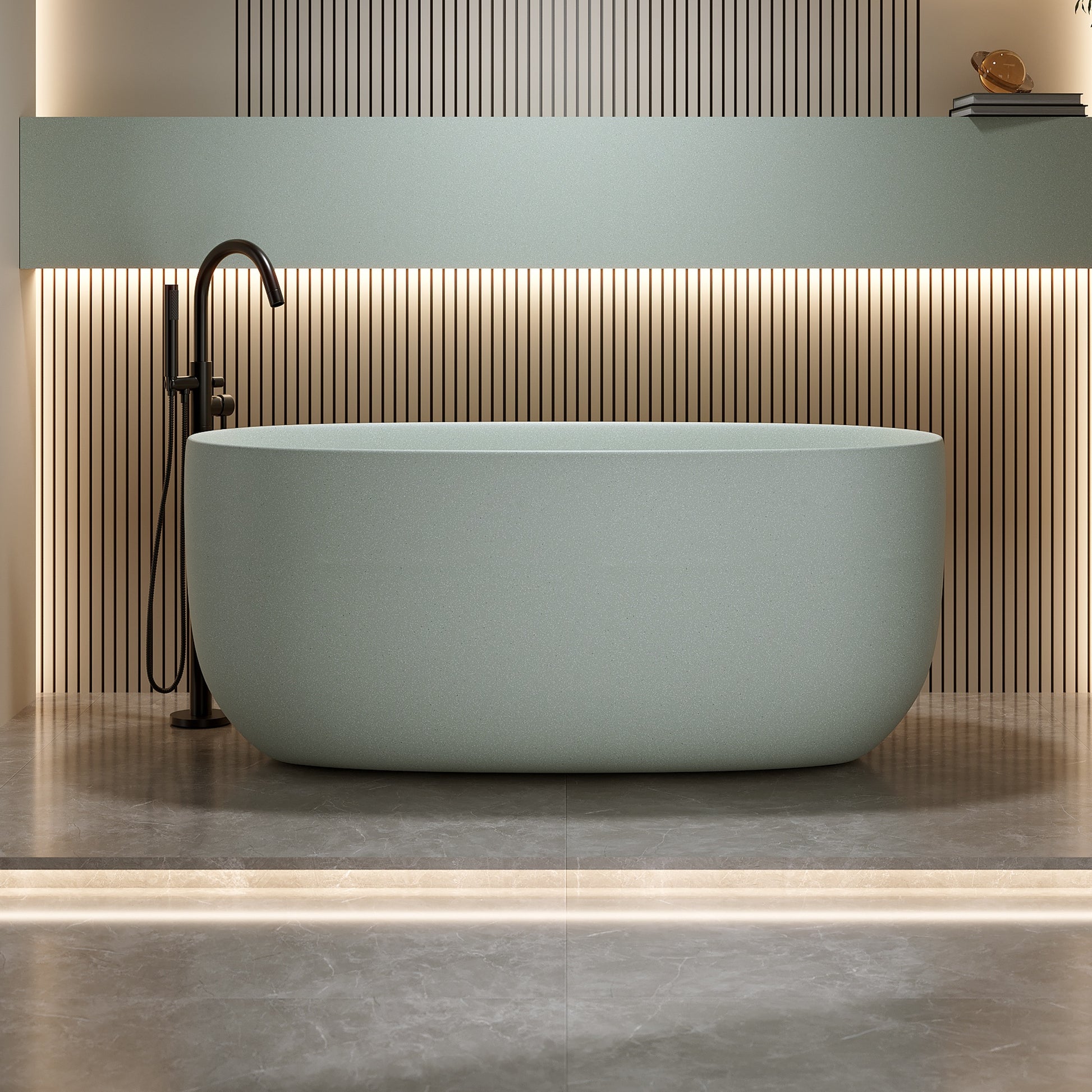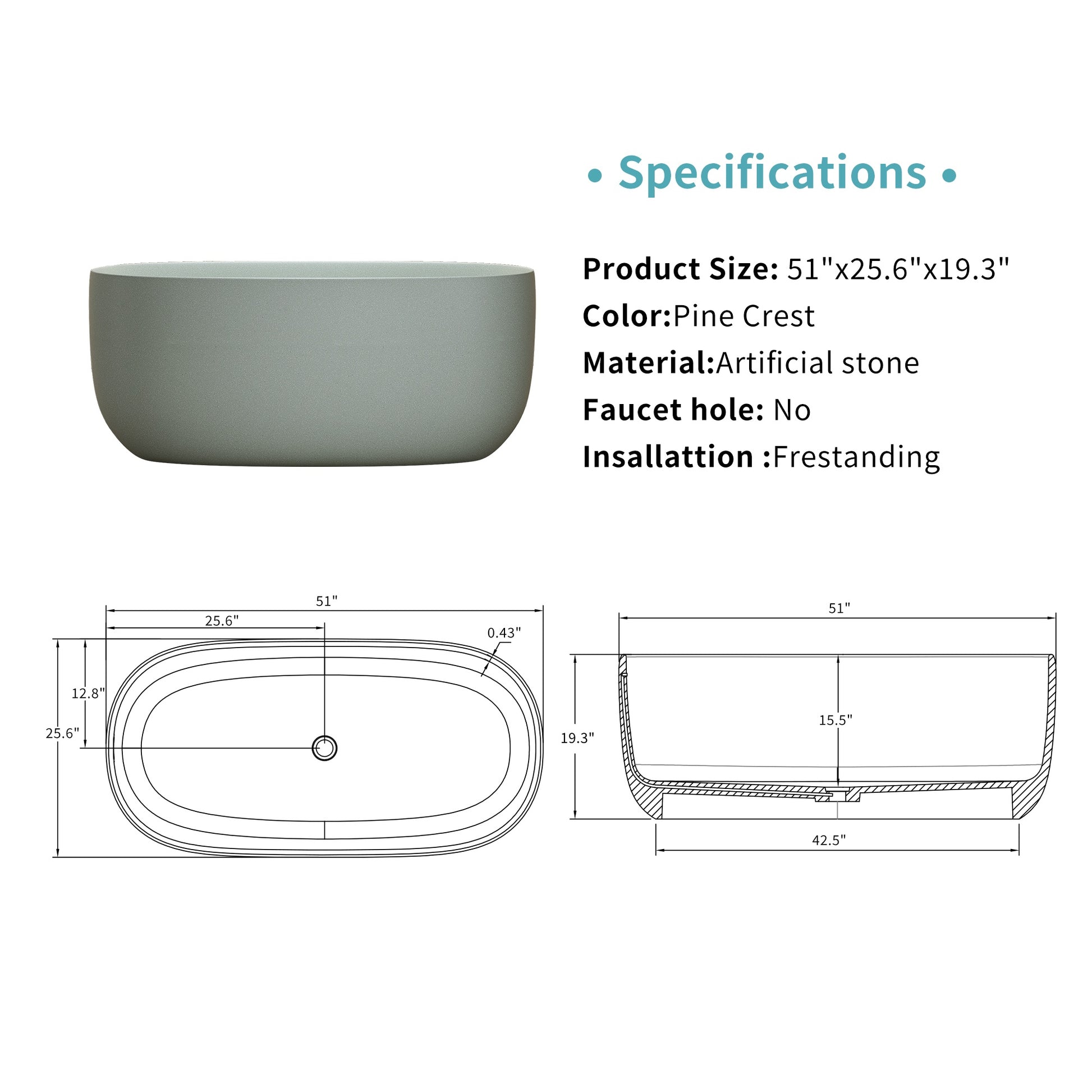 After a busy day retreat to this 51 inch freestanding soaking tub Its solid surface resin stone material keeps water warm and the ergonomic curve fits your waist for a soothing bath The smooth hand polished finish and easy installation make it ideal for modern bathrooms