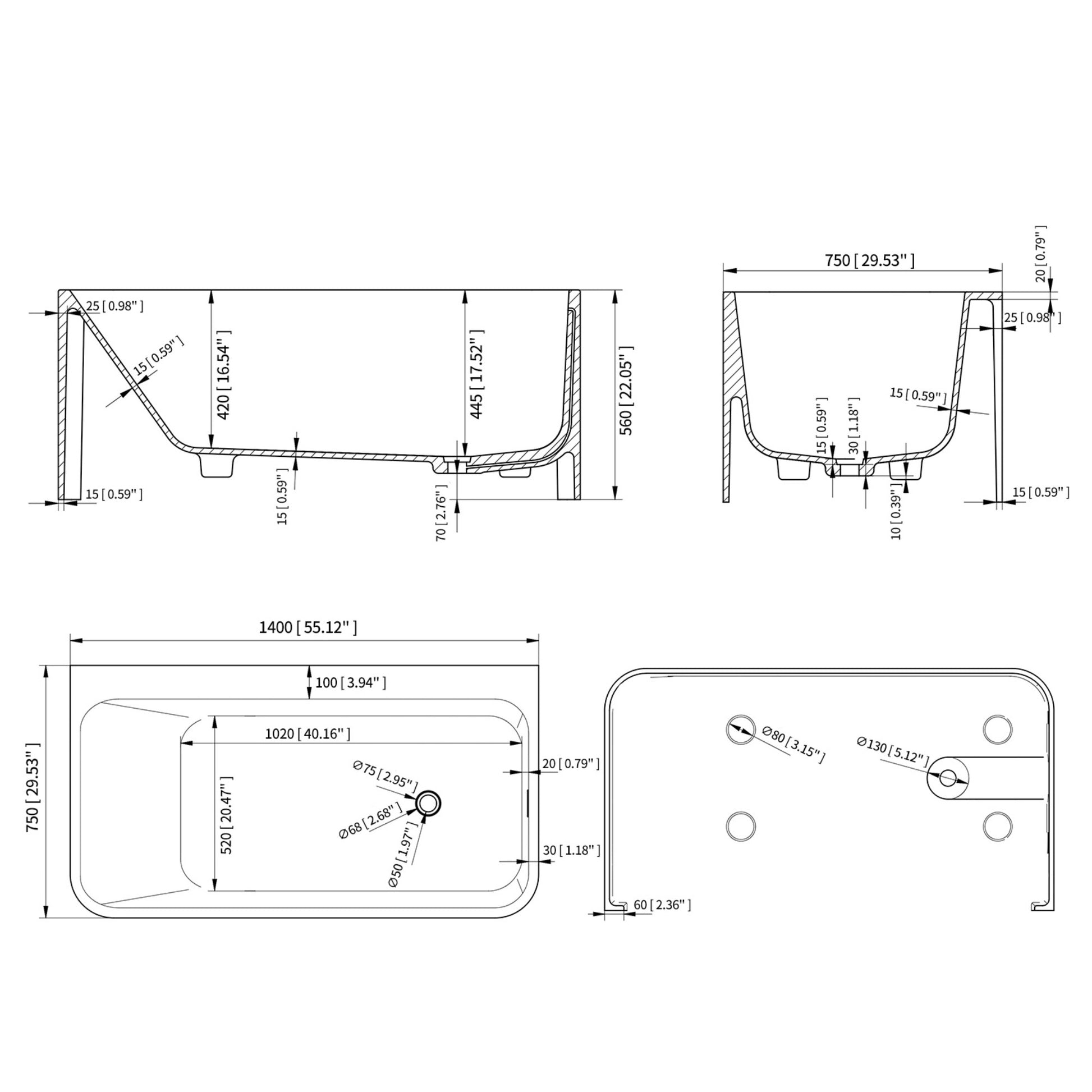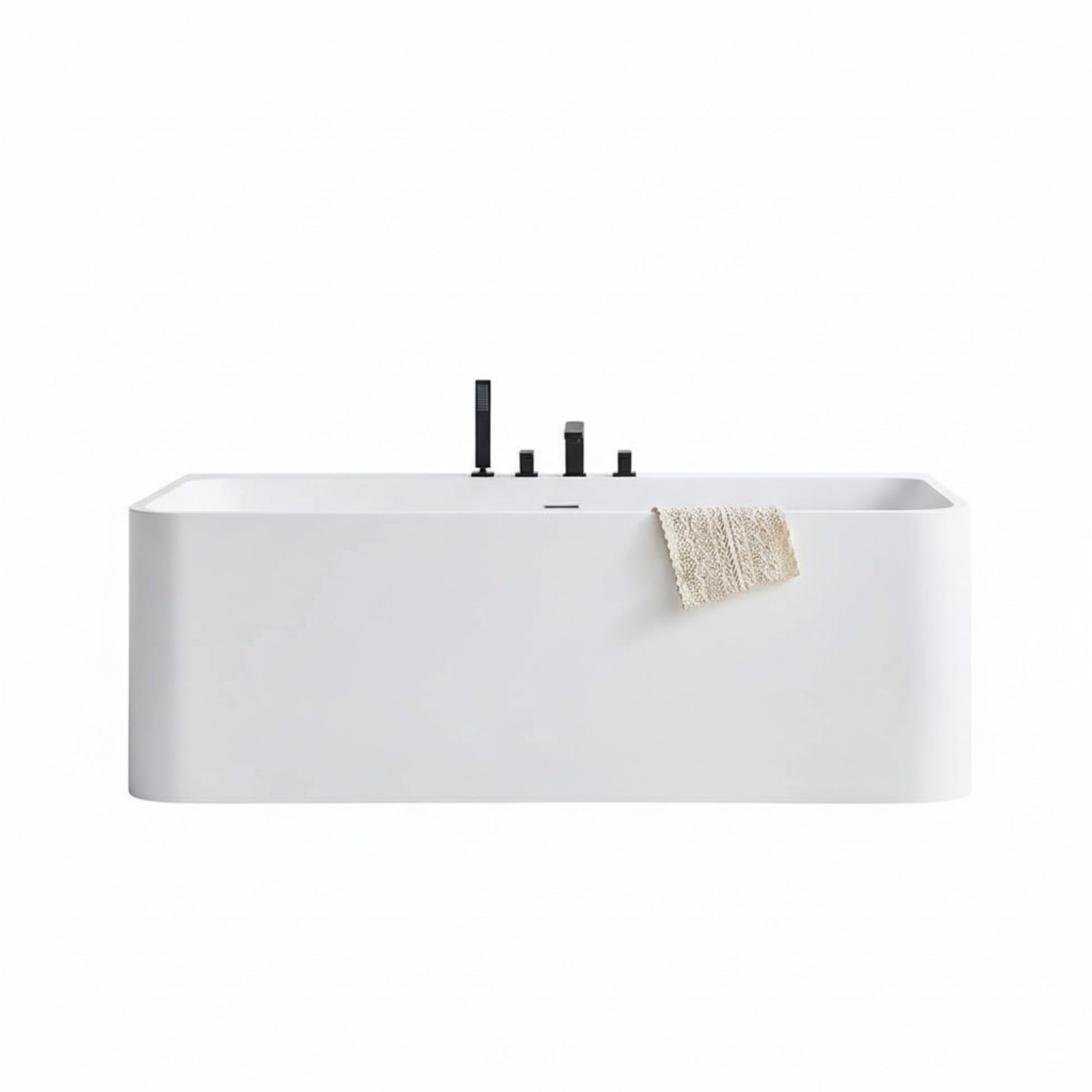 55 Inch Oval Matte White Artificial Stone Modern Style Freestanding and Built-in Soaking Bathtub