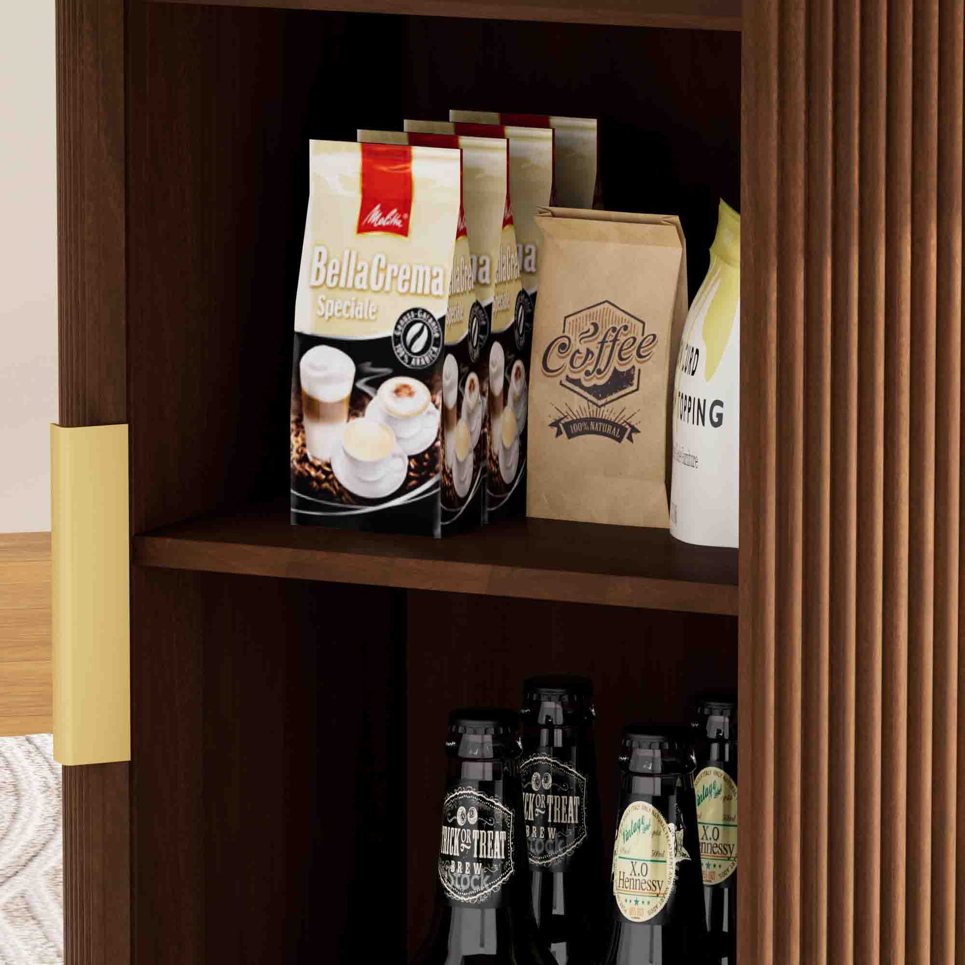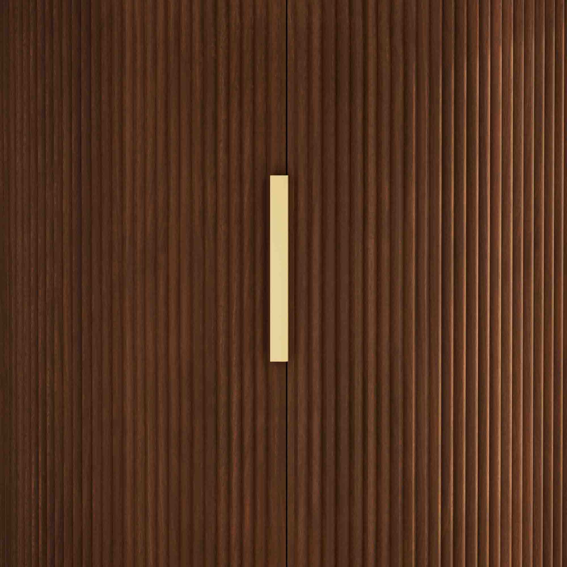 Wooden wavy striped doors add visual interest and modern design appeal.