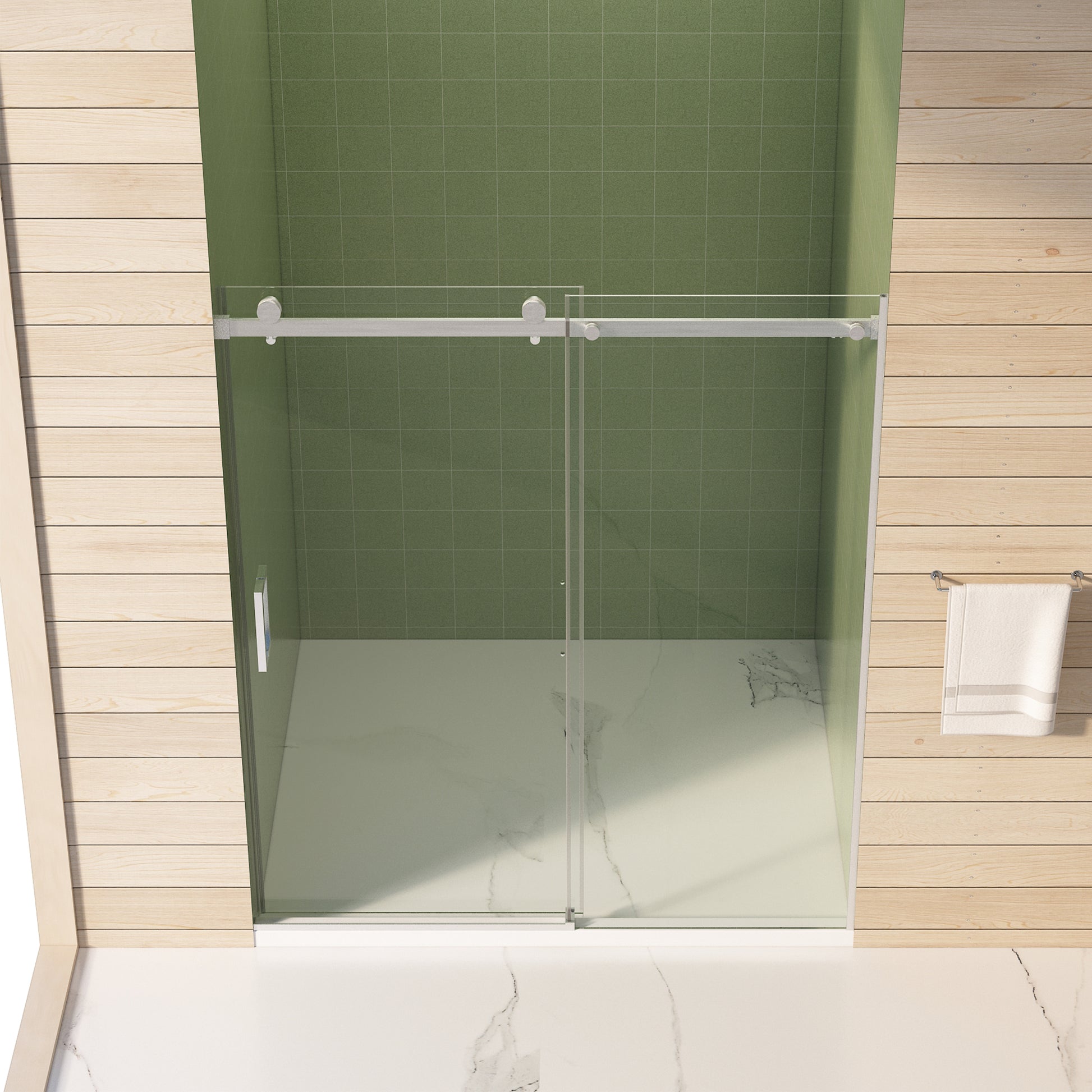 56"-60"W x 70"H Frameless Sliding Shower Door, 8mm Tempered Glass, Double-Sided Easy Clean Coating, Brushed Nickel Finish with Buffer
