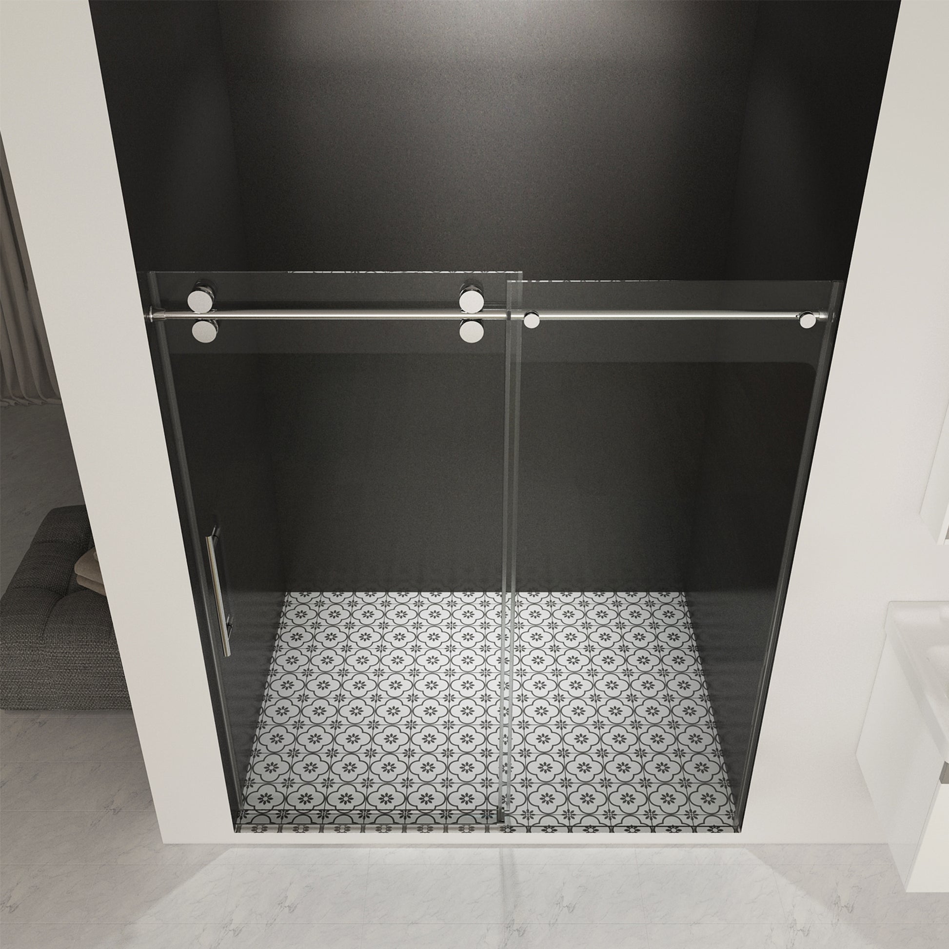 56"-60"W x 70"H Frameless Sliding Shower Door, 8mm Tempered Glass, Double-Sided Easy Clean Coating, Chrome Finish with Buffer