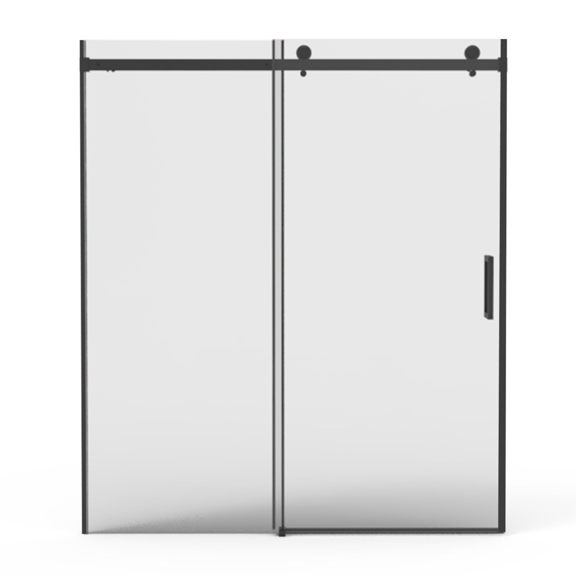 56"-60"W x 70"H Frameless Sliding Shower Door, 8mm Tempered Glass, Double-Sided Easy Clean Coating, Matte Black Finish with Buffer