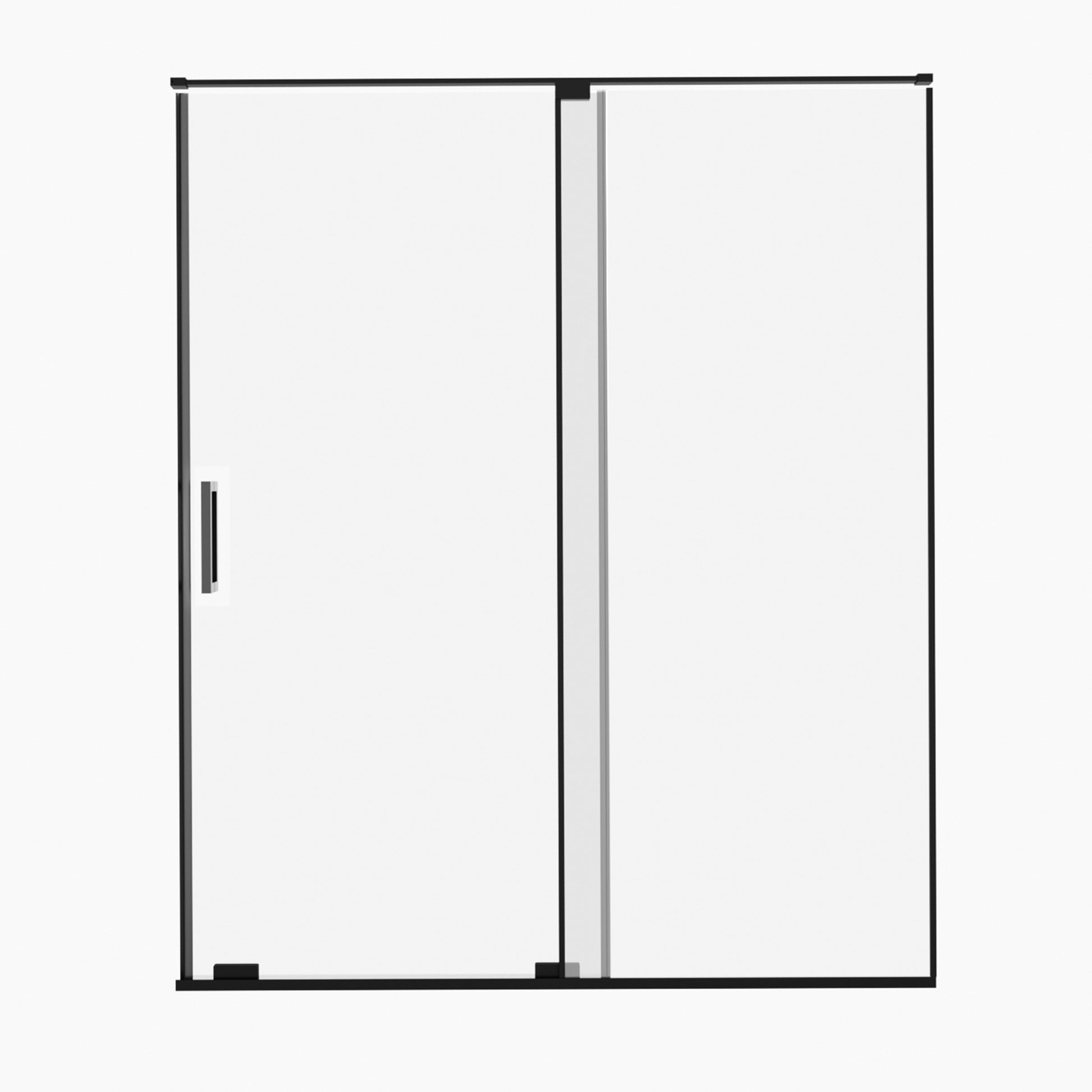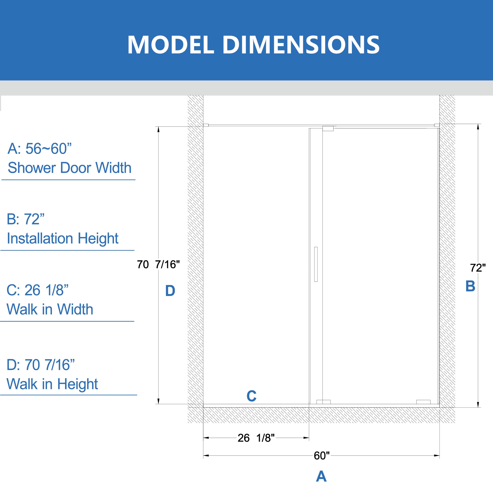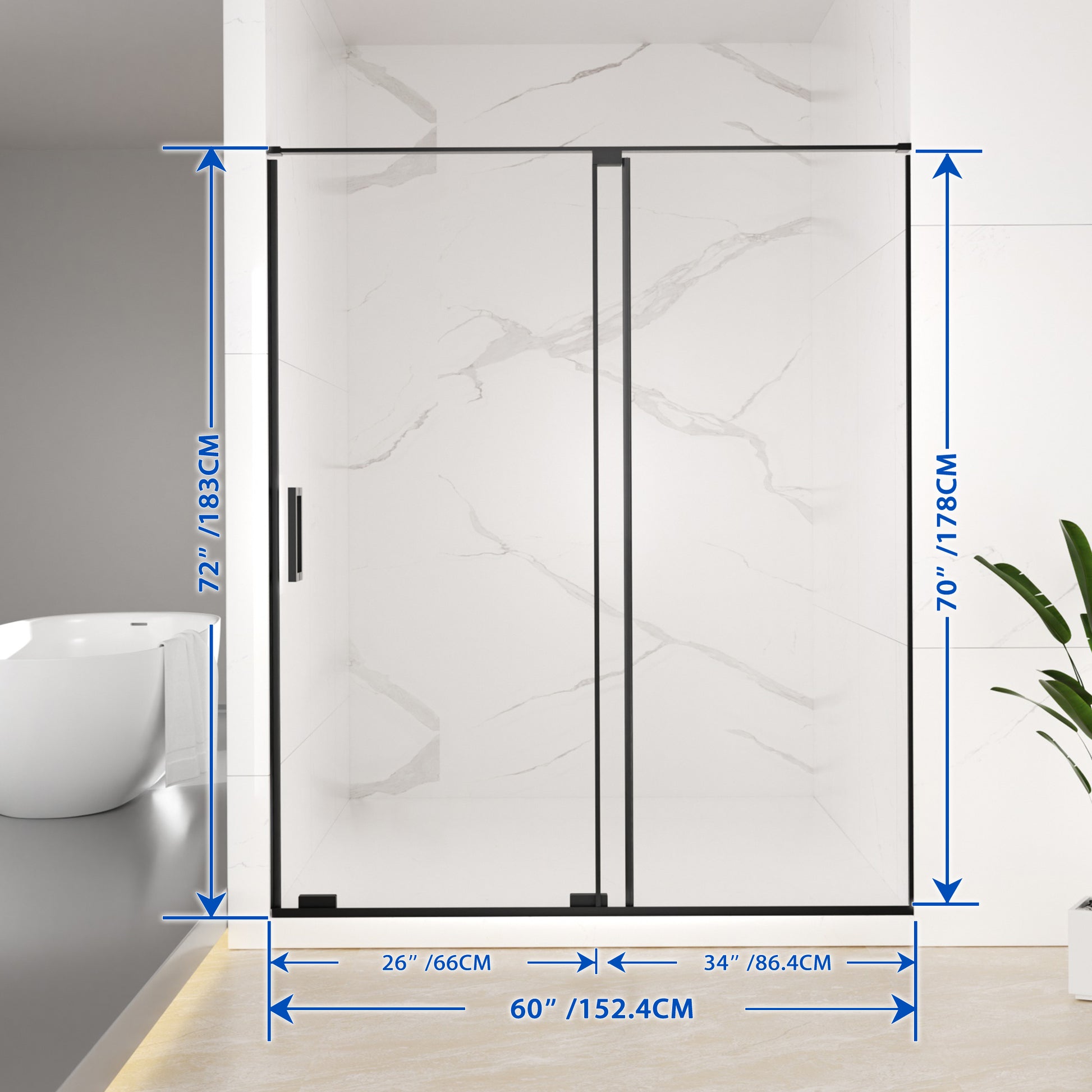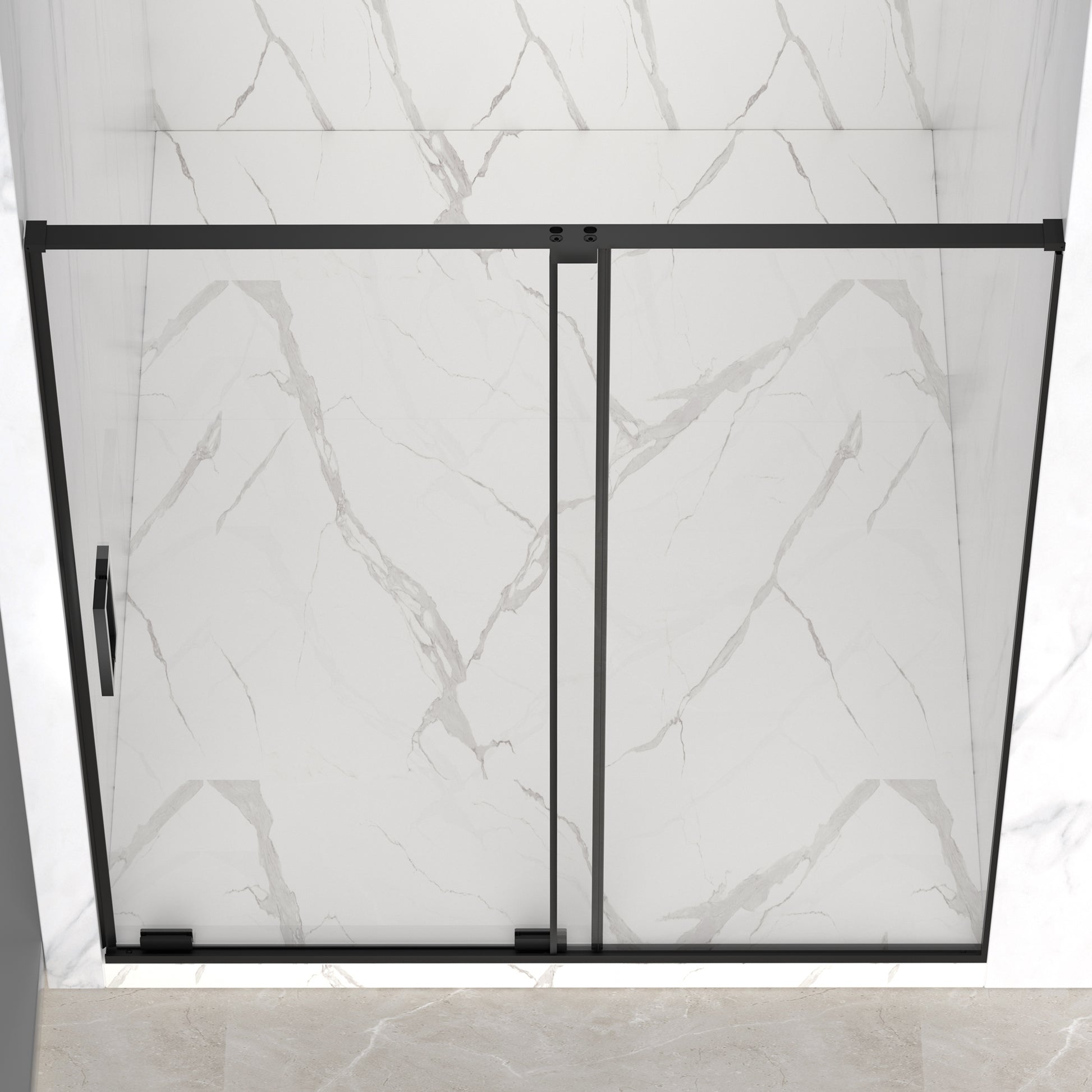56"-60"W x 72"H Semi-Frameless Sliding Shower Door, 8mm Tempered Glass, Matte Black, 4" Cut-Adjustable Width