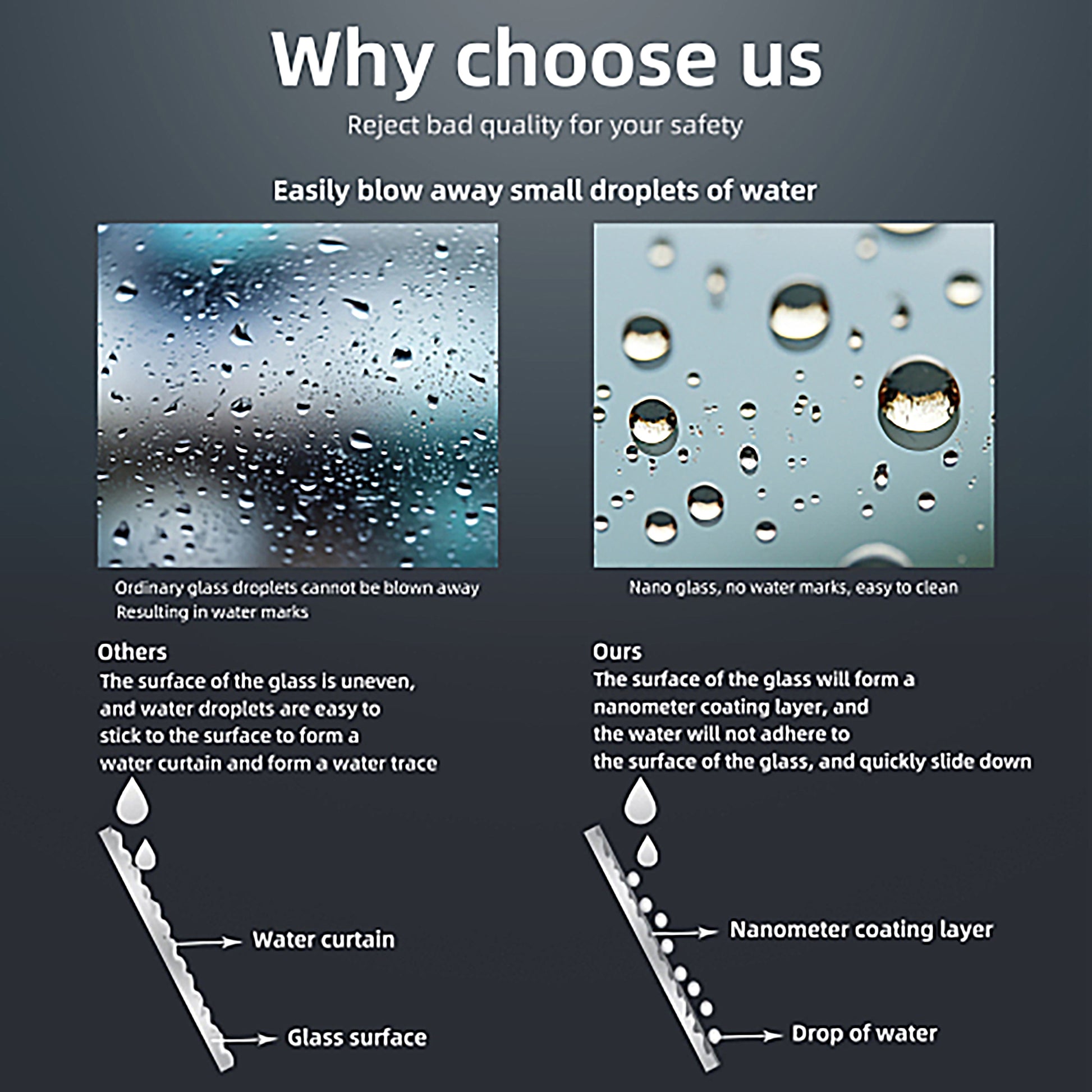 Repels water stains to keep glass clear and low-maintenance.