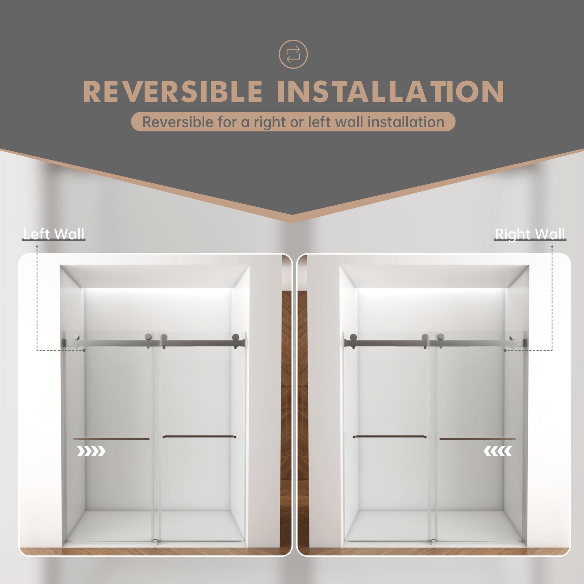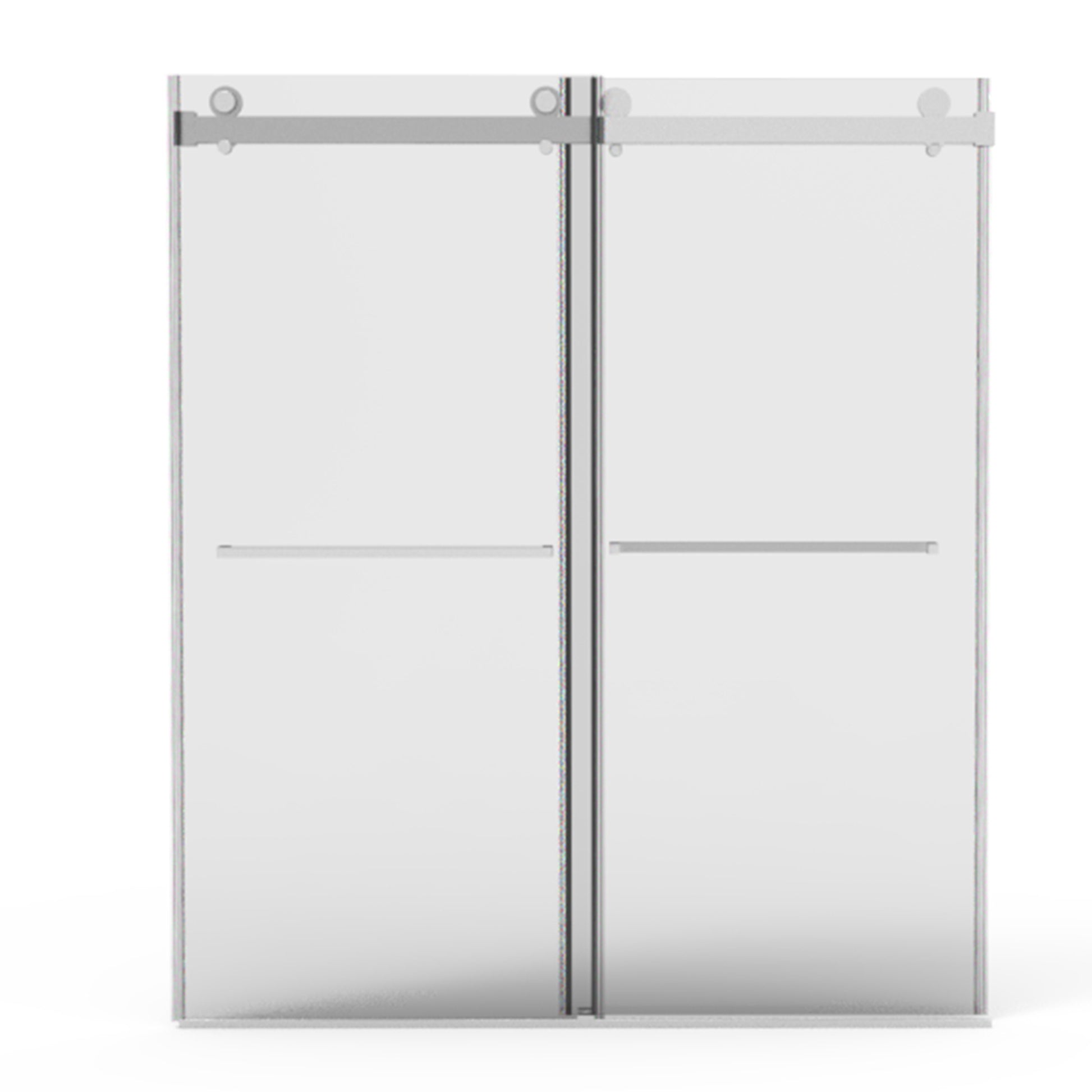 Upgrade your bathroom with this frameless double sliding shower door, designed to fit openings from 56" to 60" wide and standing 76" tall. Made from 3/8" (10mm) SGCC & ANSI-certified tempered safety glass, it offers exceptional durability, shatter resistance, and a premium look. The double-sided easy-clean coating repels water stains and simplifies maintenance, while the brushed nickel stainless steel hardware resists corrosion and rust for long-lasting performance. The square rail and stainless steel rollers ensure smooth, quiet sliding, and the integrated buffer system prevents hard collisions for added safety. Its waterproof threshold system keeps your bathroom floor dry, and the reversible installation supports both left- and right-hand openings for flexible placement.
