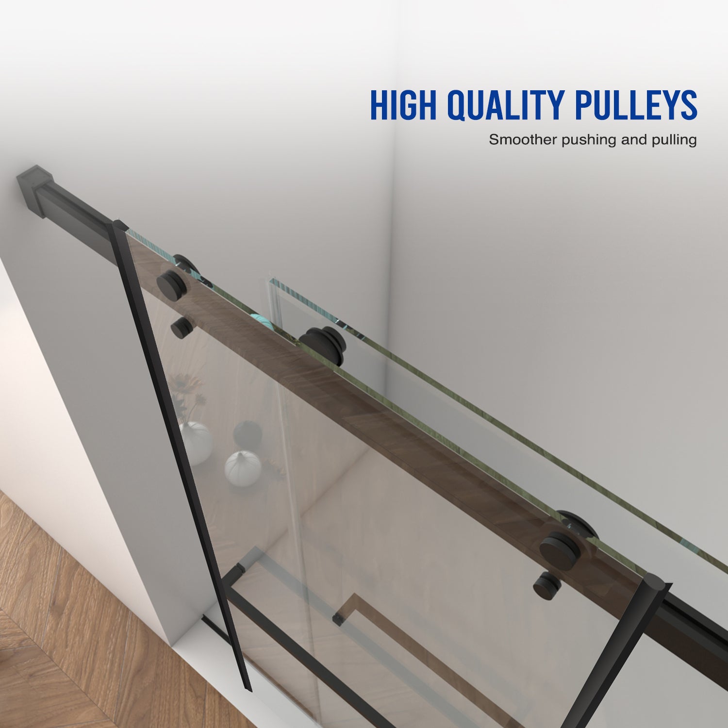 56"-60"W x 76"H Frameless Double Sliding Shower Door, 10mm Tempered Glass, Square Rail, Matte Black, Easy Clean Coating with Buffer
