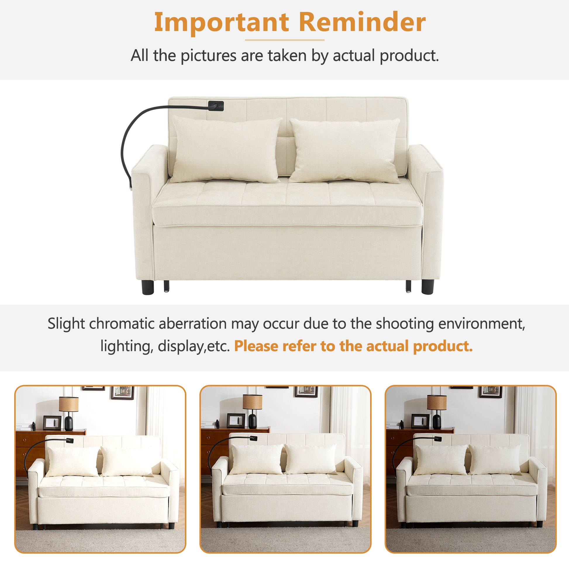 56.9 inch Loveseat Sofa Pull-out Sofa Bed Sleeper Sofa with a Reversible Backrest Cushion Side Pockets Two USB Ports and a Phone Holder for Living Room Beige