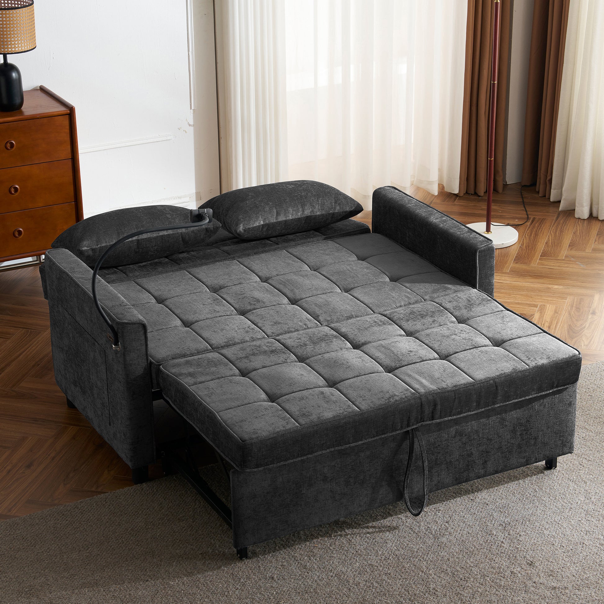 56.9 inch Loveseat Sofa Pull-out Sofa Bed Sleeper Sofa with a Reversible Backrest Cushion Side Pockets Two USB Ports and a Phone Holder for Living Room Black
